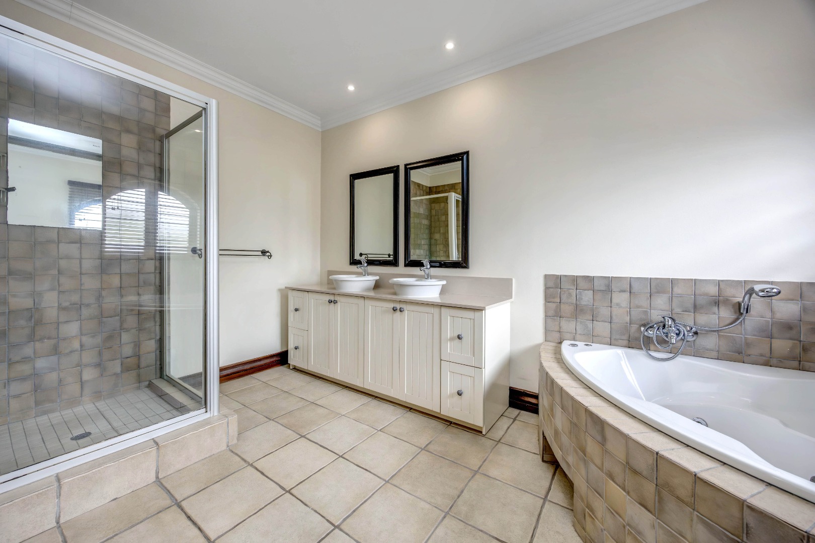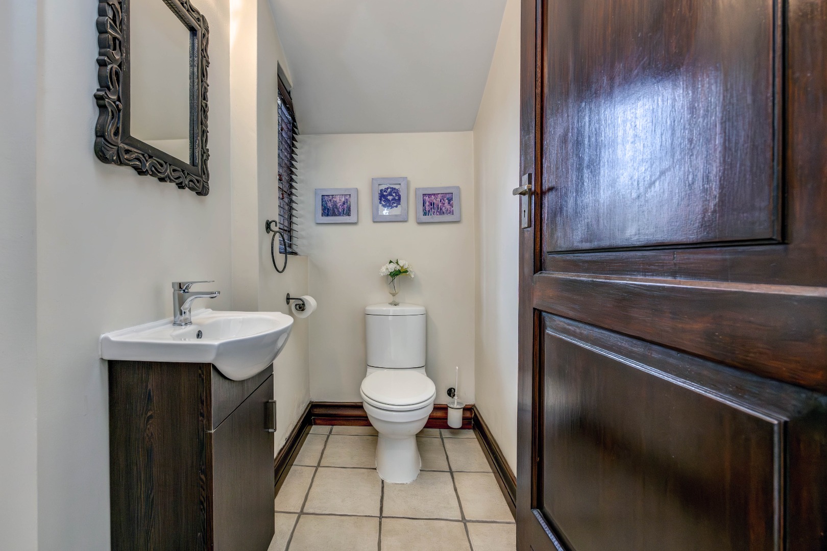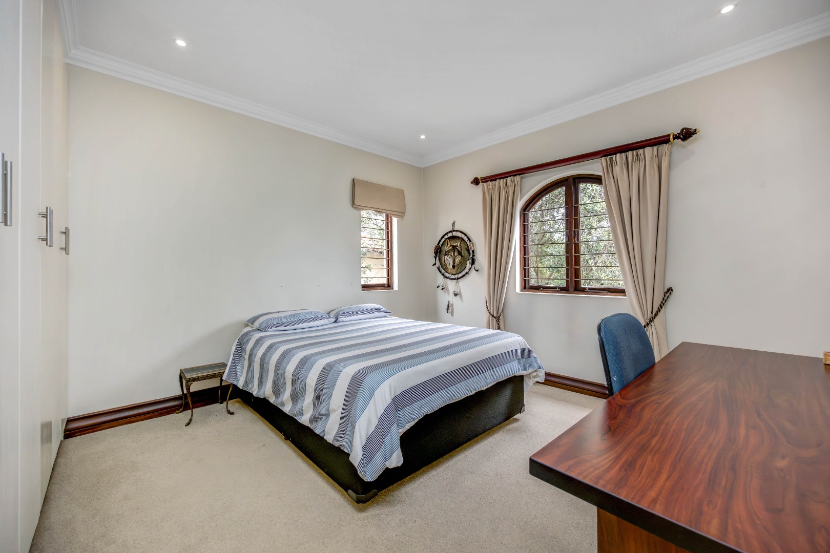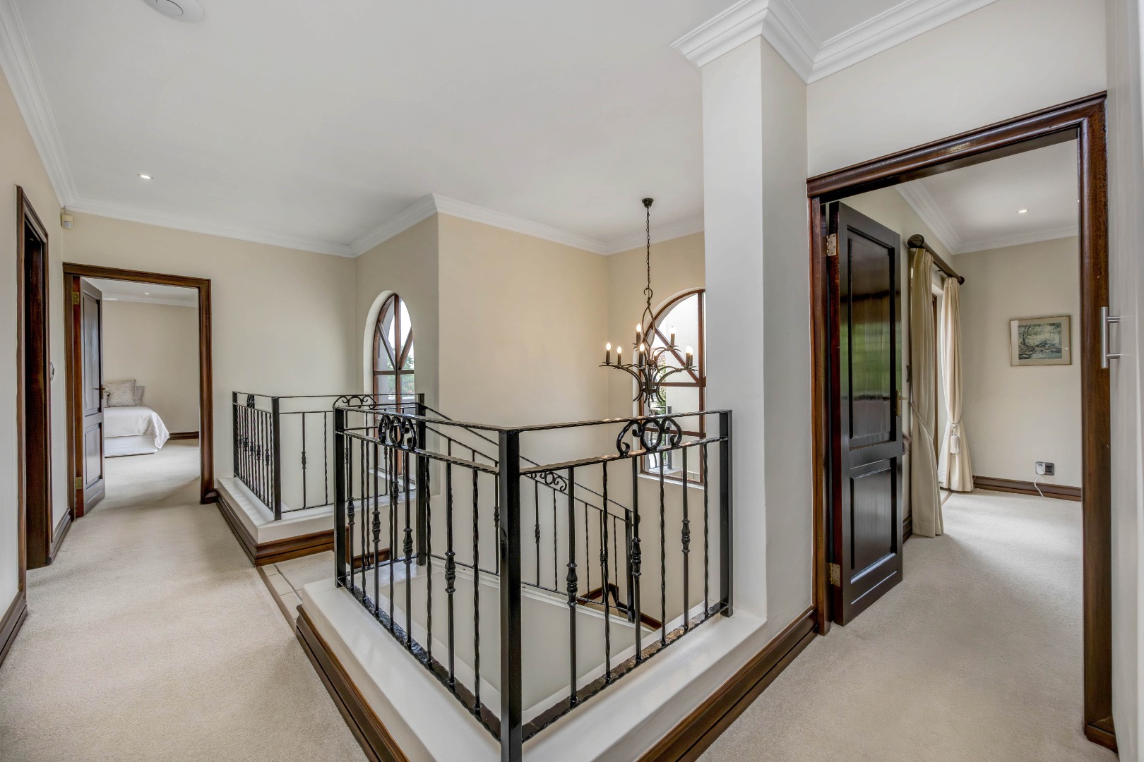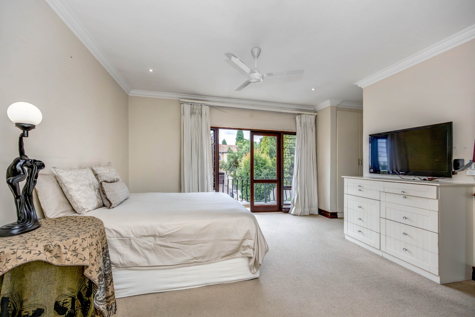 Upstairs, the home continues to impress: The luxurious main suite offers generous cupboard space, a full bathroom with spa bath, and a private balcony overlooking the garden.