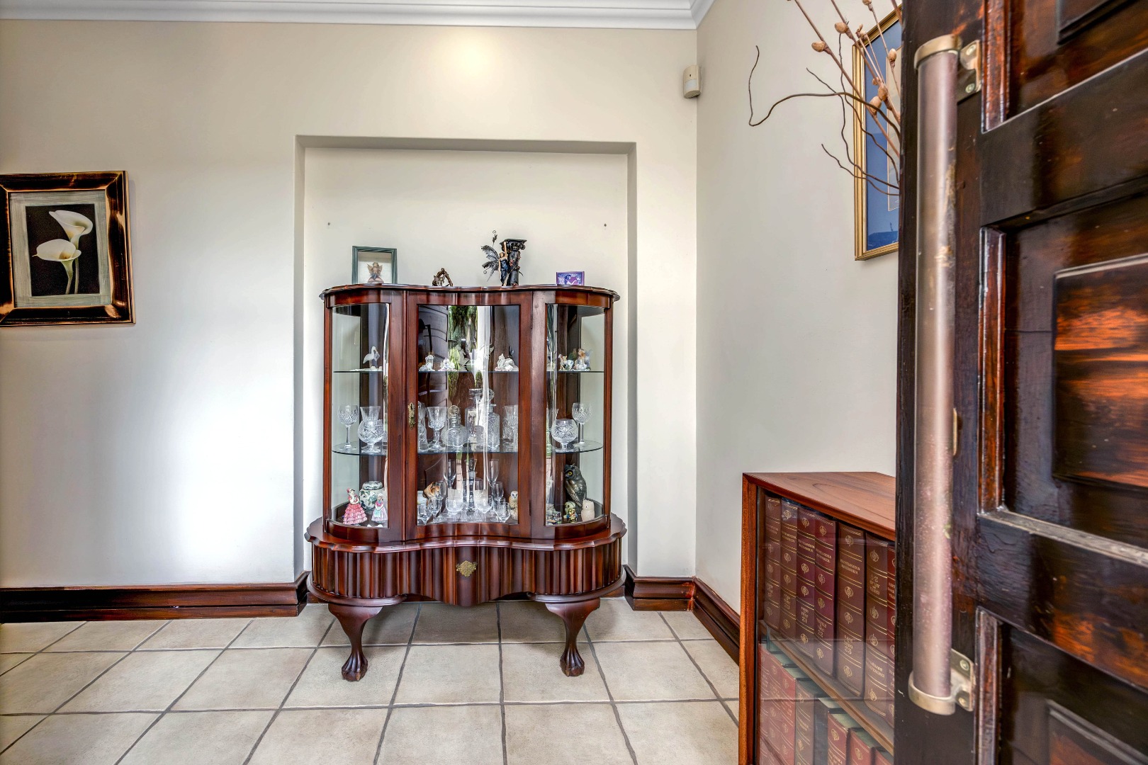 The expansive open-plan lounge and dining area is filled with natural light, flowing seamlessly to a covered patio with built-in braai, overlooking a pristine, newly enhanced pool… the perfect stage for relaxed weekends and elegant entertaining.