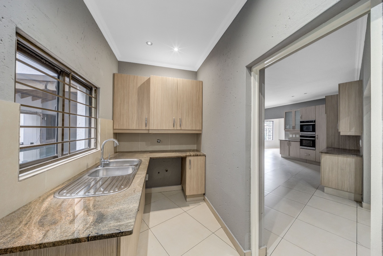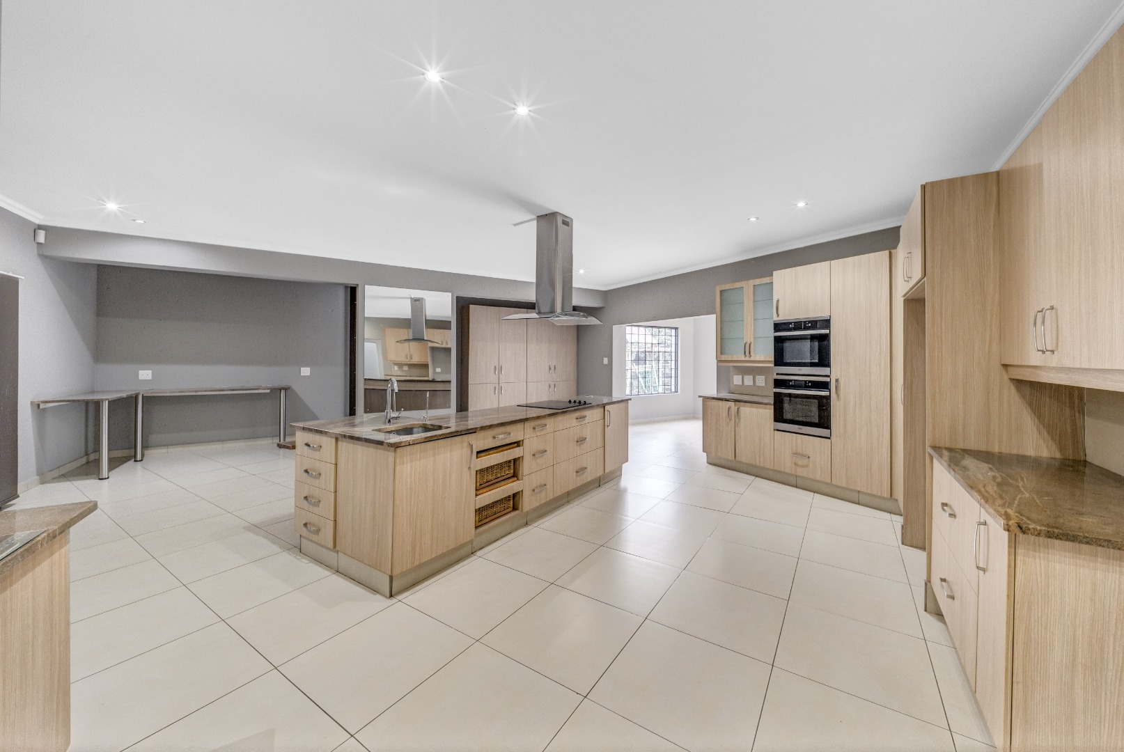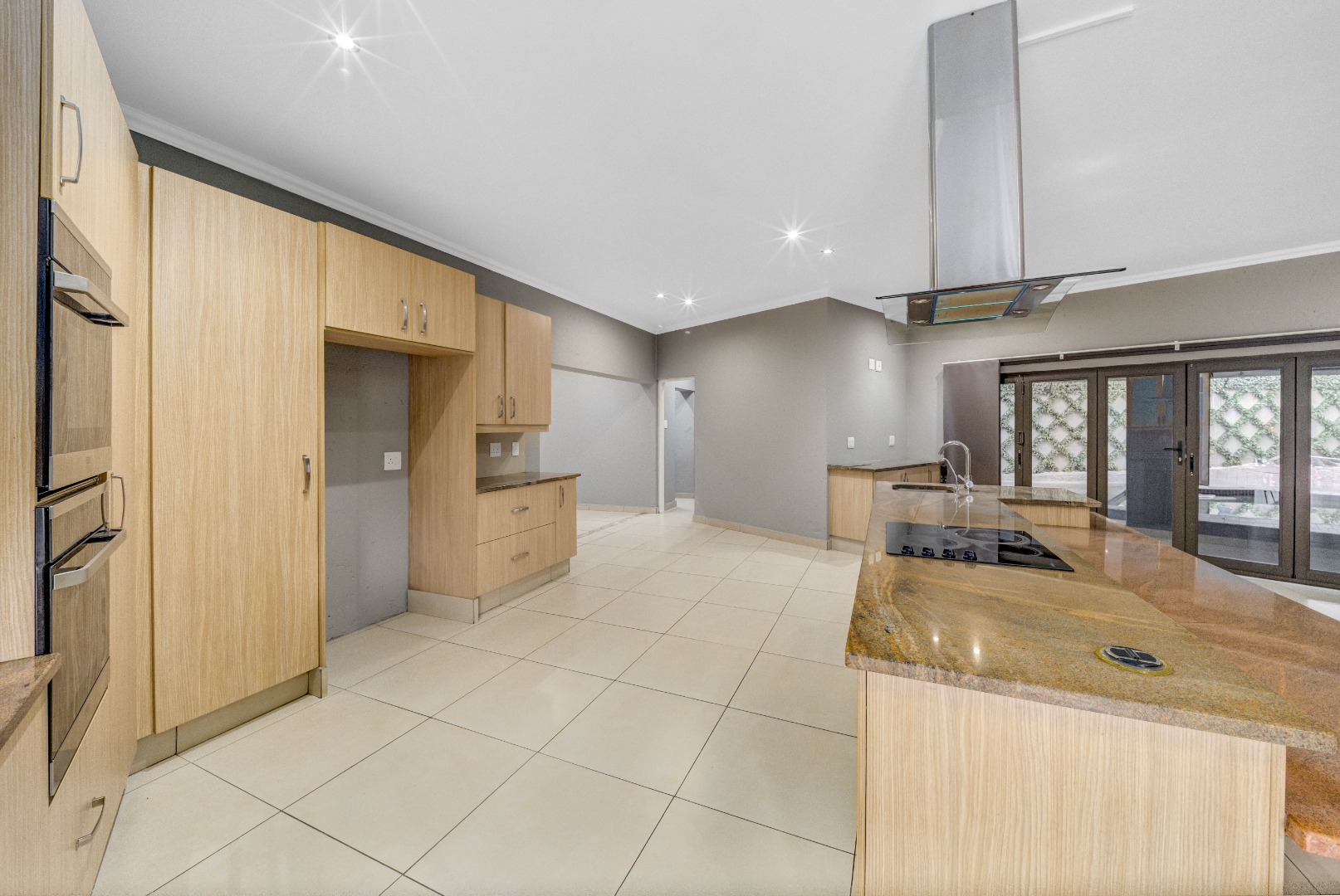 The kitchen is well appointed with ample cabinetry and workspace, complemented by a separate scullery. It opens onto a covered pool and pool house area, complete with a built-in braai and outbuilding bathroom, creating a superb year-round entertainment space overlooking the pool.
