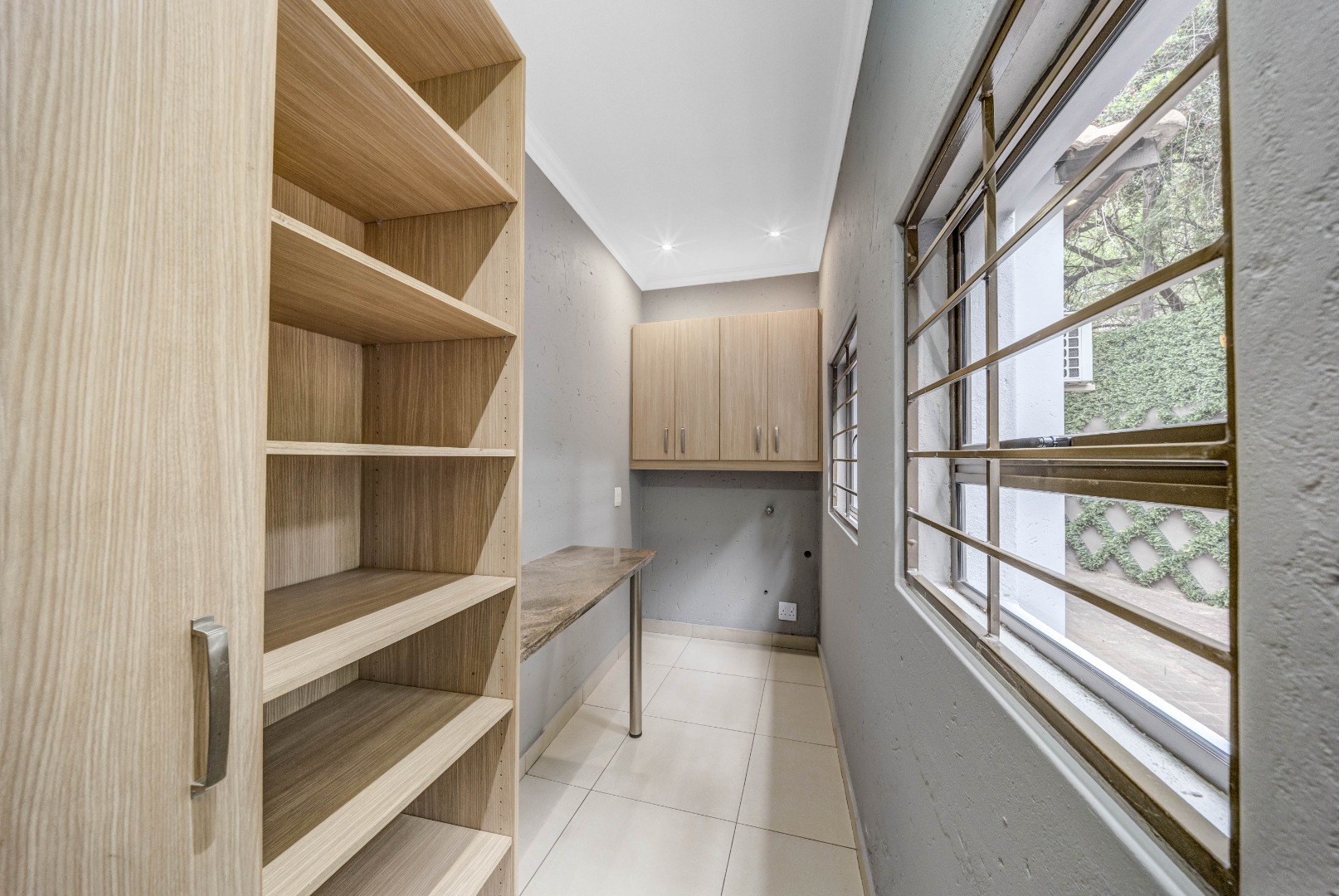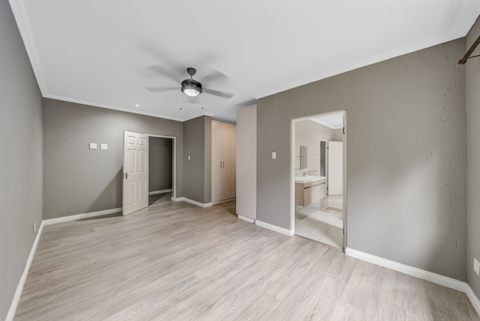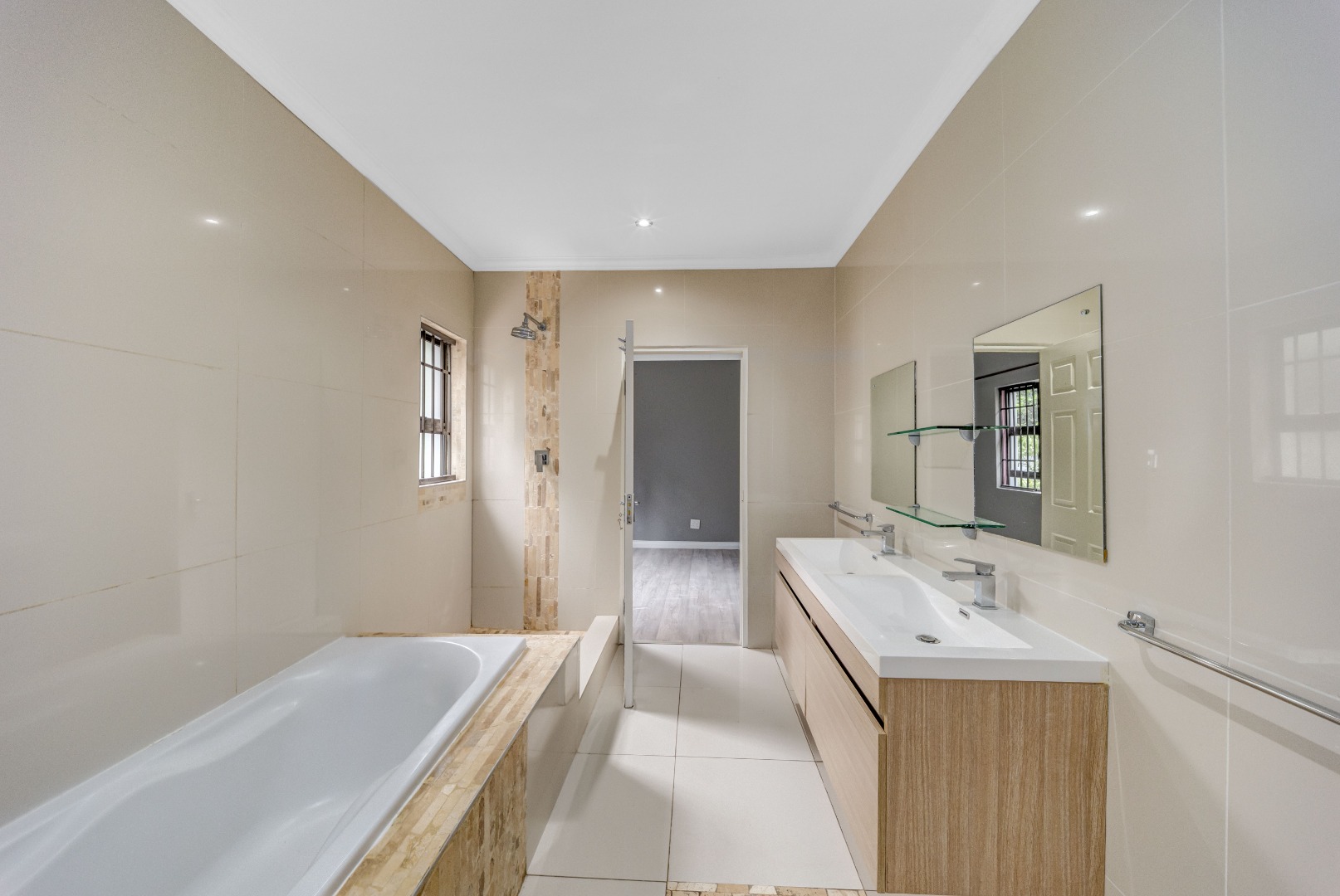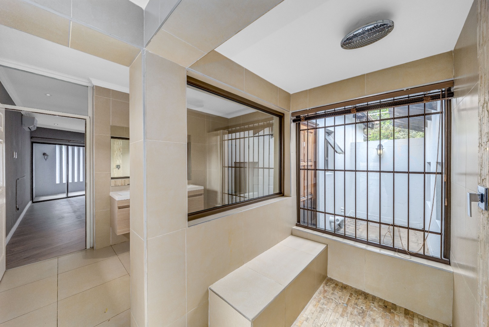 The kitchen is well appointed with ample cabinetry and workspace, complemented by a separate scullery. It opens onto a covered pool and pool house area, complete with a built-in braai and outbuilding bathroom, creating a superb year-round entertainment space overlooking the pool.