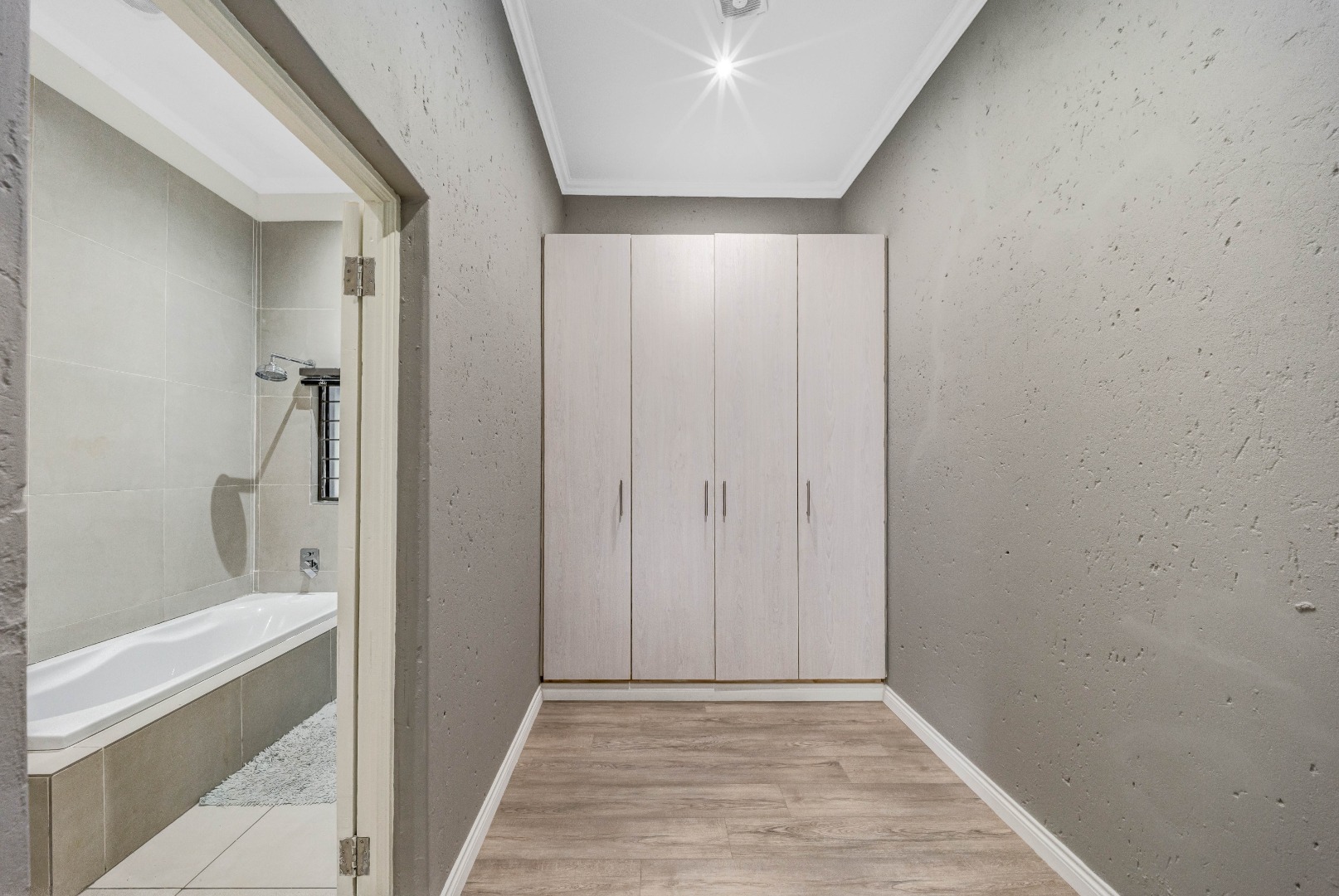 Two bedrooms are located on the ground floor. One is en-suite, while the second shares a bathroom with a walk-in closet area, ideal for guests or extended family.