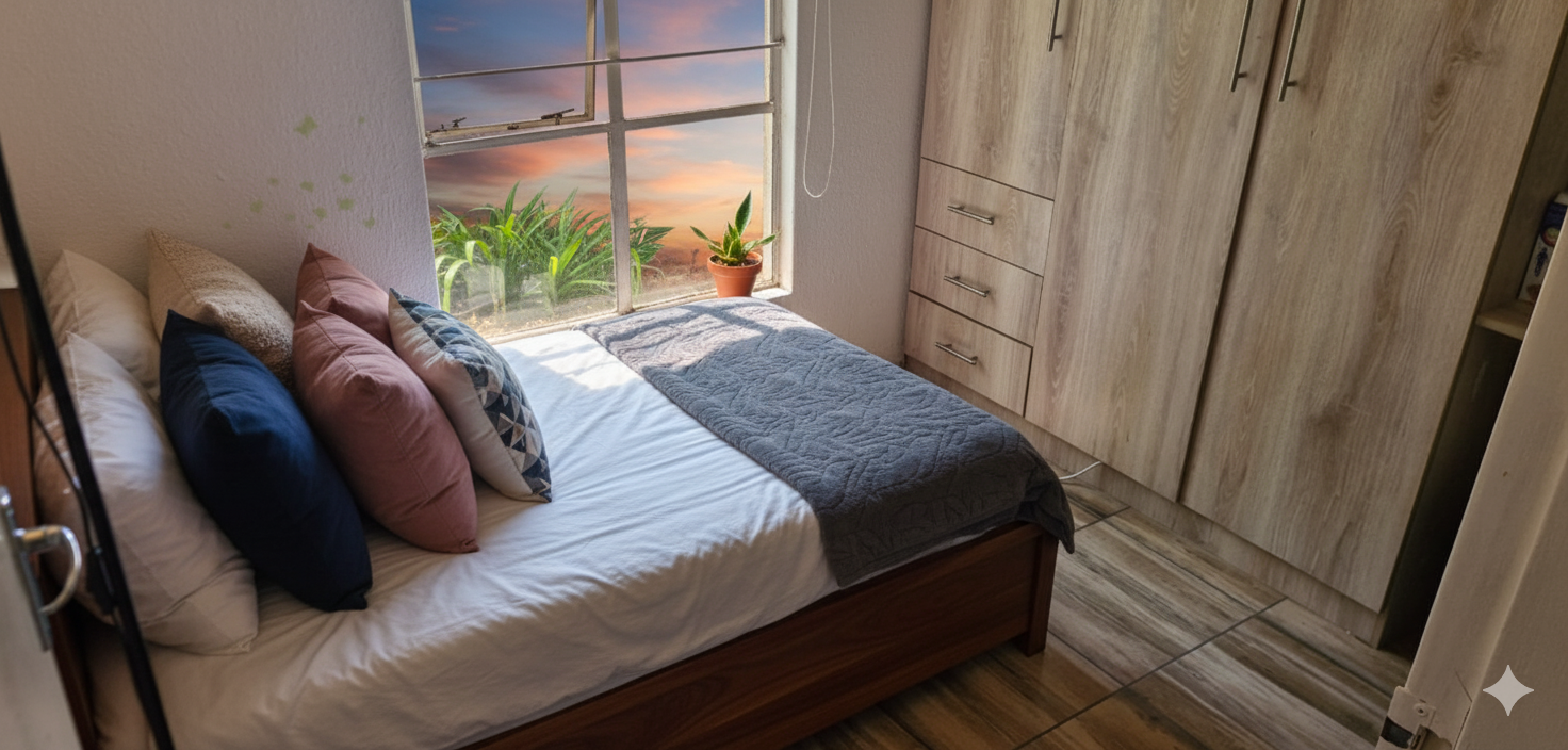 Accommodation: Two bright bedrooms complete with built-in cupboards, and a single, full, modern bathroom.