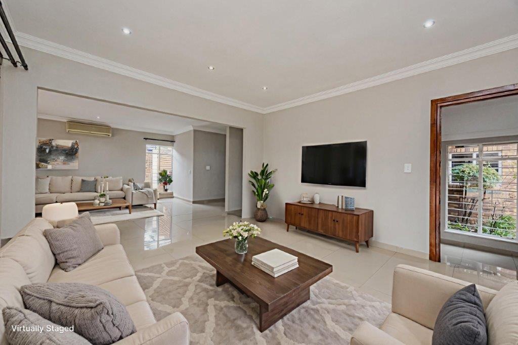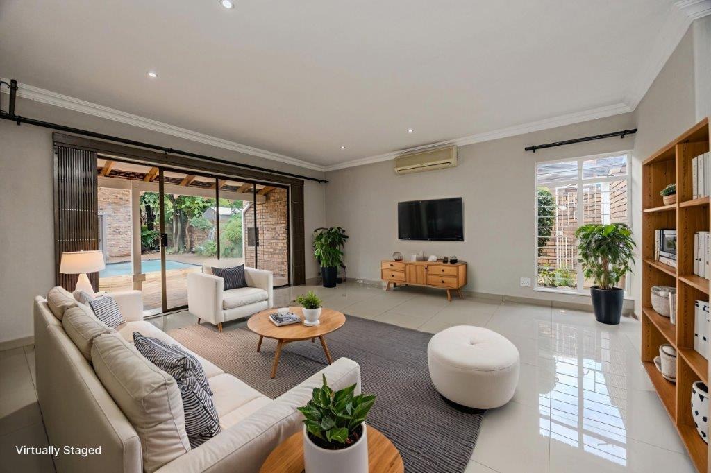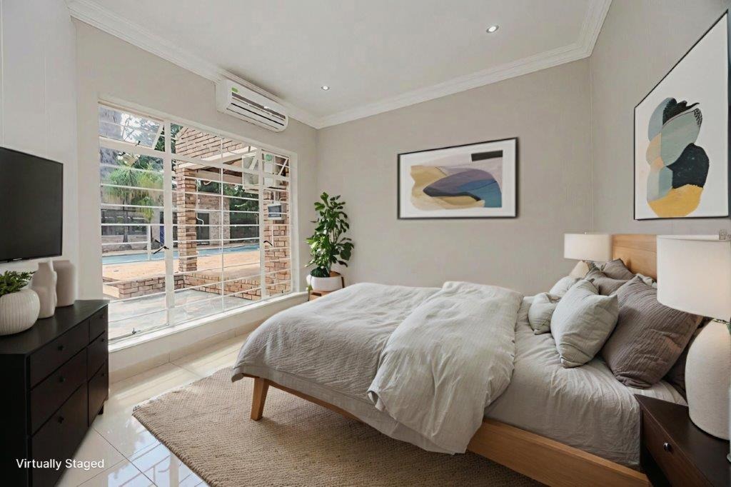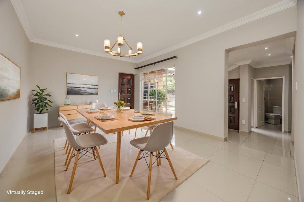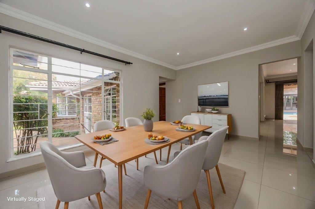 Discover this meticulously renovated and move-in ready four-bedroom residence, ideally situated within the highly desirable Green Park area of Douglasdale. Boasting a generously sized, newly lawned garden of 1520 sqm and a floor area of +/-325 sqm, this property offers ample space for comfortable family living and entertaining. The cherry on the top is the magnificent freestanding entertainment room offering a built in pizza oven, indoor braai and so much space for those huge, over-the-top family celebrations. Throw open the wide, stacking doors next to the sparkling, newly resurfaced pool and invite the sunshine in!