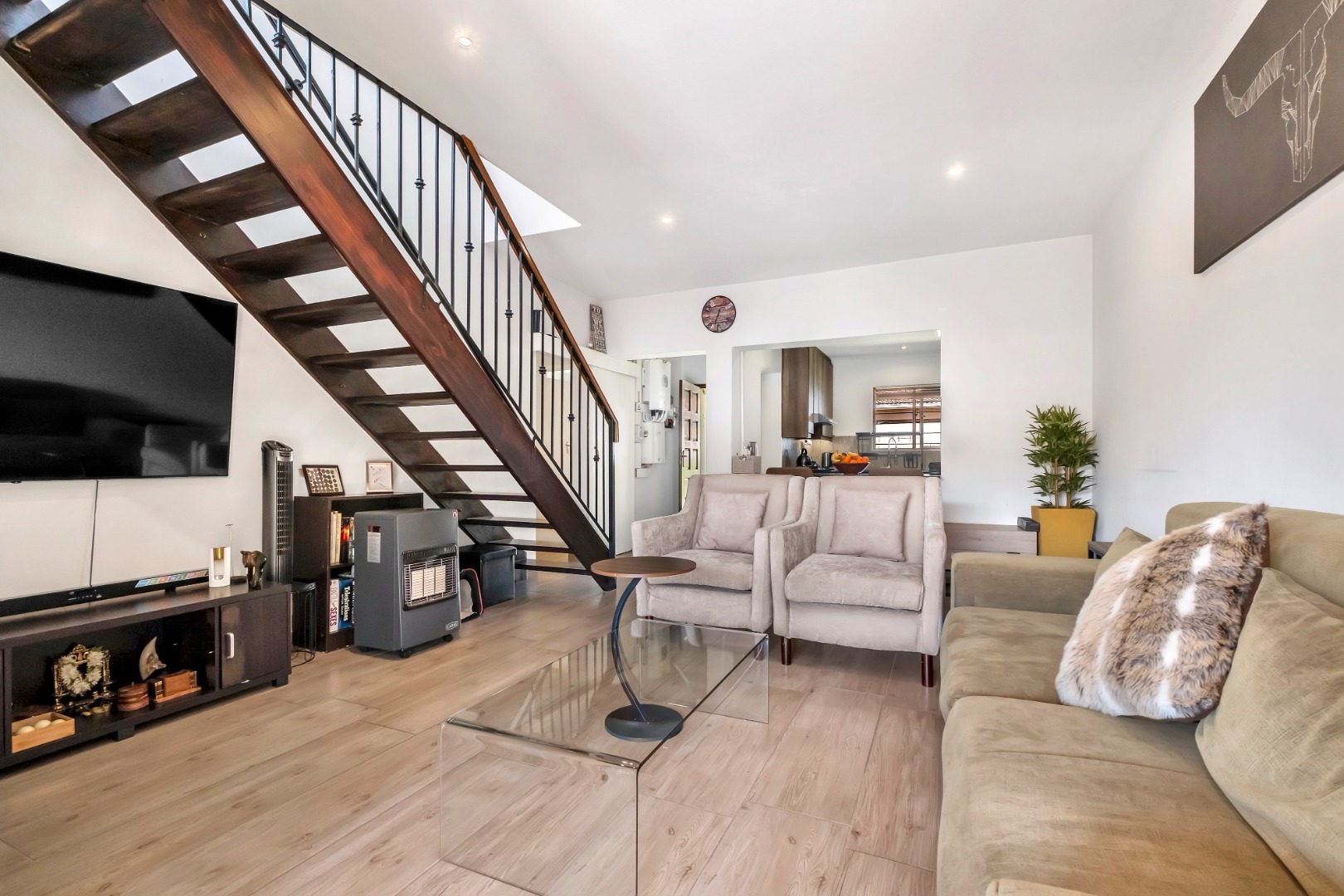This lovely, bright home exudes a relaxed and welcoming air, offering the perfect blend of space, comfort, and style in a sought-after secure complex. With its large wrap-around garden, sunny roof terrace, and thoughtful modern features, this is the ideal home for families or professionals seeking both space and security.