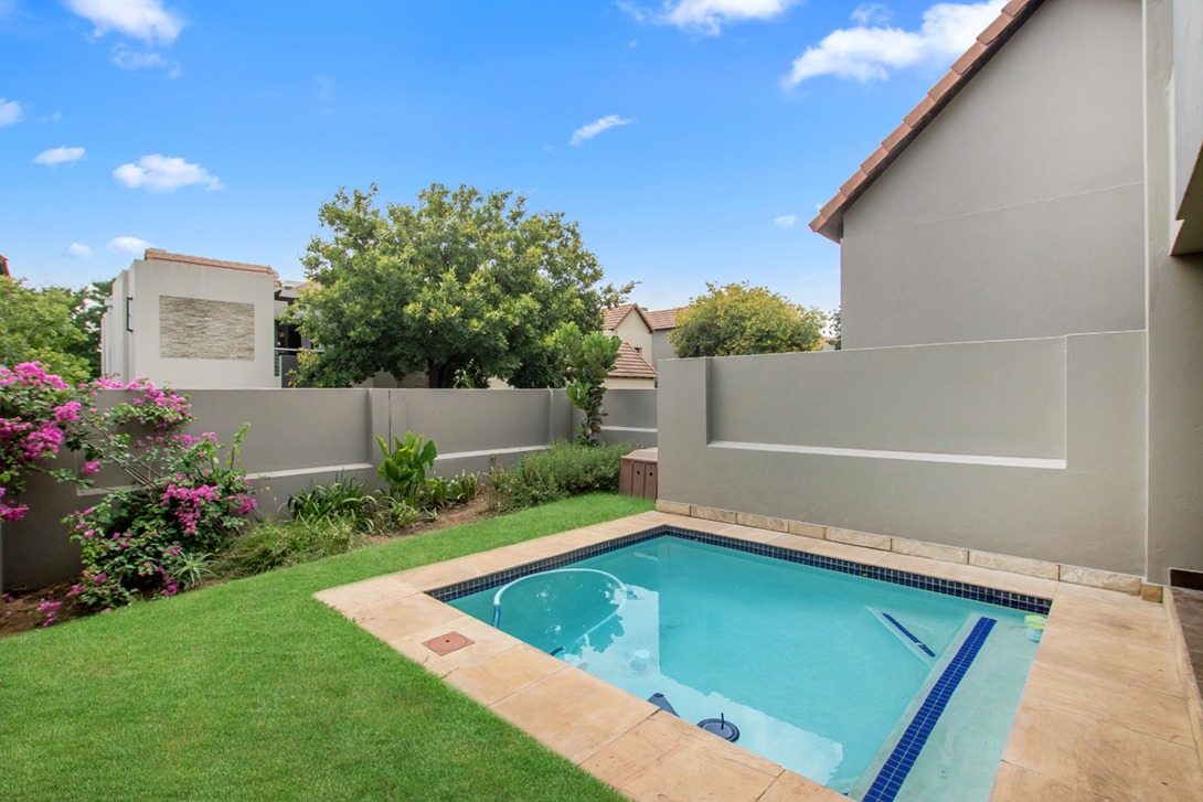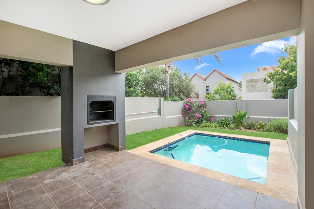The living areas extend to an undercover patio with a built-in braai, overlooking a sparkling private pool and manageable garden, ideal for indoor-outdoor living and entertaining family and friends.
