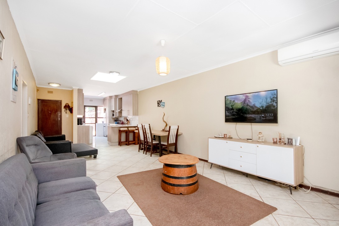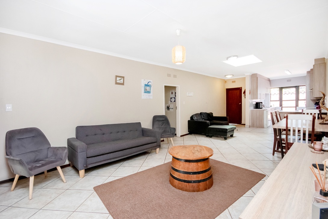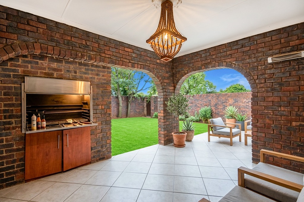 The spacious lounge offers plenty of room for both a dining and lounge suite, and flows seamlessly out to a partly enclosed braai area — perfect for entertaining. The open-plan kitchen boasts generous cupboard space and leads out to a charming private courtyard.