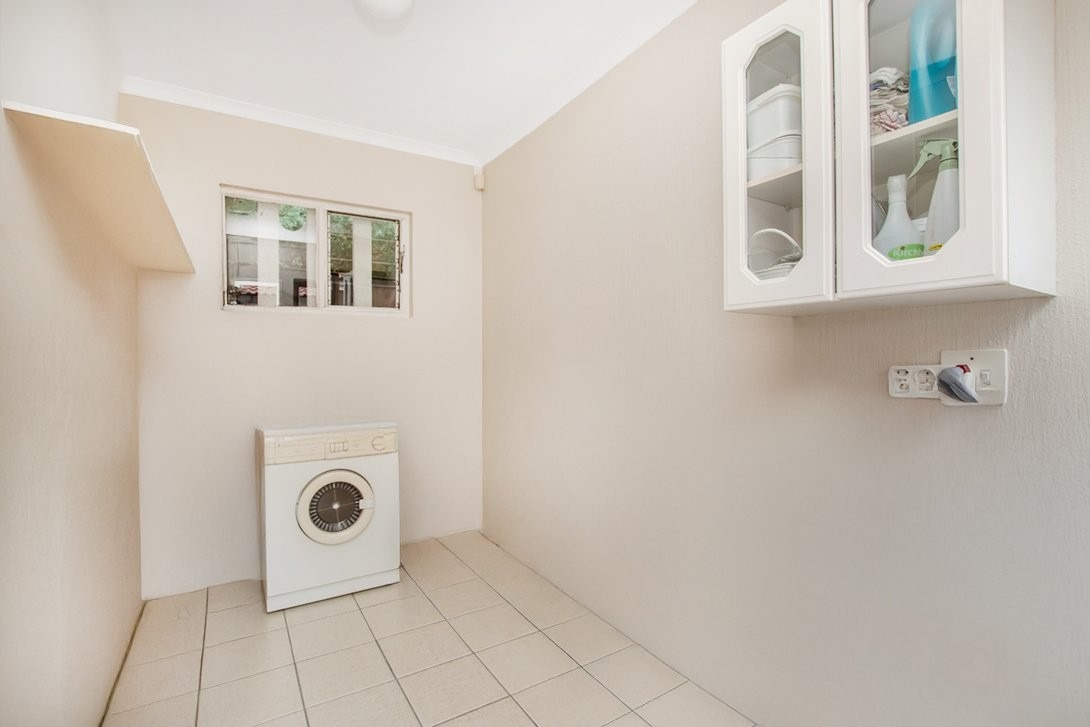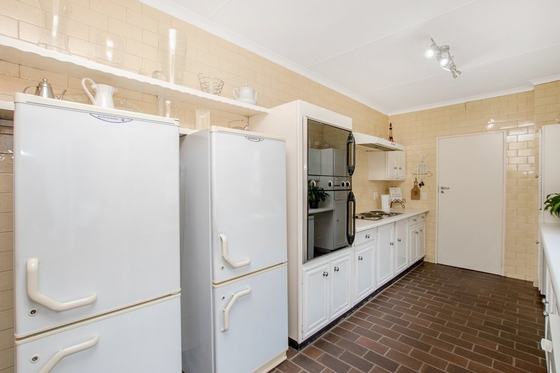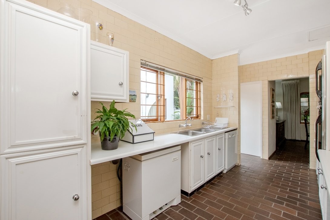 Its pretty galley kitchen has many cupboards, a walk-in pantry, and space for three under counter appliances and a double door fridge. It opens to a walled back garden containing a laundry room attached to a large staff room. A separate outside toilet with a shower (a wet room) is also in the back garden/courtyard.