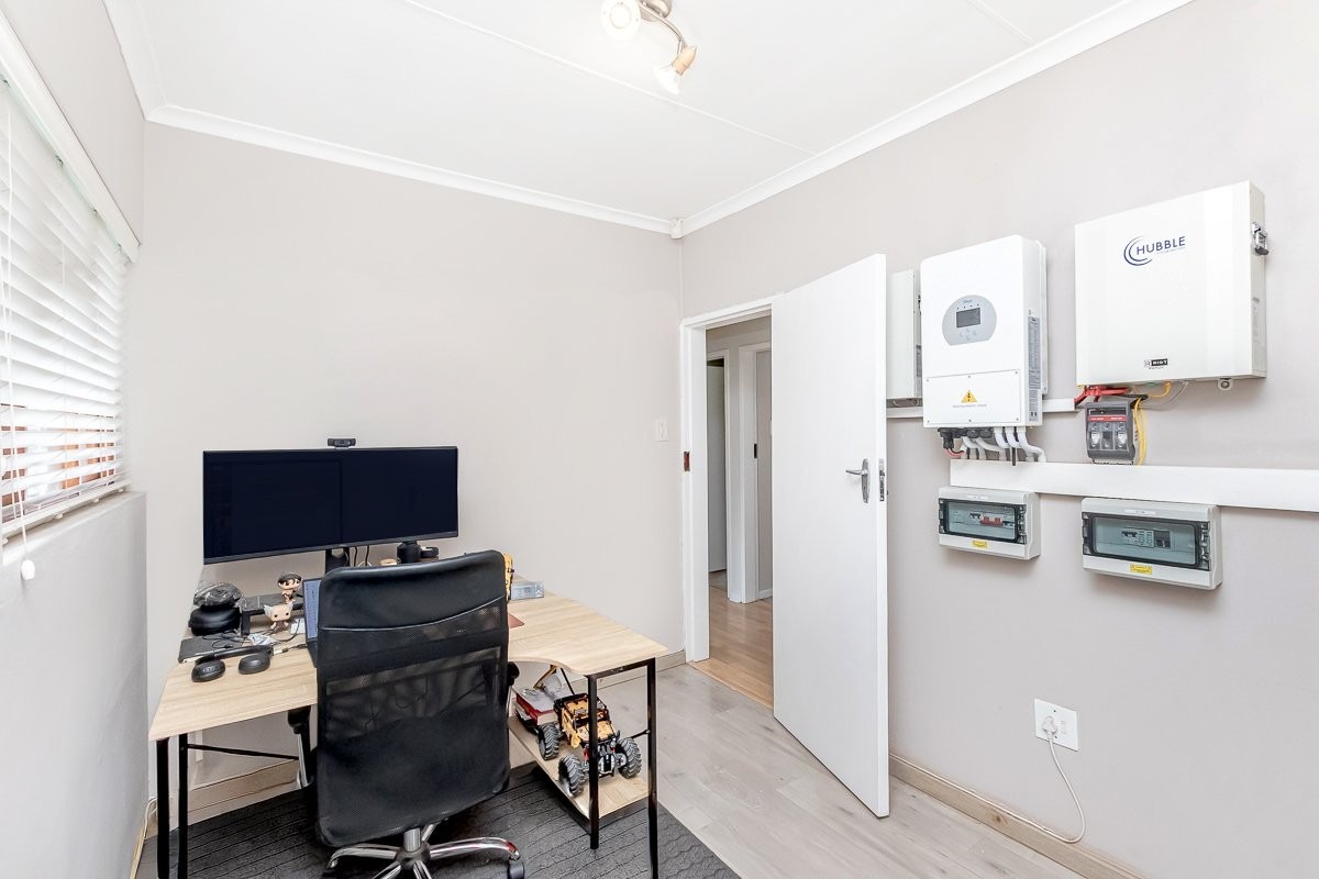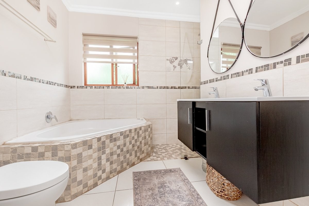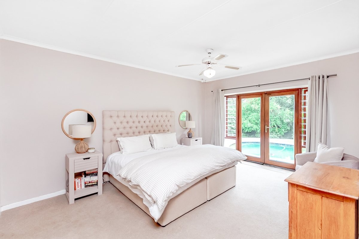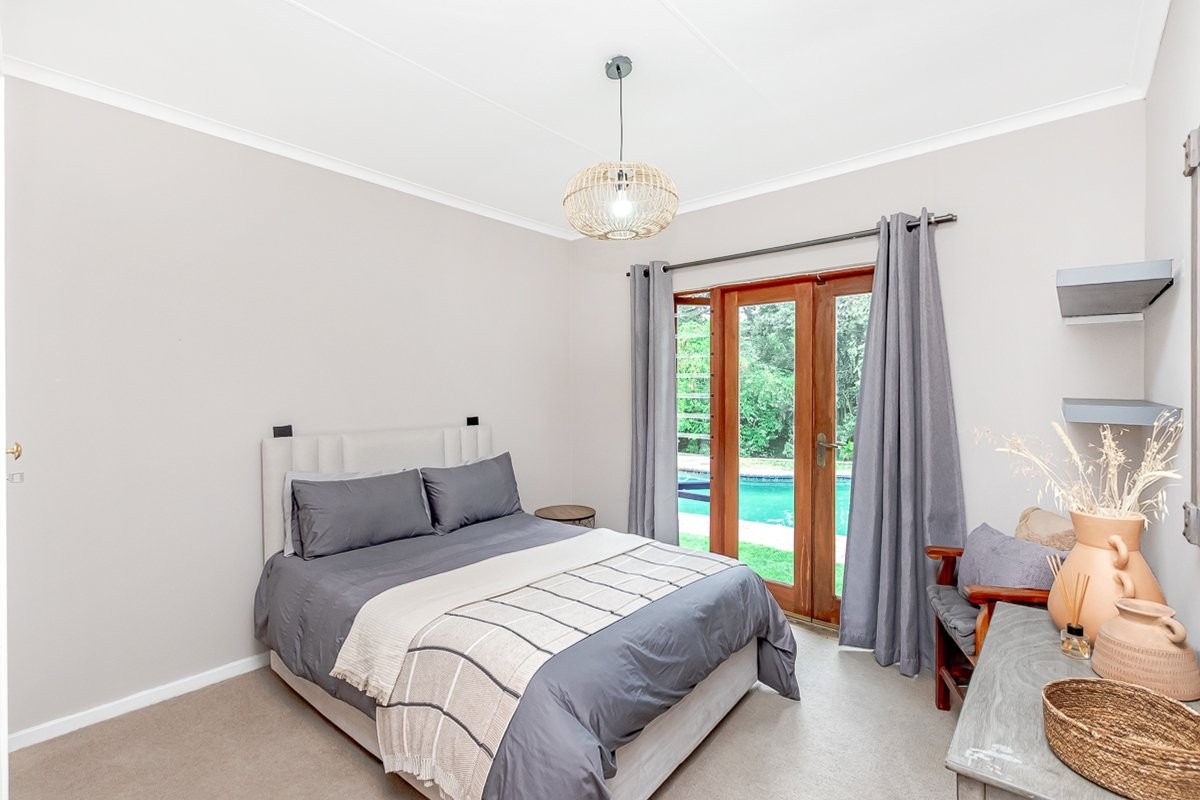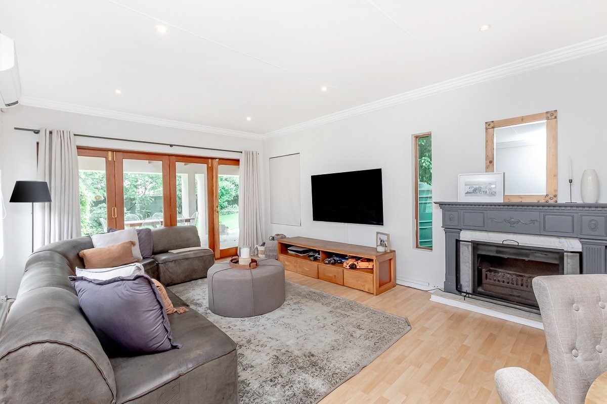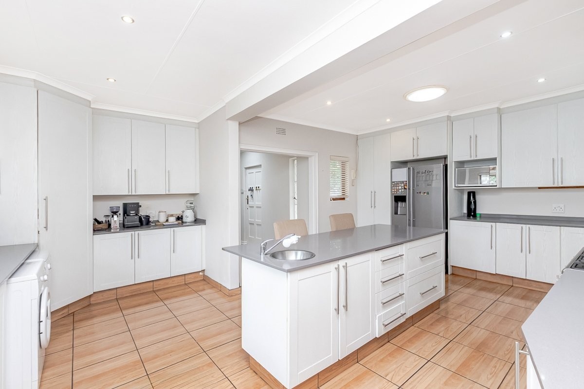 This is a special home full of light, elegant simplicity and character afforded by an open plan layout; a huge and modern kitchen fitted with an island and a SMEG gas hob; wood laminate floors; a fireplace with a mantelpiece in the lounge and stack doors in the extra-length living room that open to the fabulous, covered patio overlooking a manicured garden with a raised swimming pool. Add to this a staff room, an outside W/C, 40 000 litres of tanked water, a solar system with eight panels and a 5 kVA battery, and multiple layers of security, and you have a home to last a lifetime.
