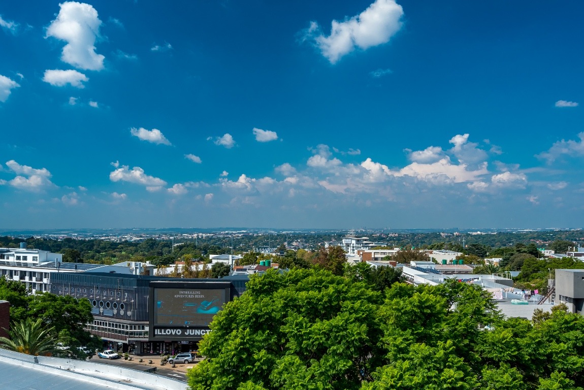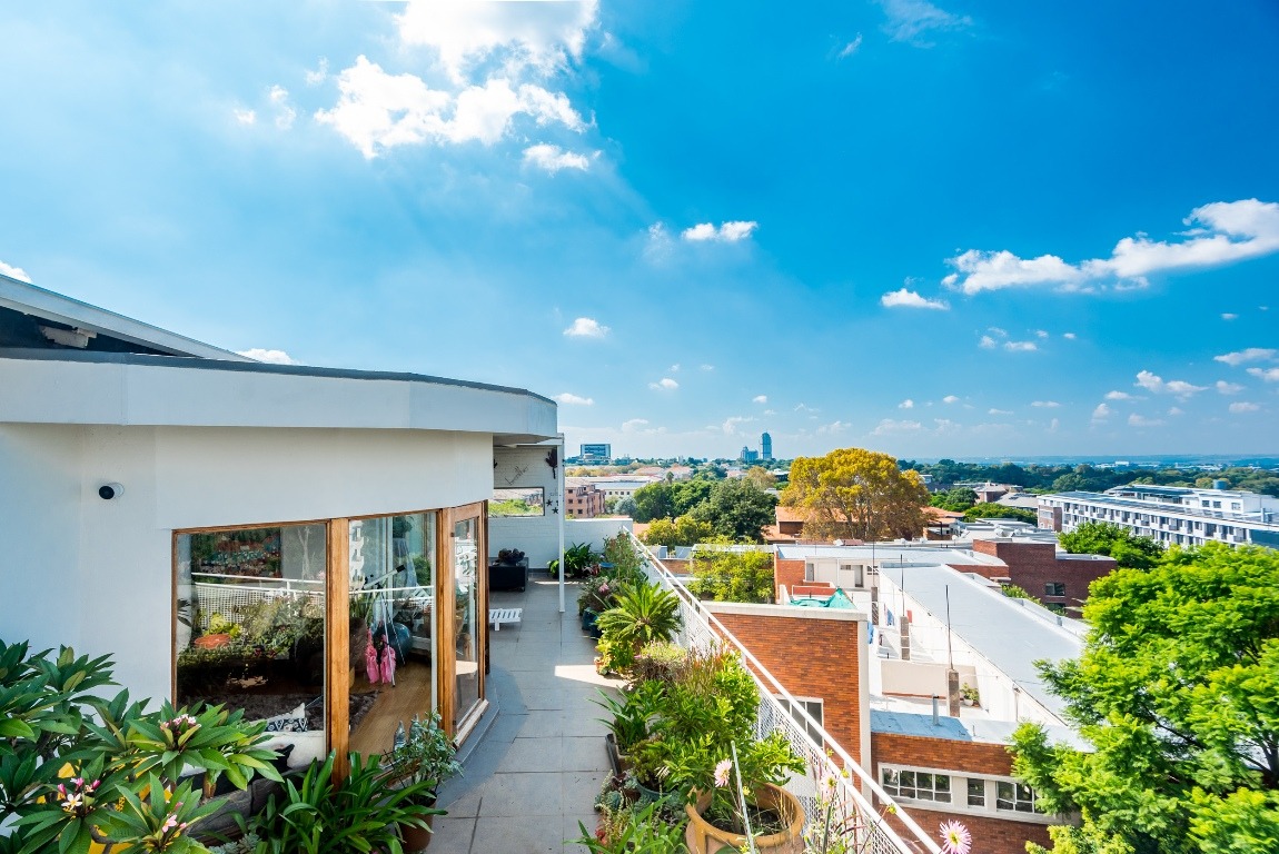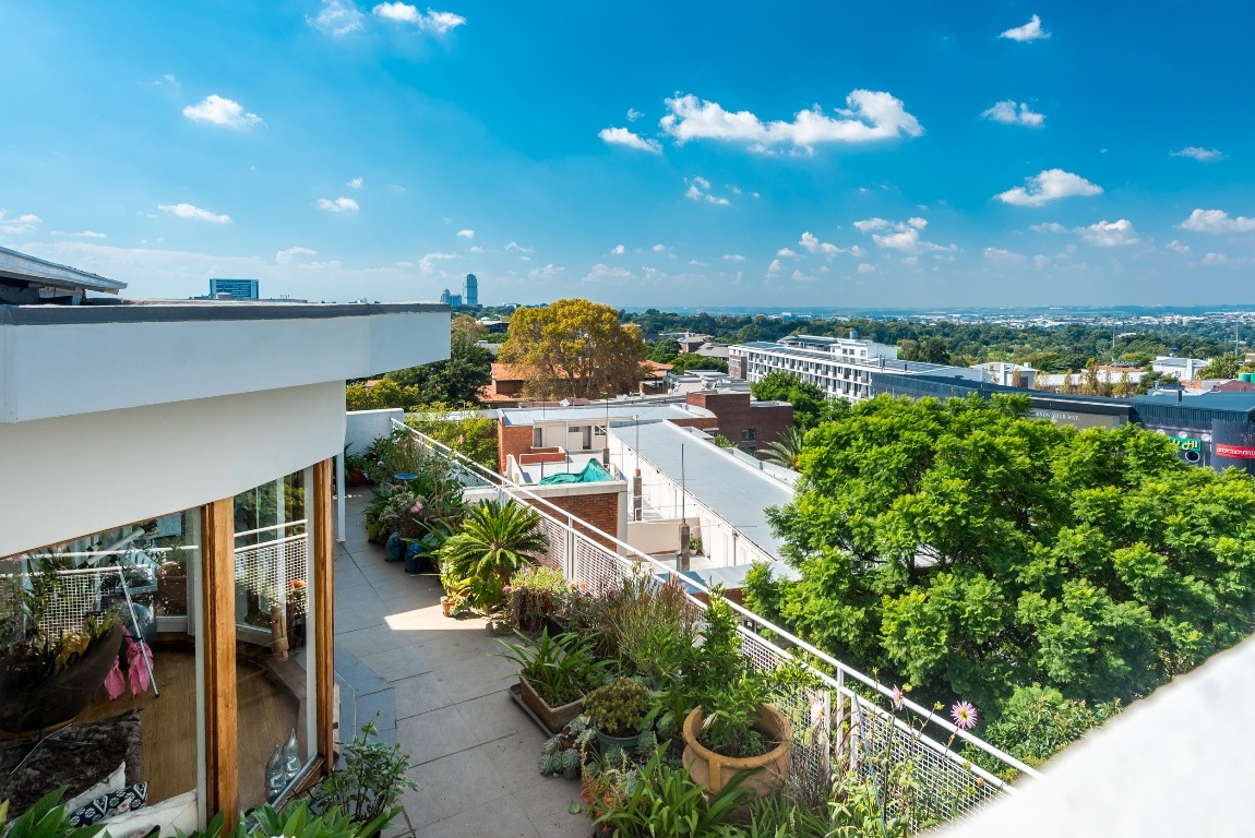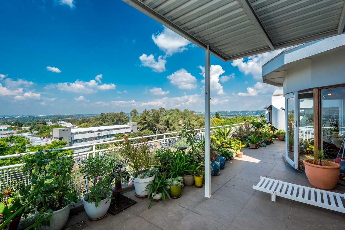 There is an indescribable feeling of freedom as you look out across the suburb of Illovo unfolding below, encompassing the Wanderers stadium to one side, the Sandton skyline to another and views extending unbroken to the eastern horizon.