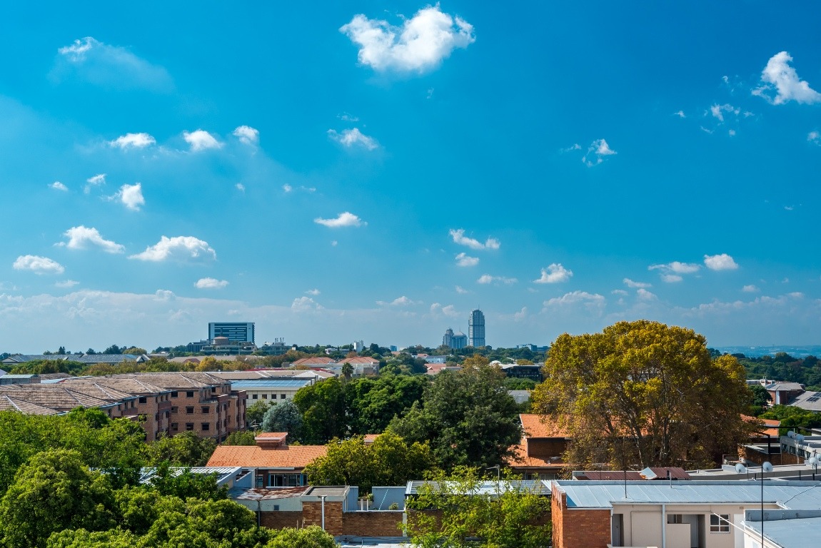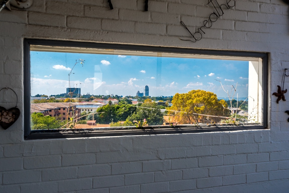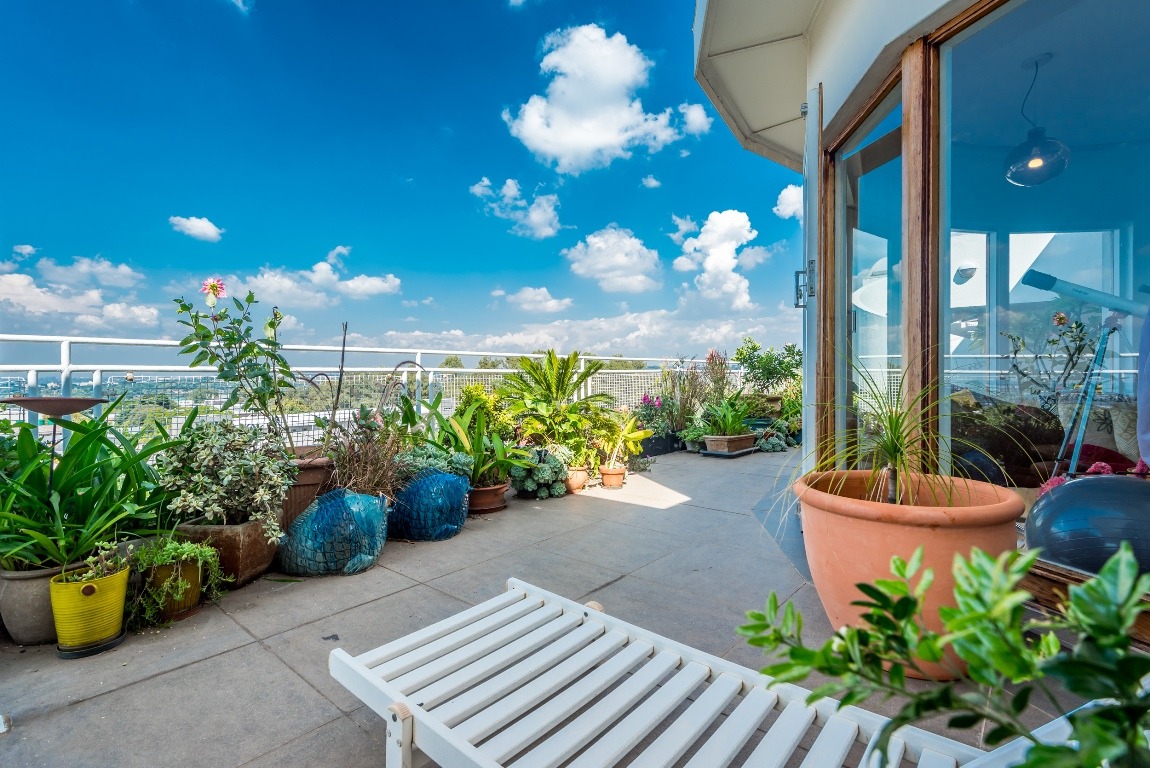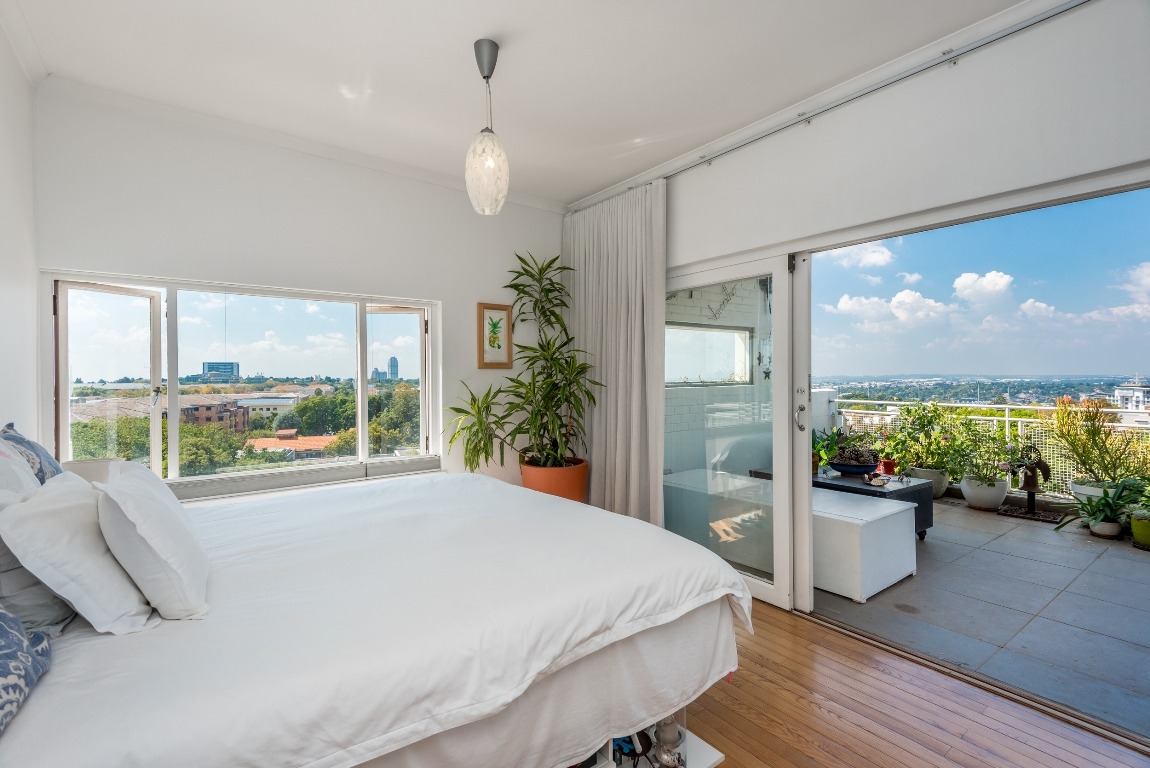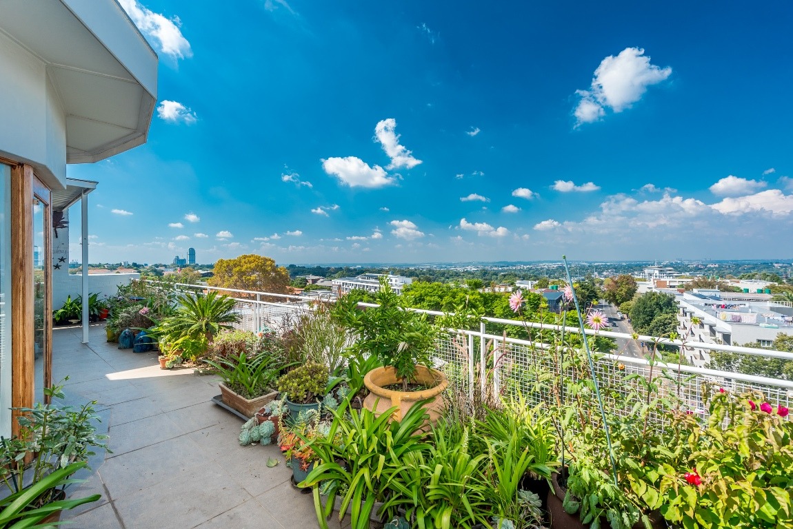 There is an indescribable feeling of freedom as you look out across the suburb of Illovo unfolding below, encompassing the Wanderers stadium to one side, the Sandton skyline to another and views extending unbroken to the eastern horizon.