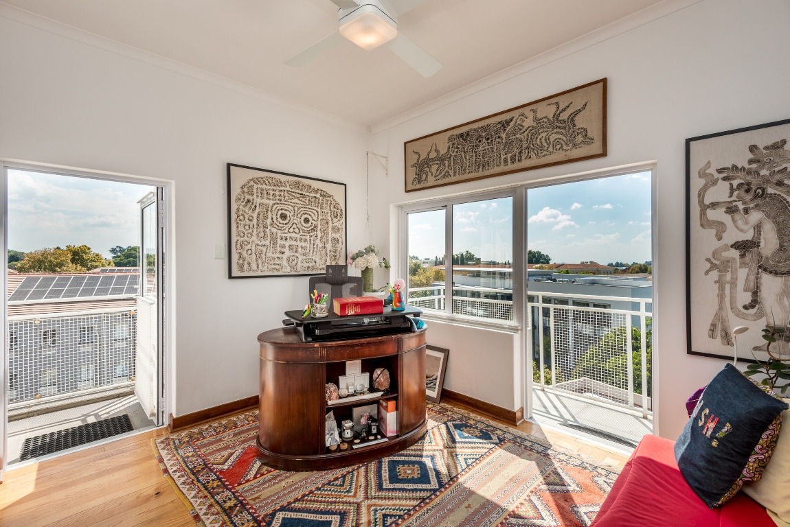 The wrap around balcony is an urban oasis offering a covered seating area ideal for braais and sundowners with space to hang a hammock or swing chair. There is also a discreet outdoor shower to make the most of the balmy highveld weather.