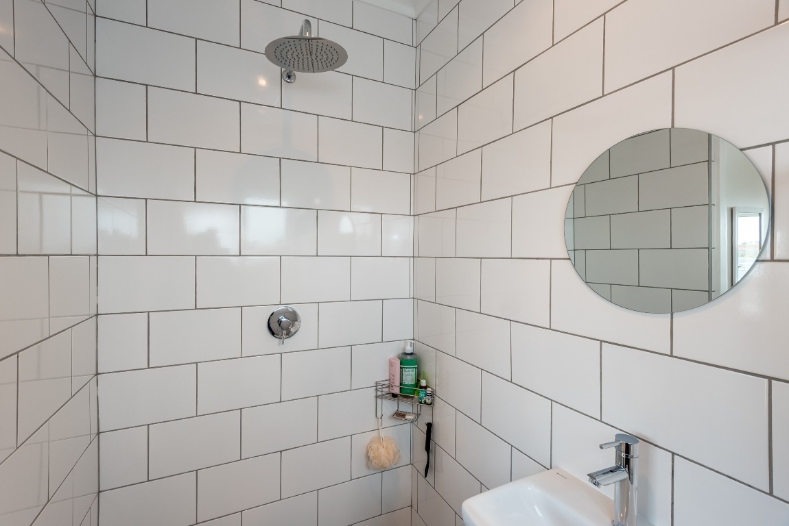 The second, airy bedroom has a neat ensuite bathroom with shower and an additional door to the back balcony, making it suitable to rent separately as an AirBnB room.