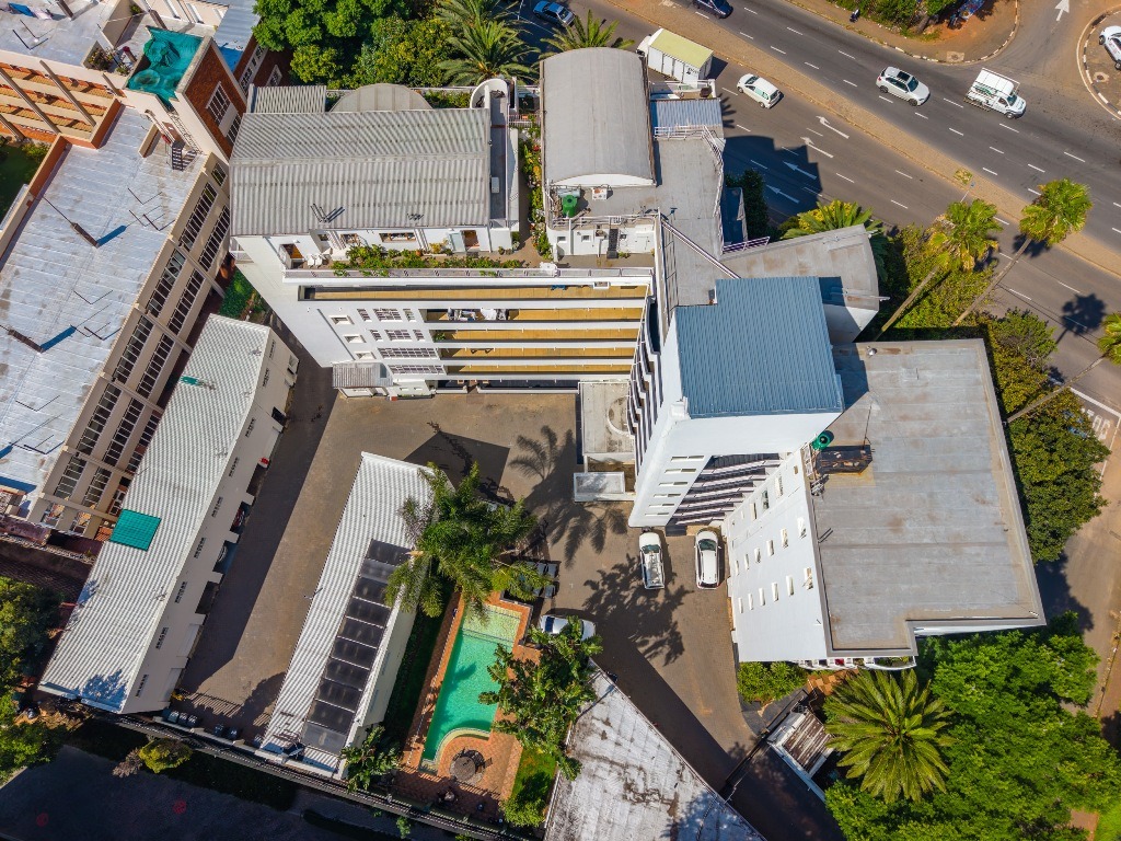 Dunkeld Mansions is an architecturally significant block of luxury flats designed by the renowned architect Harold Le Roith, inspired by the pioneering Swiss-French architect Le Corbusier. Completed in 1936, it is considered a landmark of early South African modernism. A key feature is its free-standing vertical staircase, which contrasts with the horizontal lines of the rest of the structure through continuous full-height window panes. When built, it offered six floors of luxury three-room flats. The roof originally featured servants' quarters, a tea lounge, a kitchen, a solarium, and a squash court.