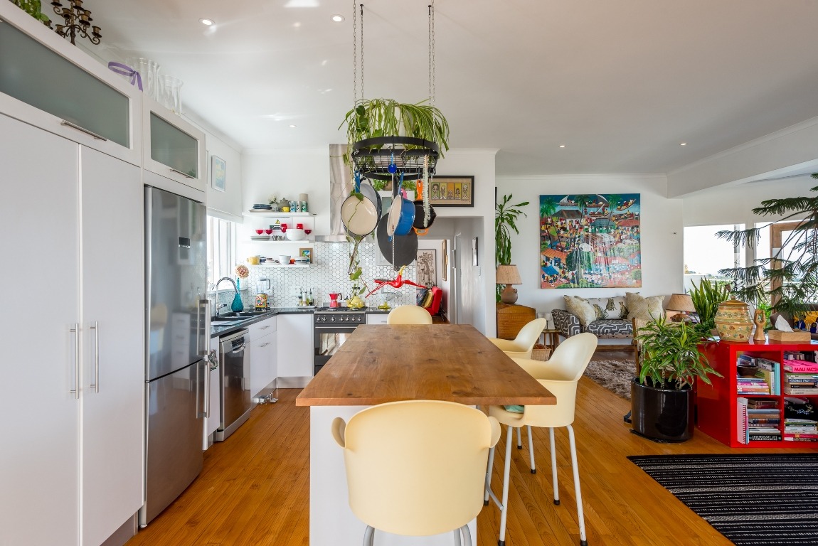 Set apart from the main building, on the site that was originally the rooftop squash court, the property has been designed to offer a gorgeous, warm and welcoming living area that embraces space, light, colour and comfort. Warm wooden floors are offset by fresh white walls and plenty of large windows and doors that spill out onto a sun-filled wrap-around balcony set about with pots of fragrant flowering plants providing welcome greenery that nourishes the soul.