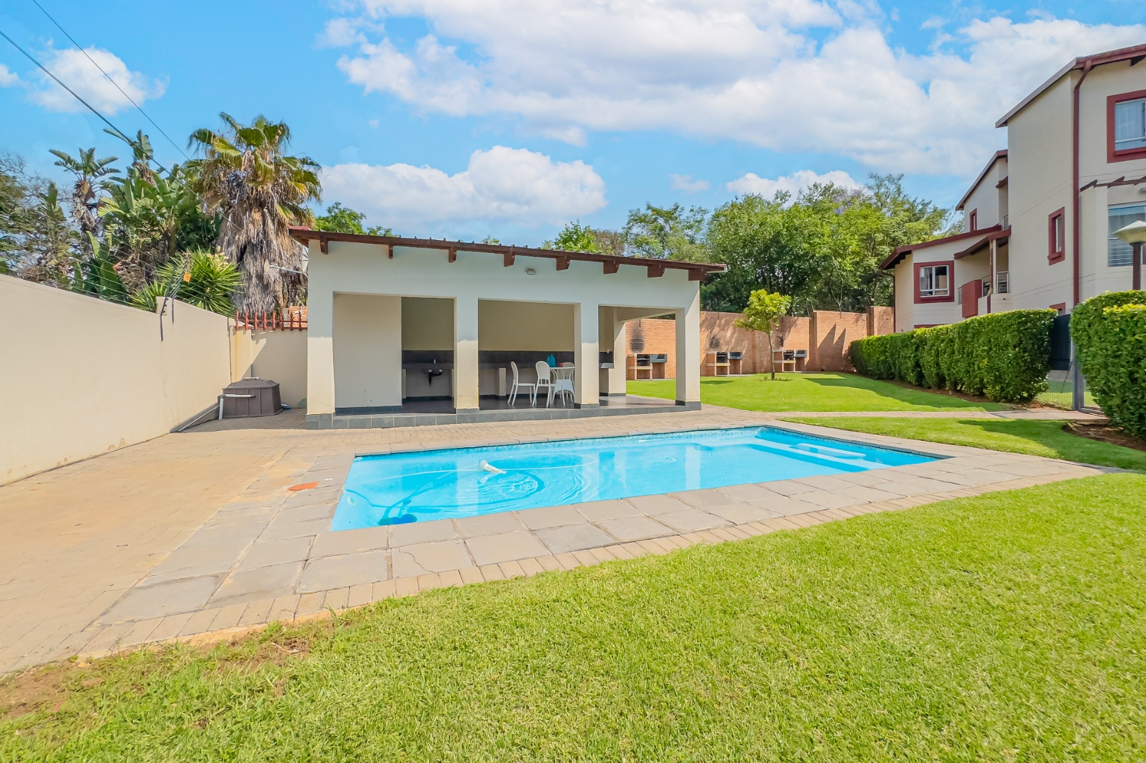 This sought-after complex is designed for leisure and convenience, offering multiple braai areas set within a landscaped garden near the clubhouse. The clubhouse itself is positioned beside the swimming pool and features covered seating—ideal for entertaining friends or hosting weekend gatherings.