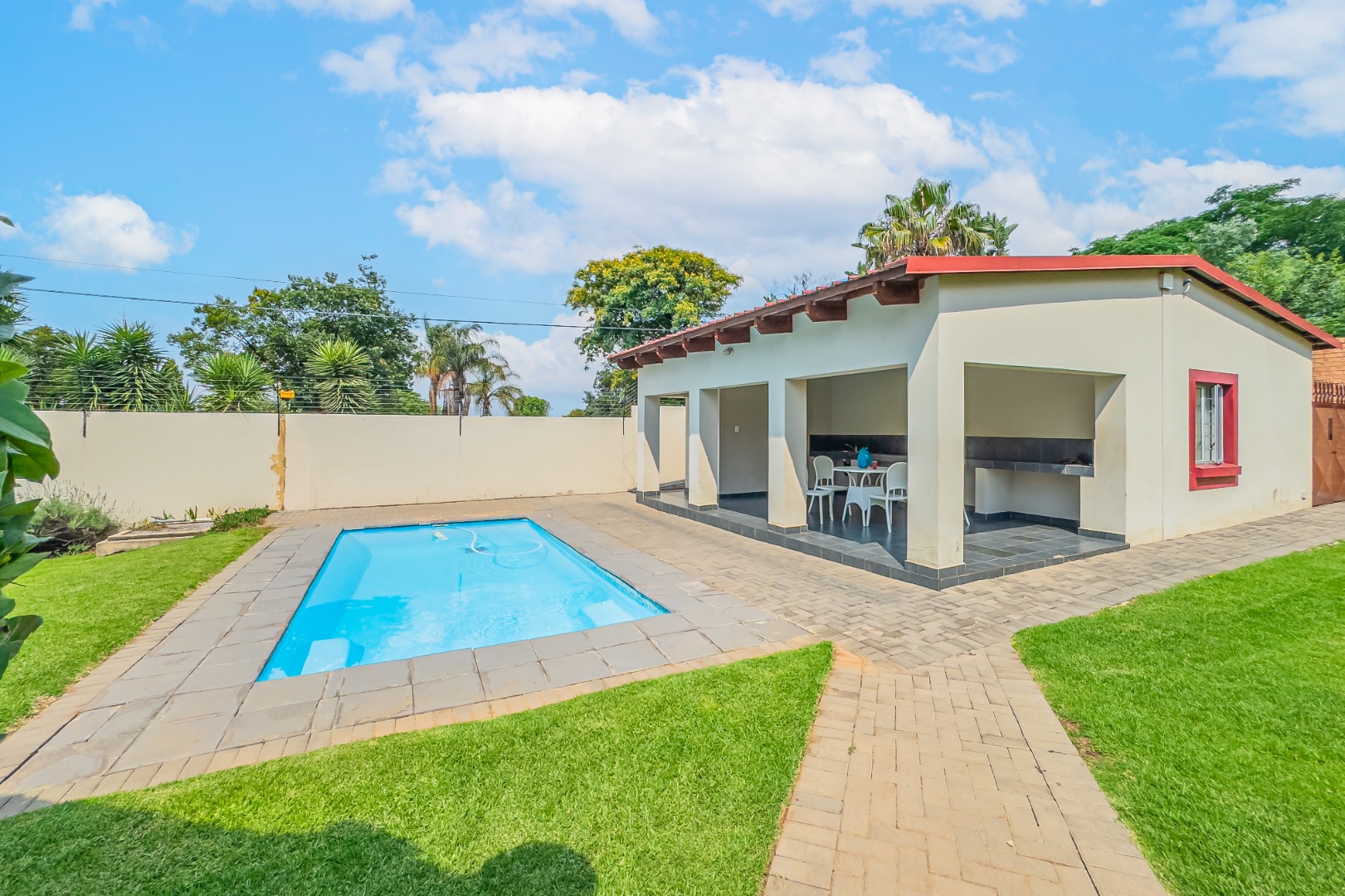 This sought-after complex is designed for leisure and convenience, offering multiple braai areas set within a landscaped garden near the clubhouse. The clubhouse itself is positioned beside the swimming pool and features covered seating—ideal for entertaining friends or hosting weekend gatherings.