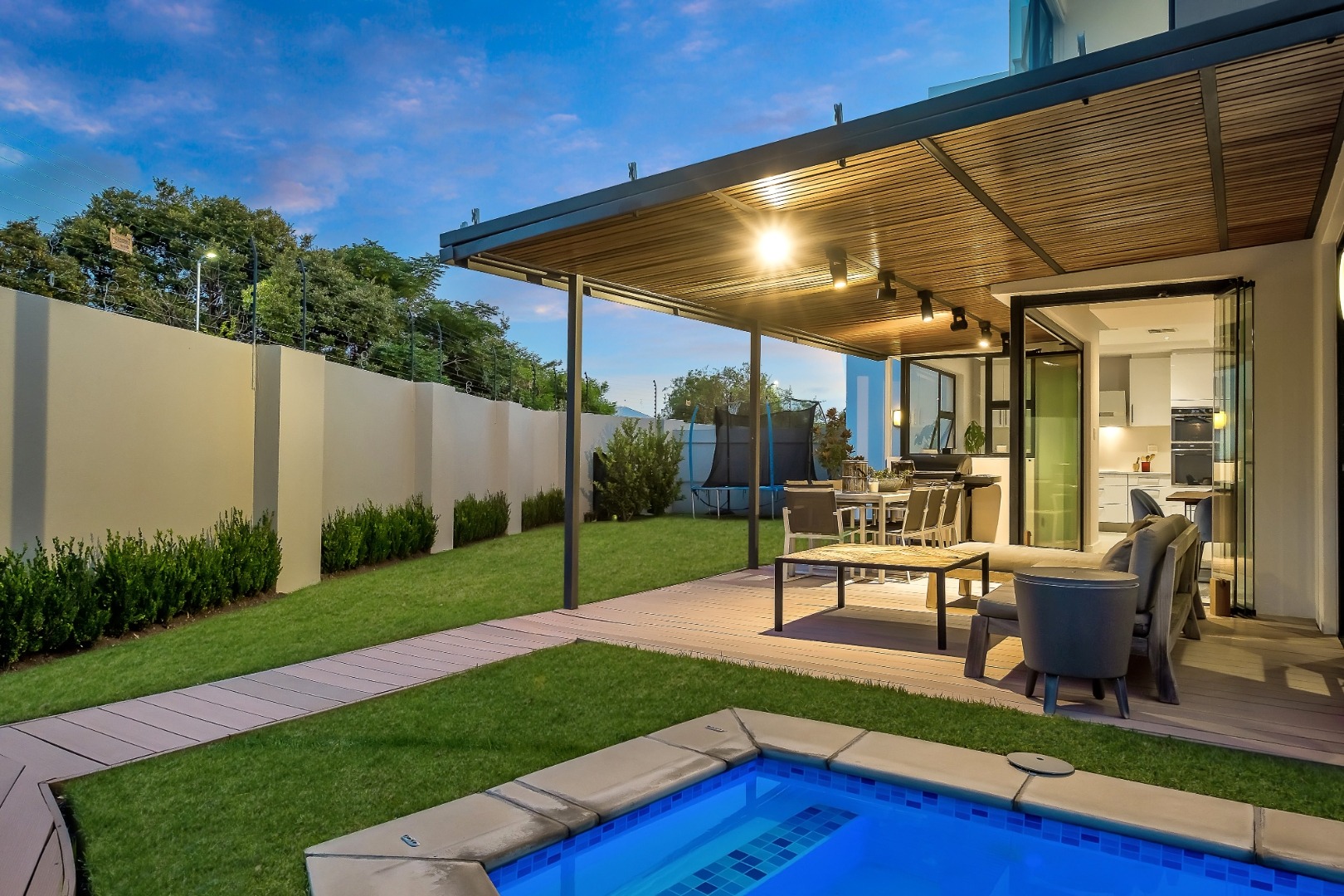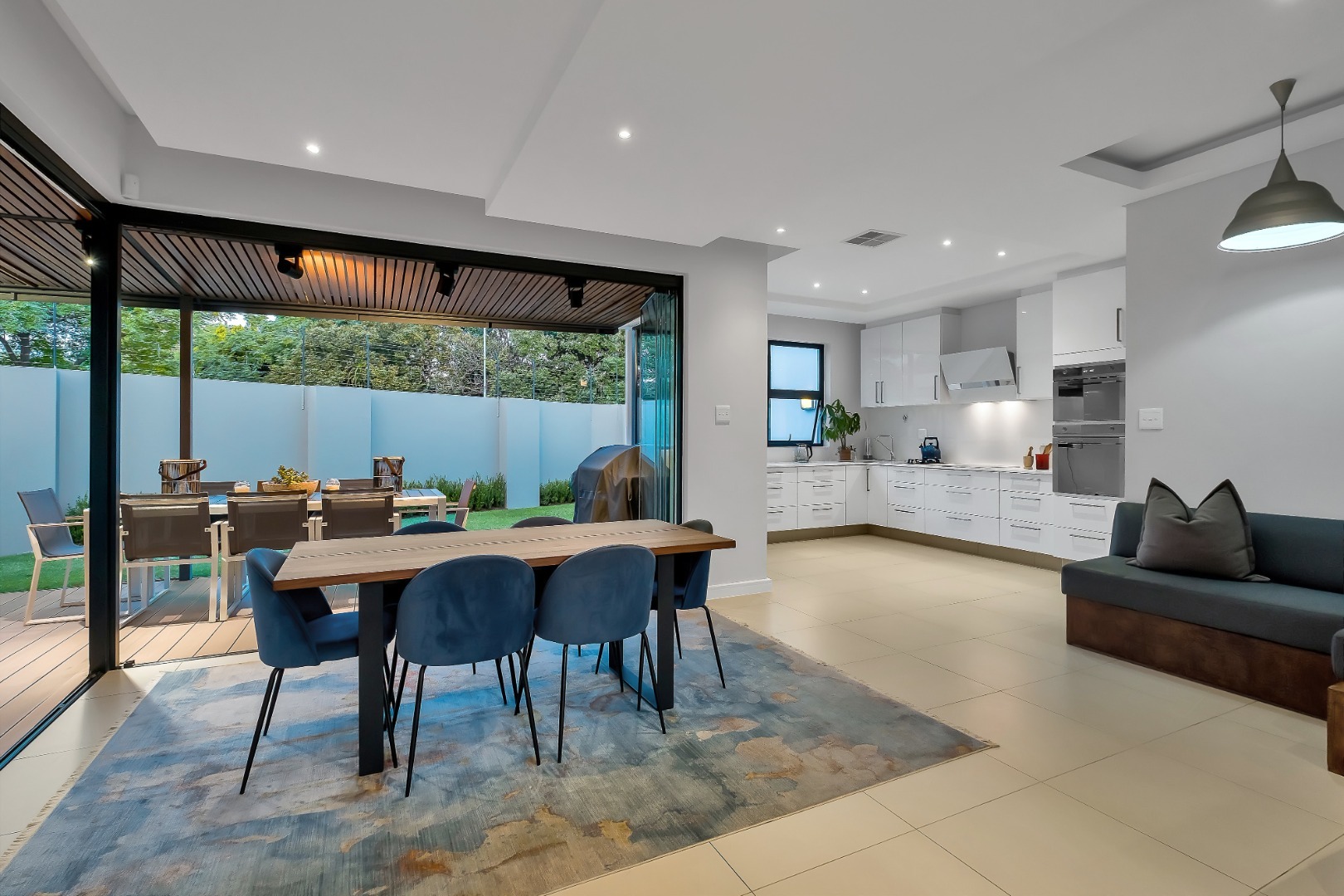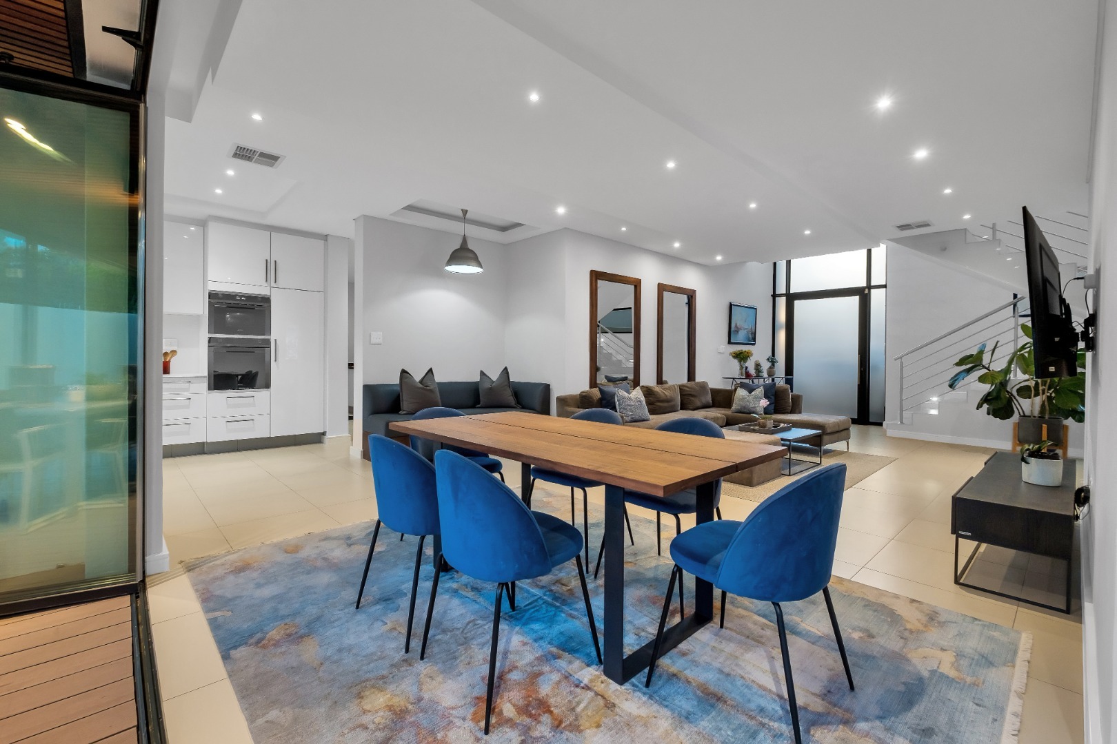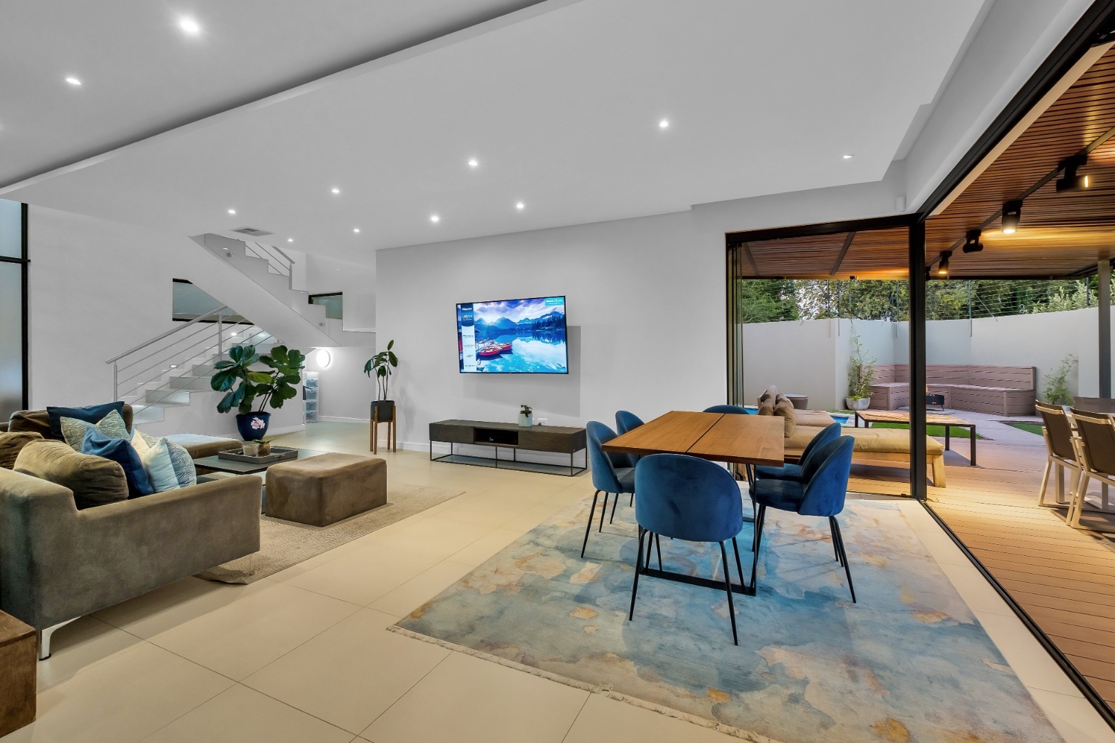 Situated in a small and exclusive complex of only 9 units this family home is the ultimate in luxurious living. Double volume entrance hall, modern design and natural light. Open plan living spaces enhanced by an effortless indoor outdoor flow. Entertainment area opens out onto covered patio and secluded garden.