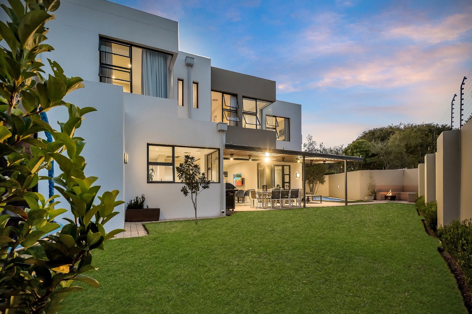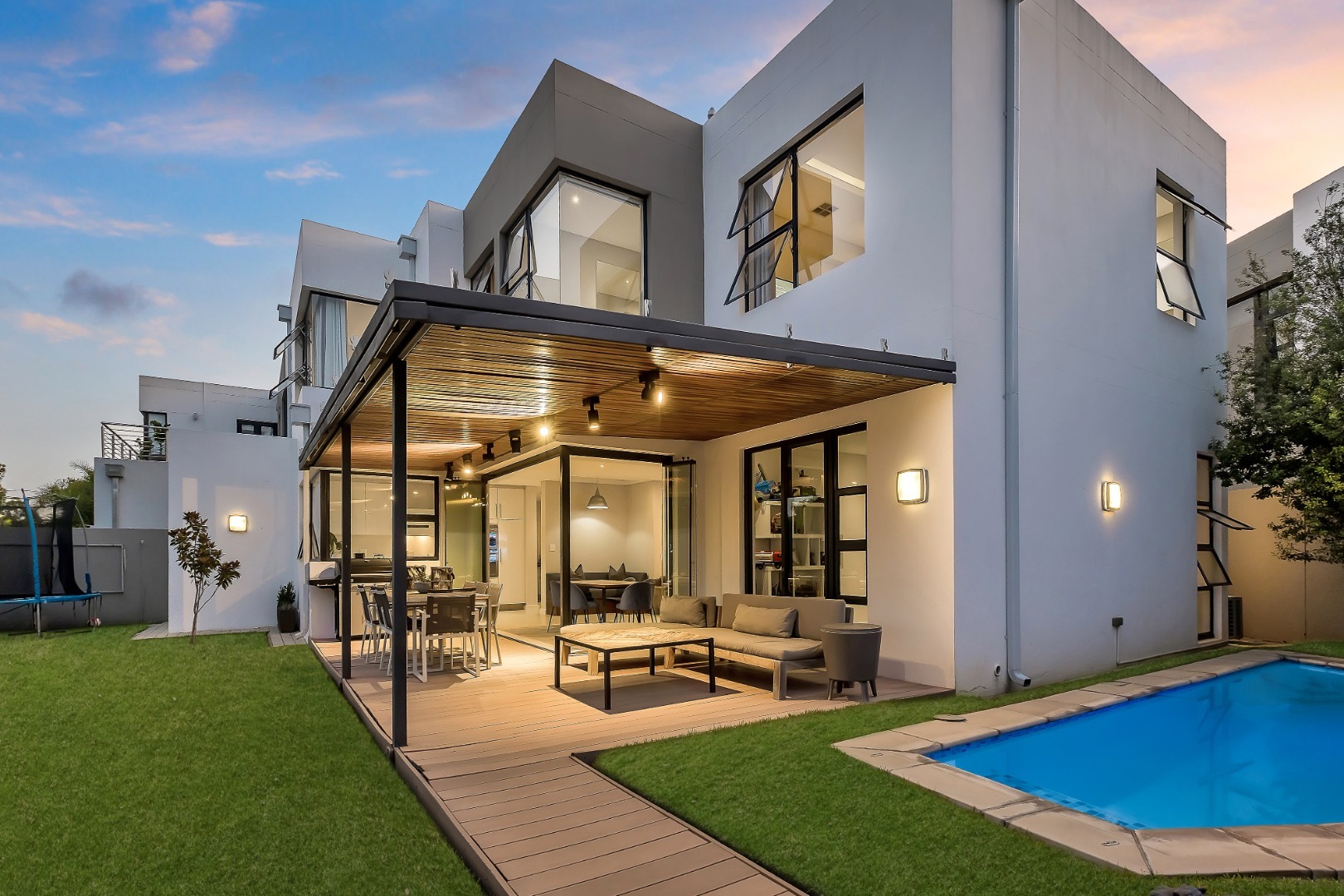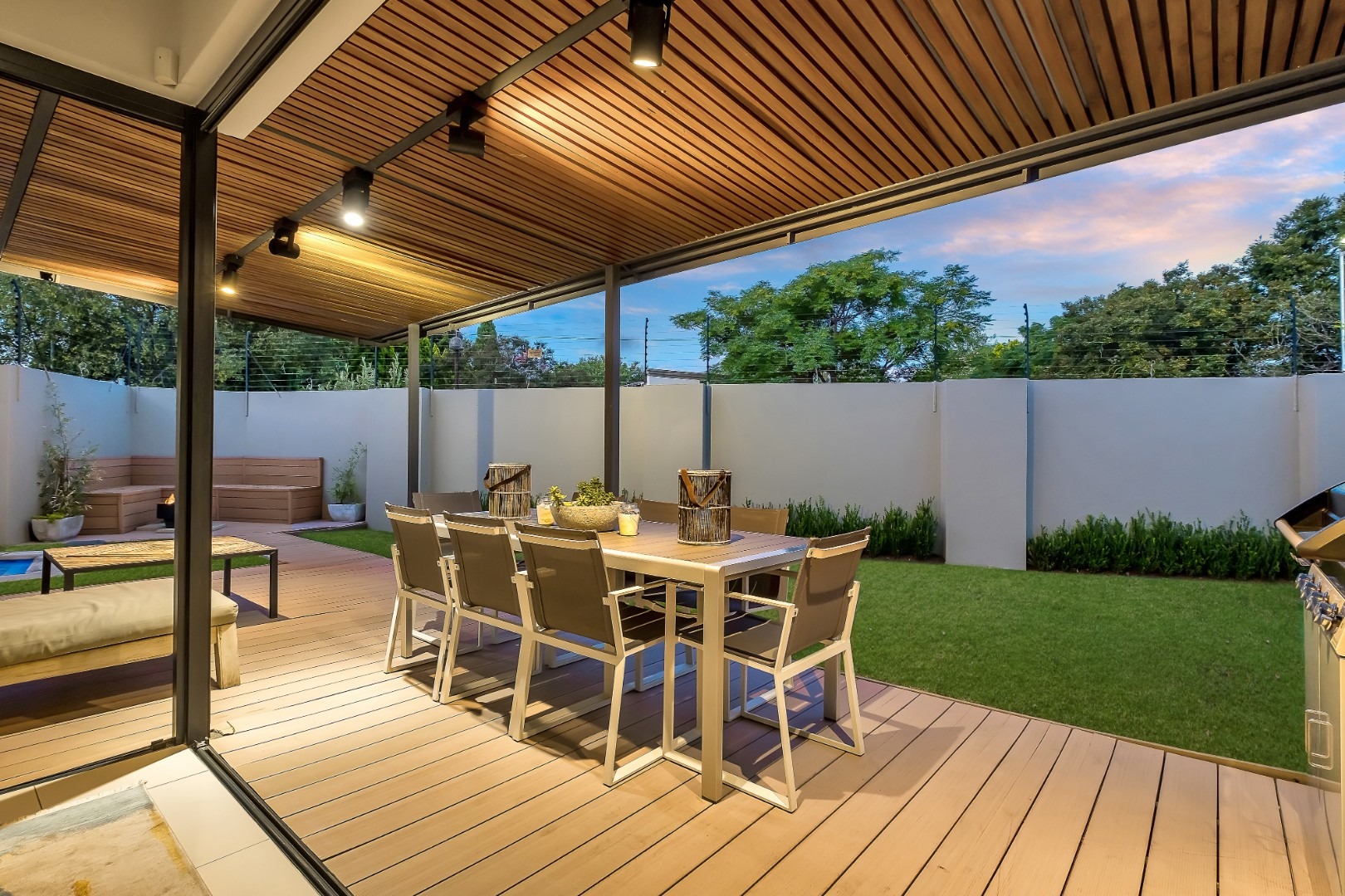 Situated in a small and exclusive complex of only 9 units this family home is the ultimate in luxurious living. Double volume entrance hall, modern design and natural light. Open plan living spaces enhanced by an effortless indoor outdoor flow. Entertainment area opens out onto covered patio and secluded garden.