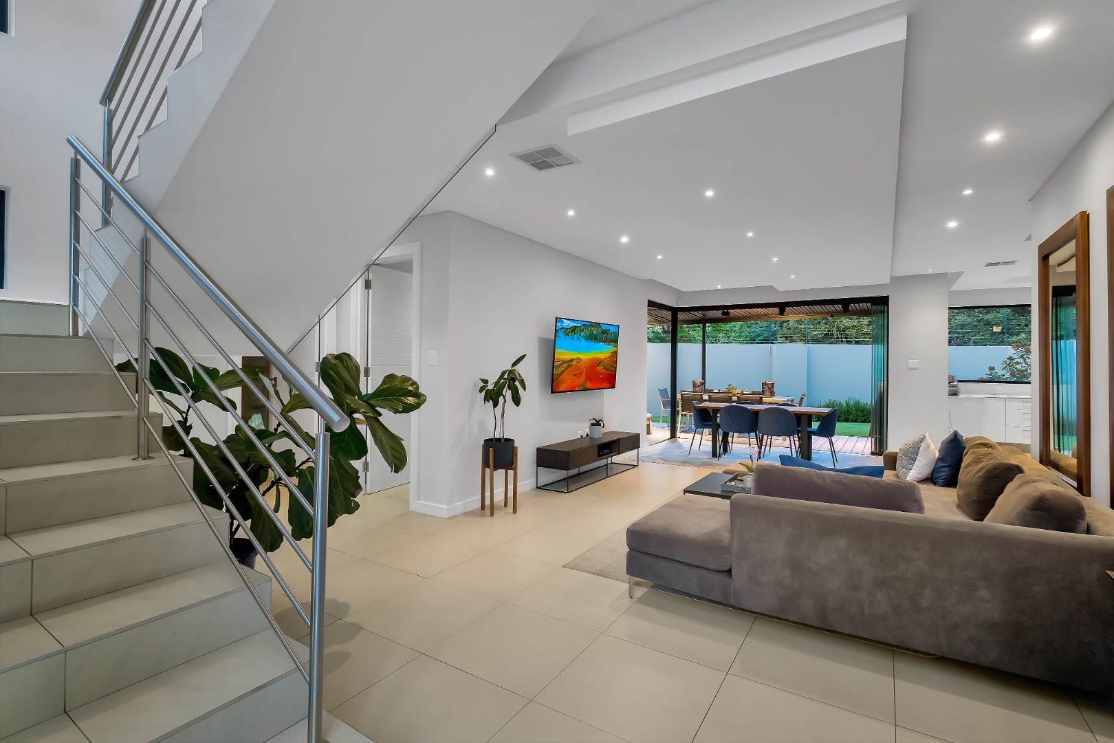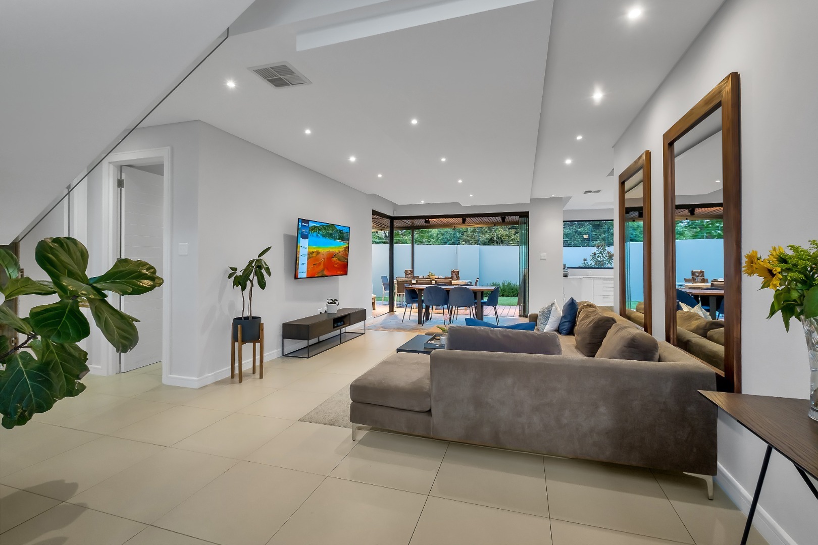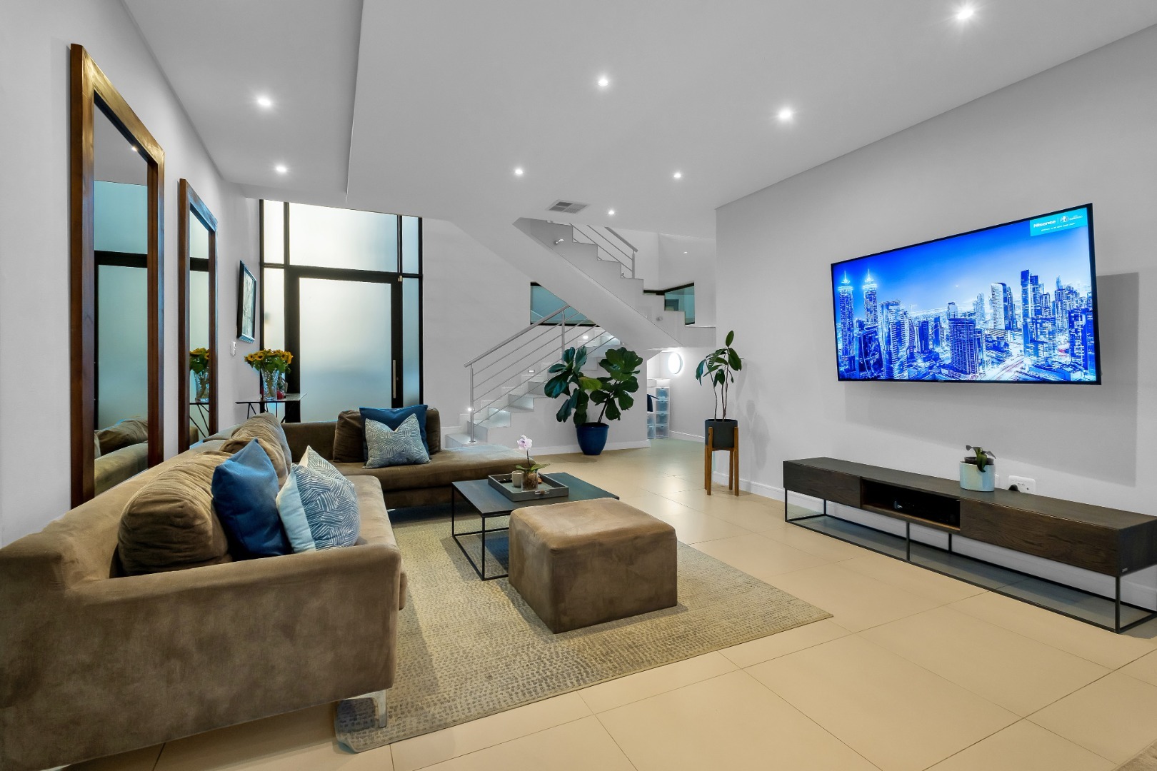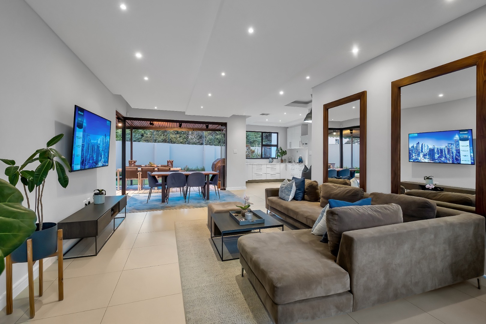Situated in a small and exclusive complex of only 9 units this family home is the ultimate in luxurious living. Double volume entrance hall, modern design and natural light. Open plan living spaces enhanced by an effortless indoor outdoor flow. Entertainment area opens out onto covered patio and secluded garden.