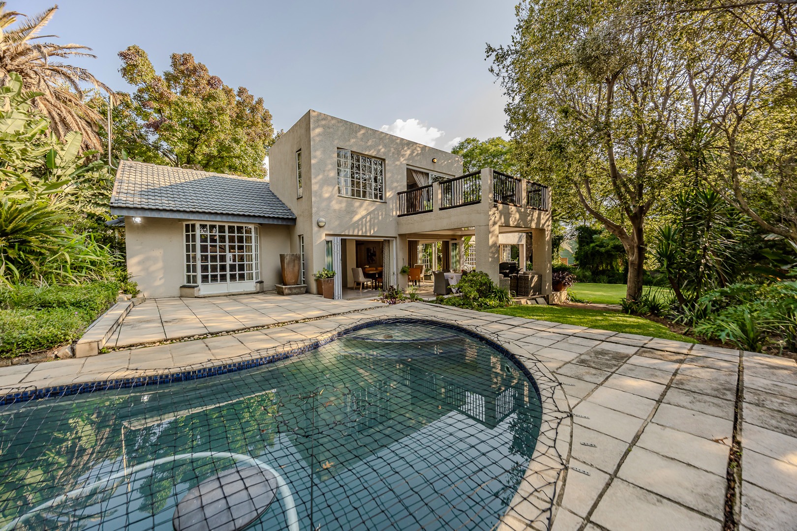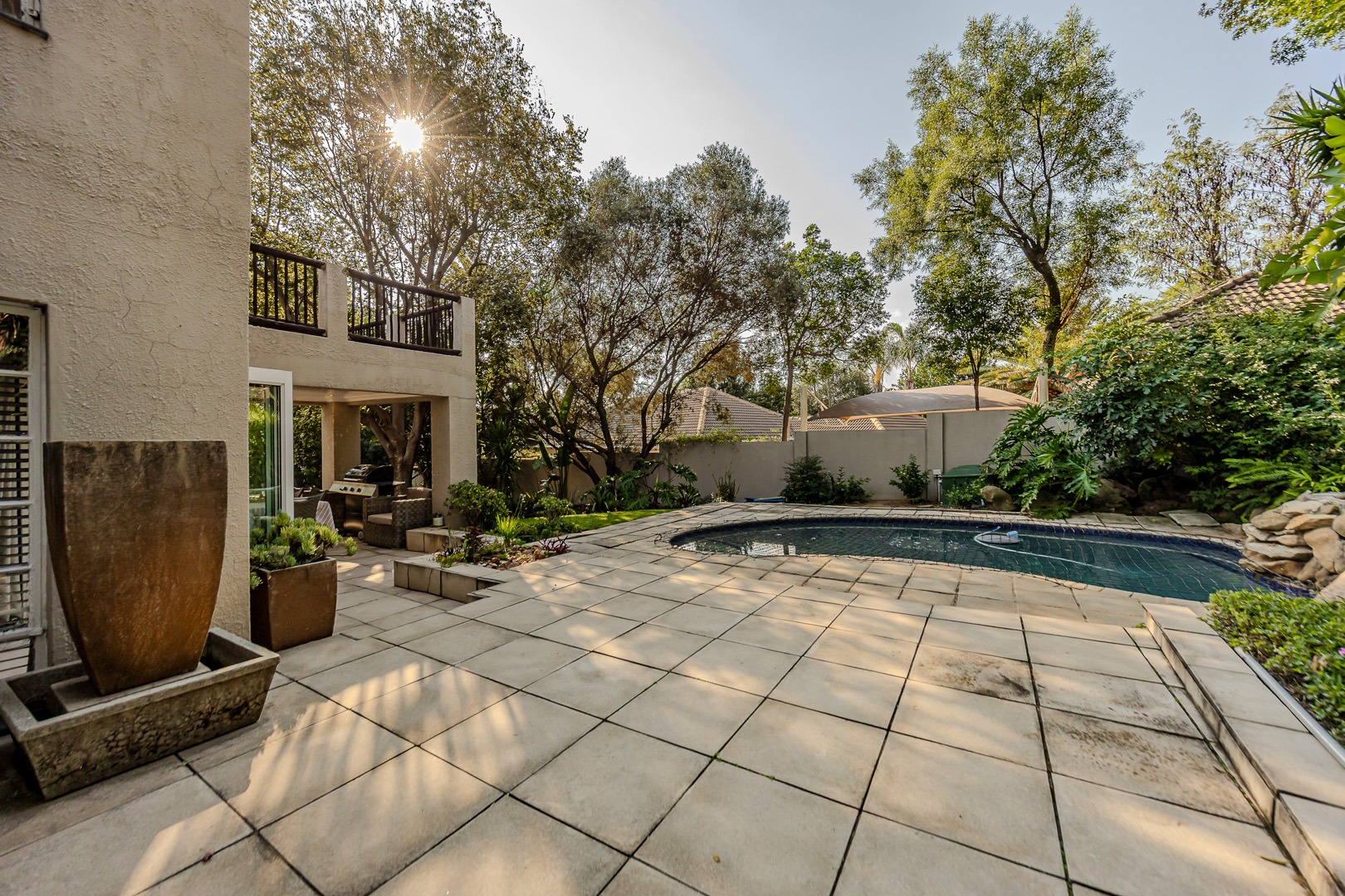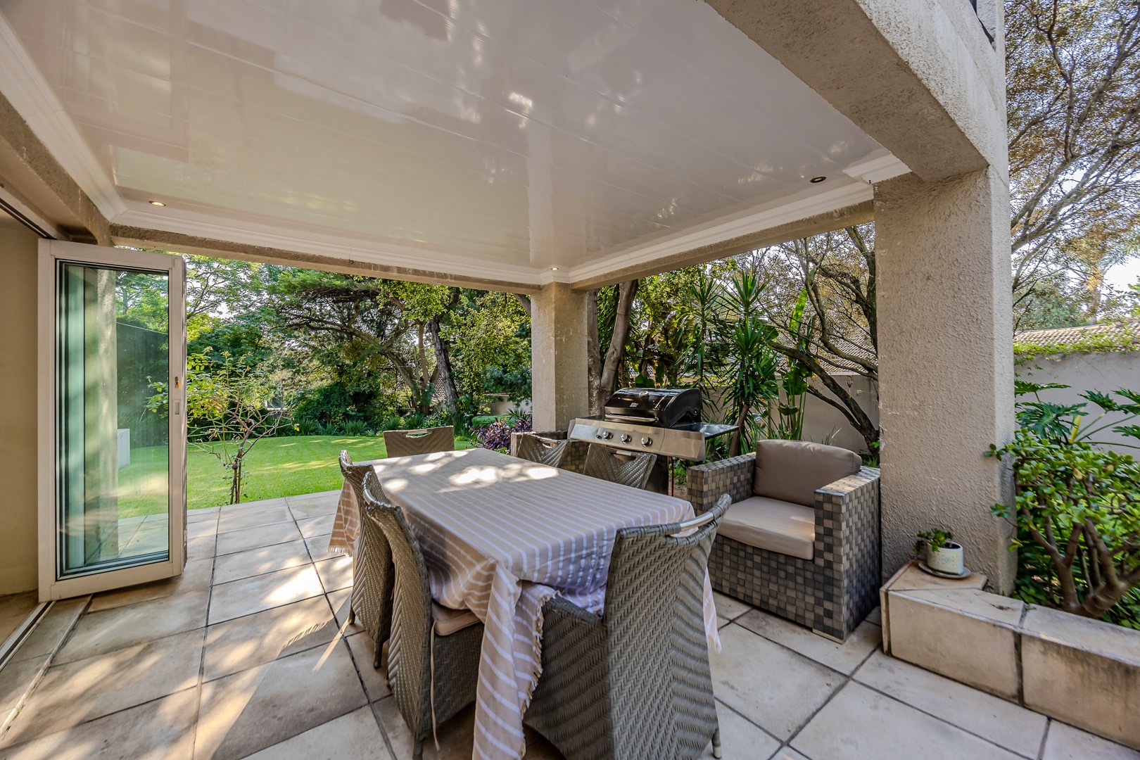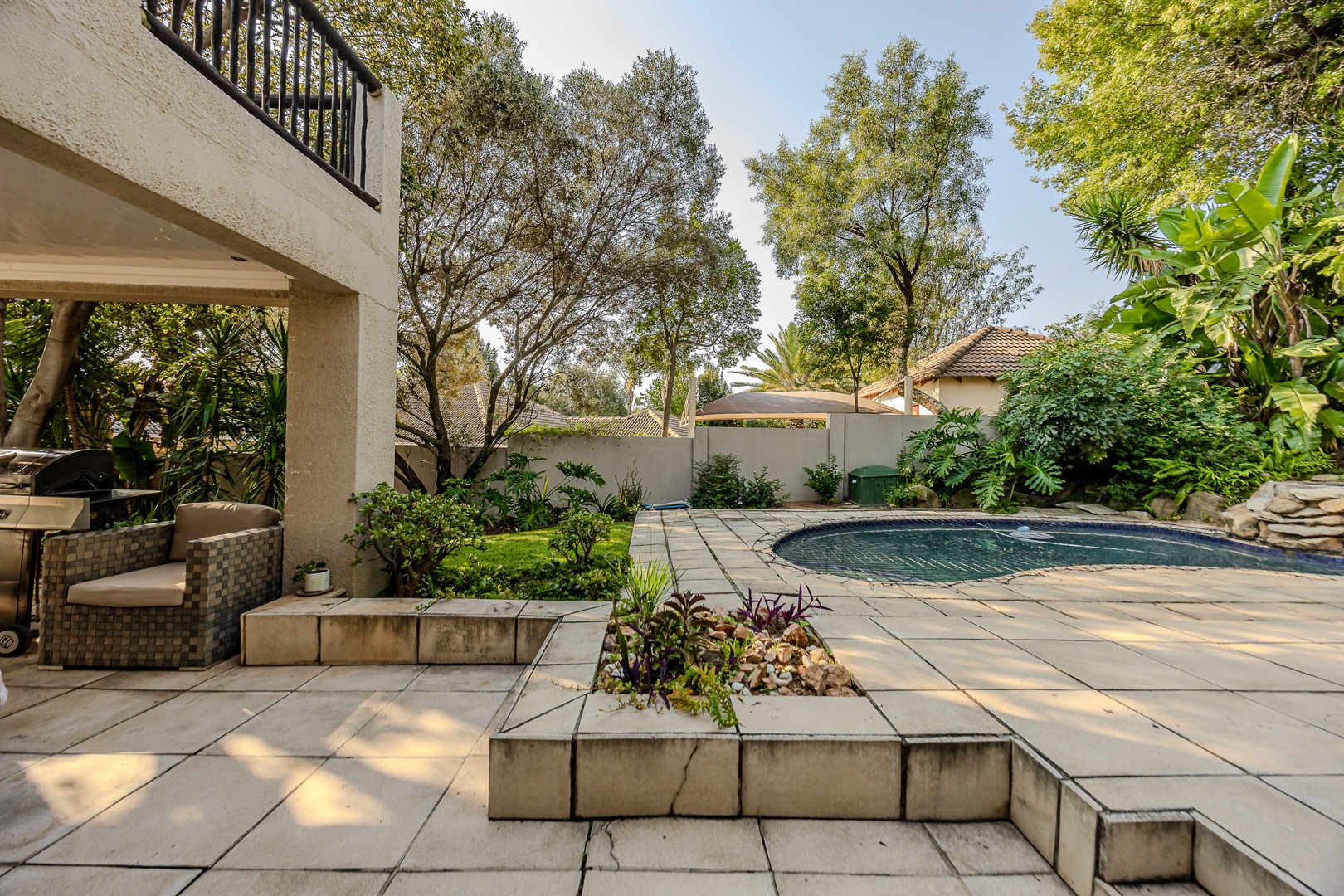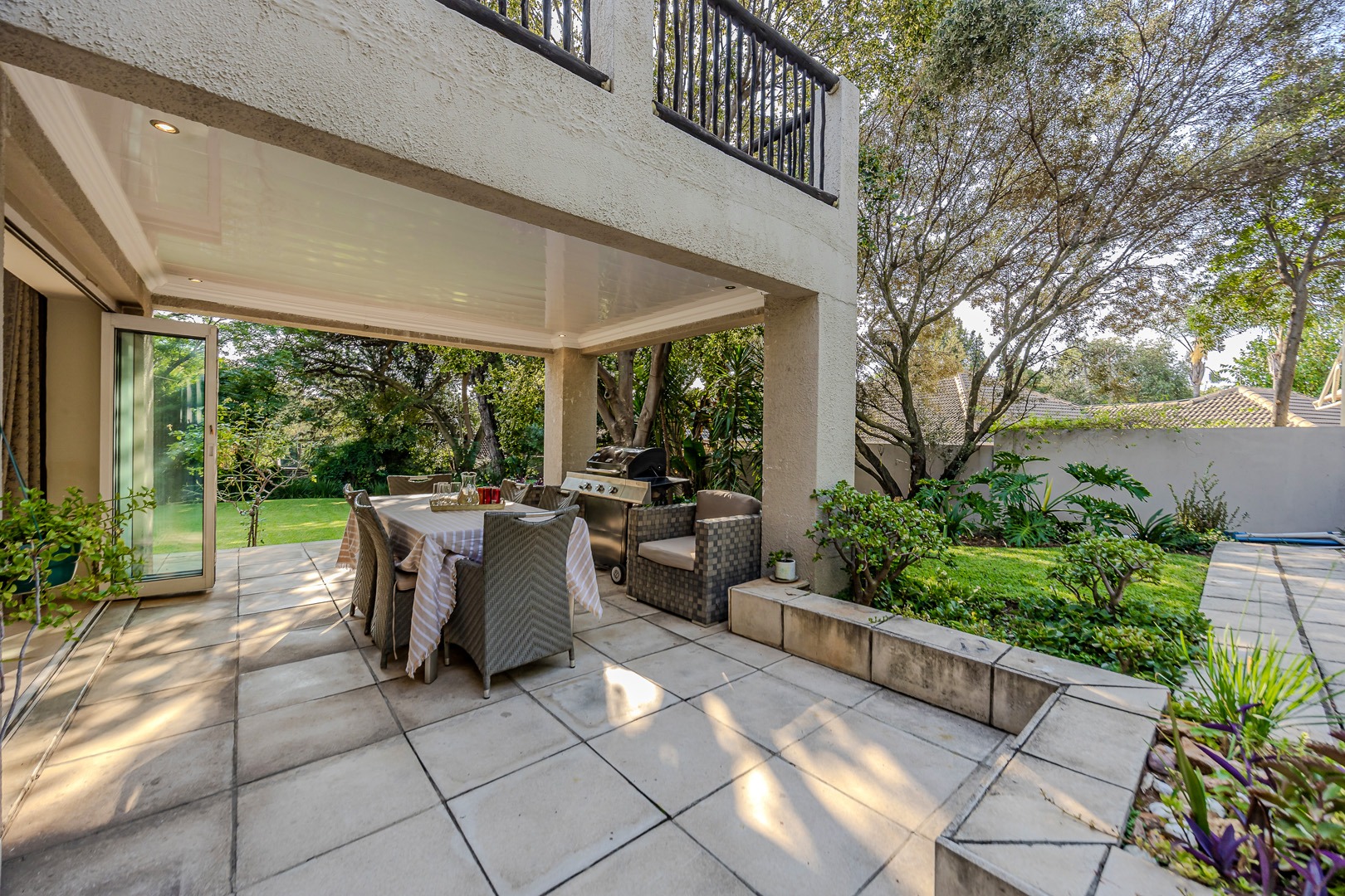 A separate flatlet above the garage offers a studio apartment with bathroom, kitchenette and covered terrace, perfect for grownup children or as a work from home.