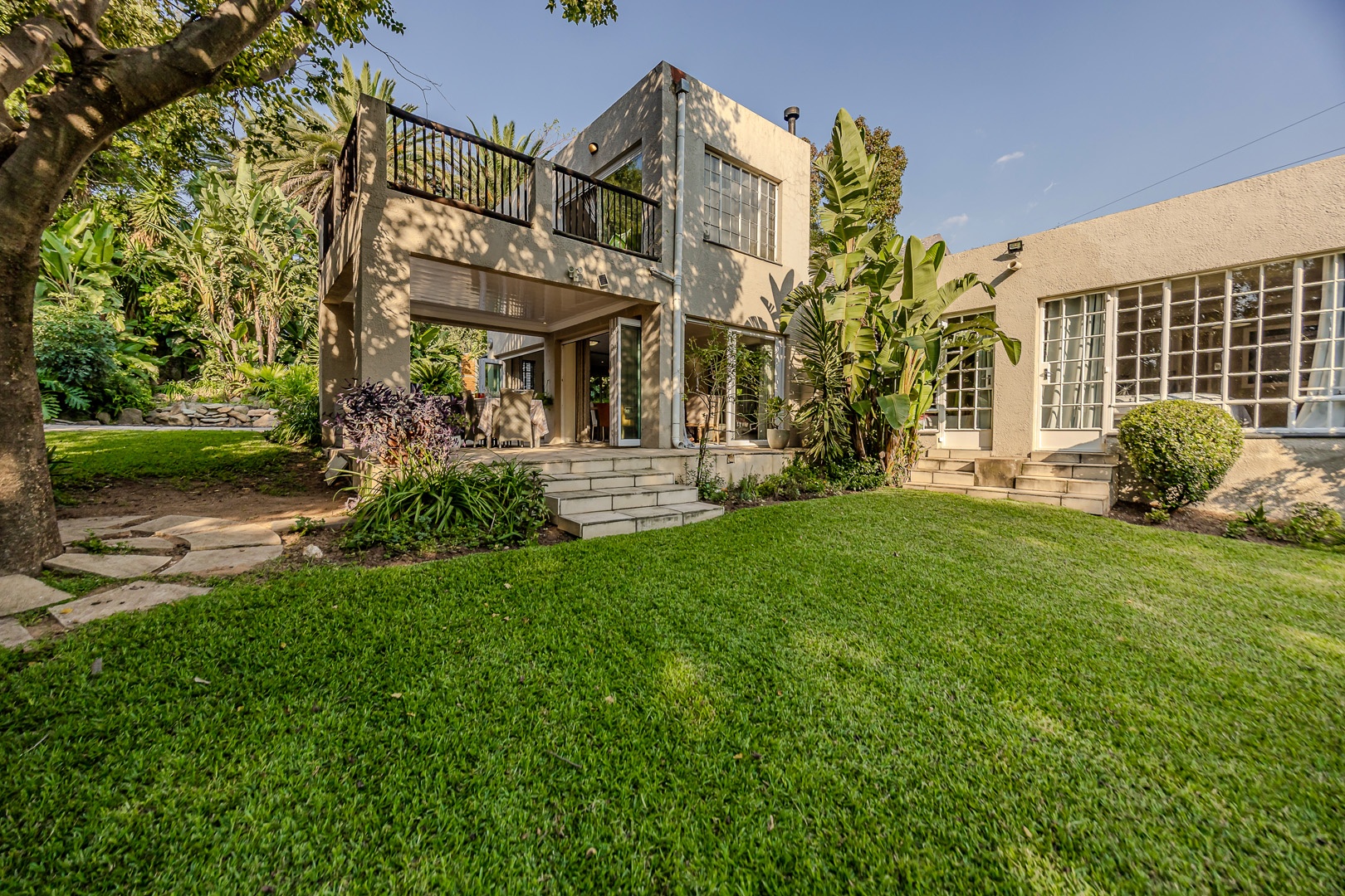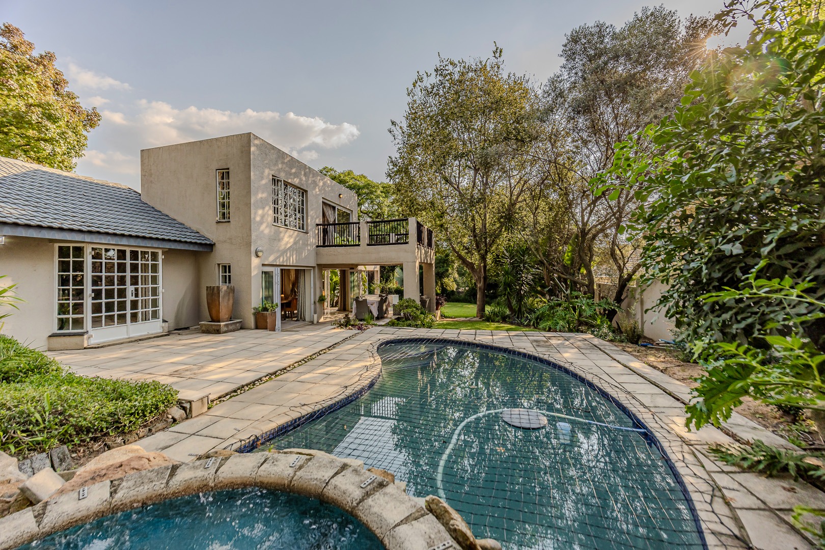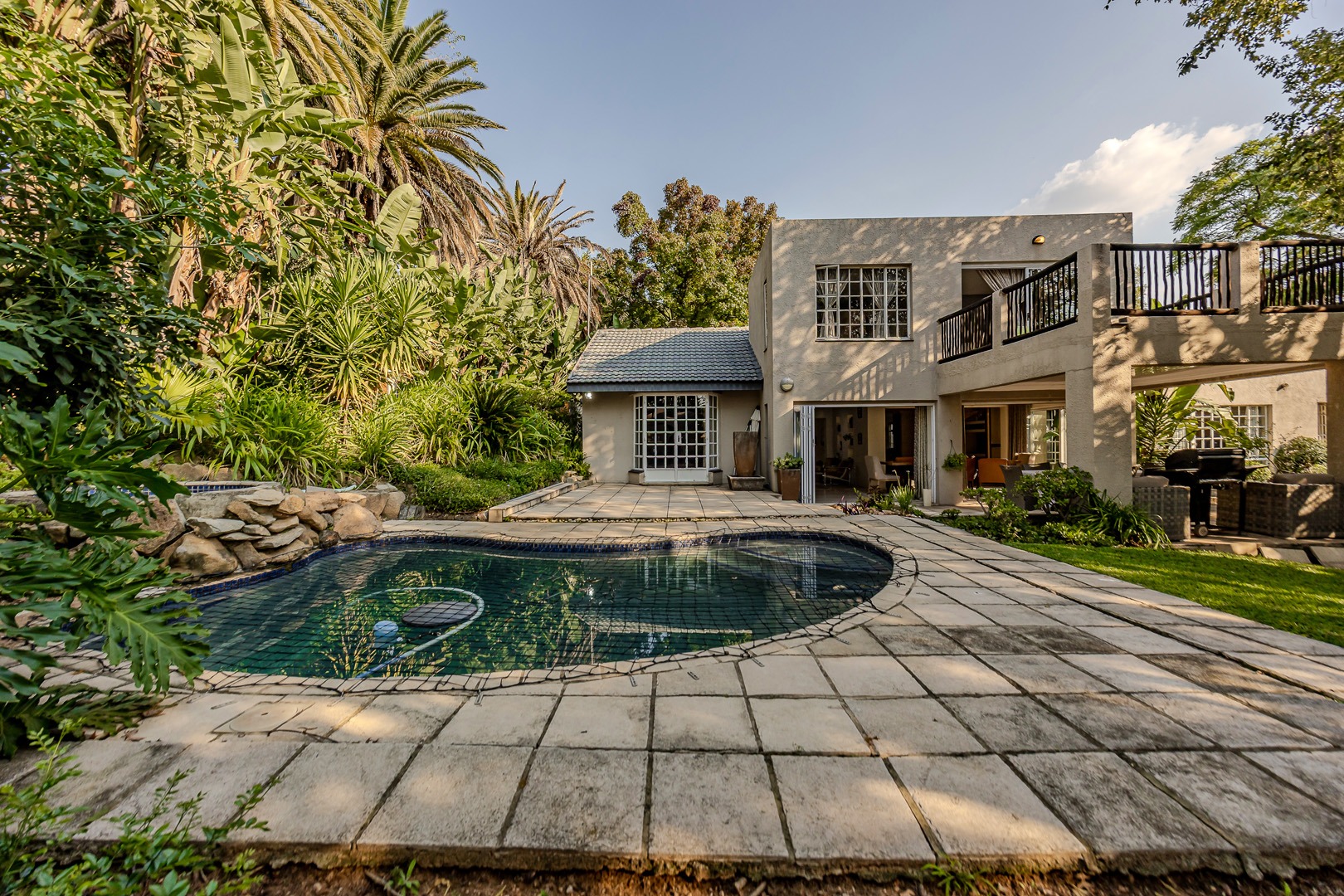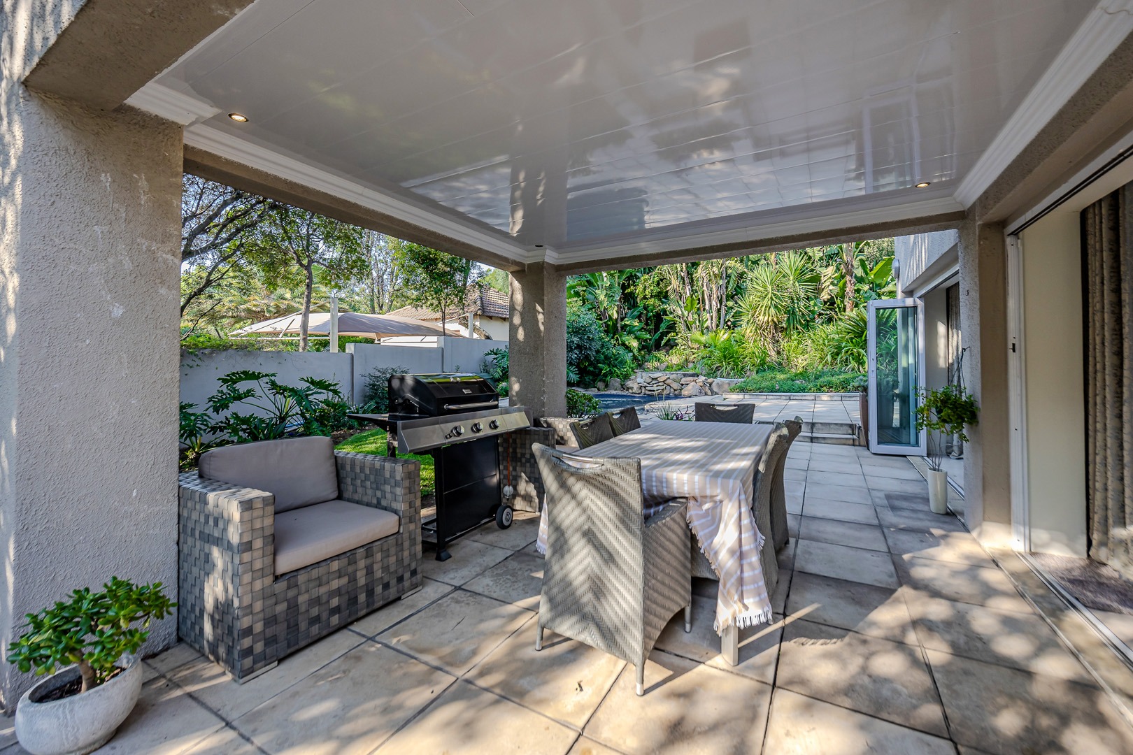 A separate flatlet above the garage offers a studio apartment with bathroom, kitchenette and covered terrace, perfect for grownup children or as a work from home.