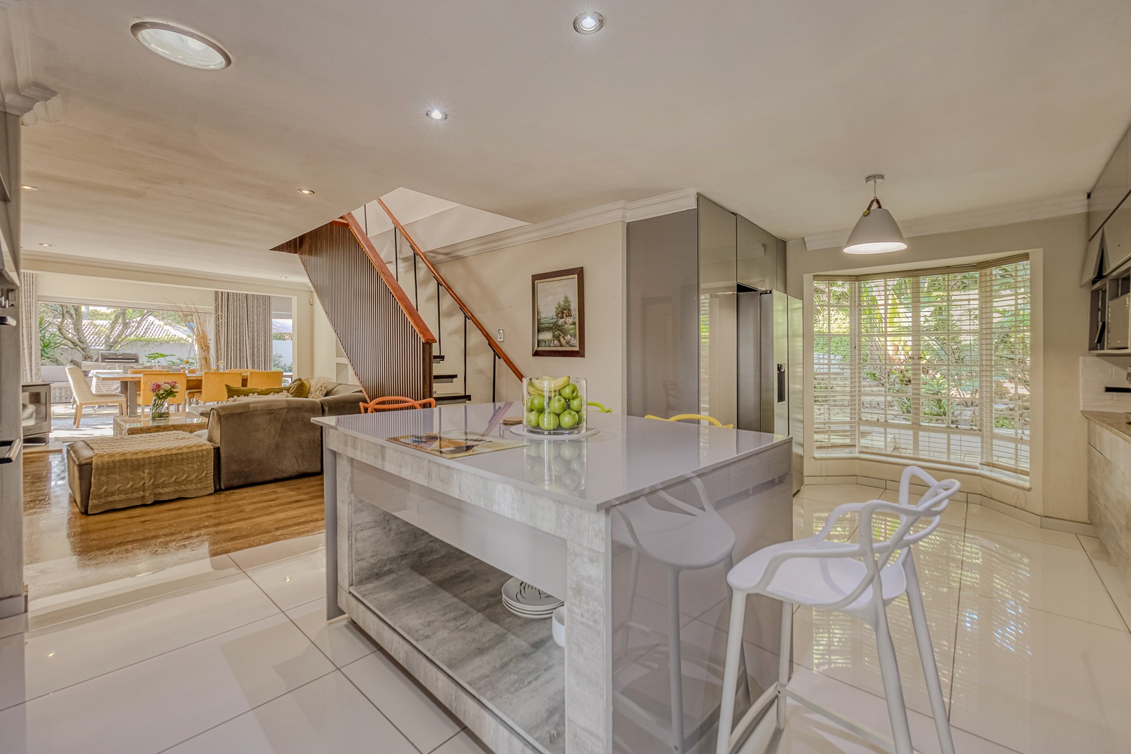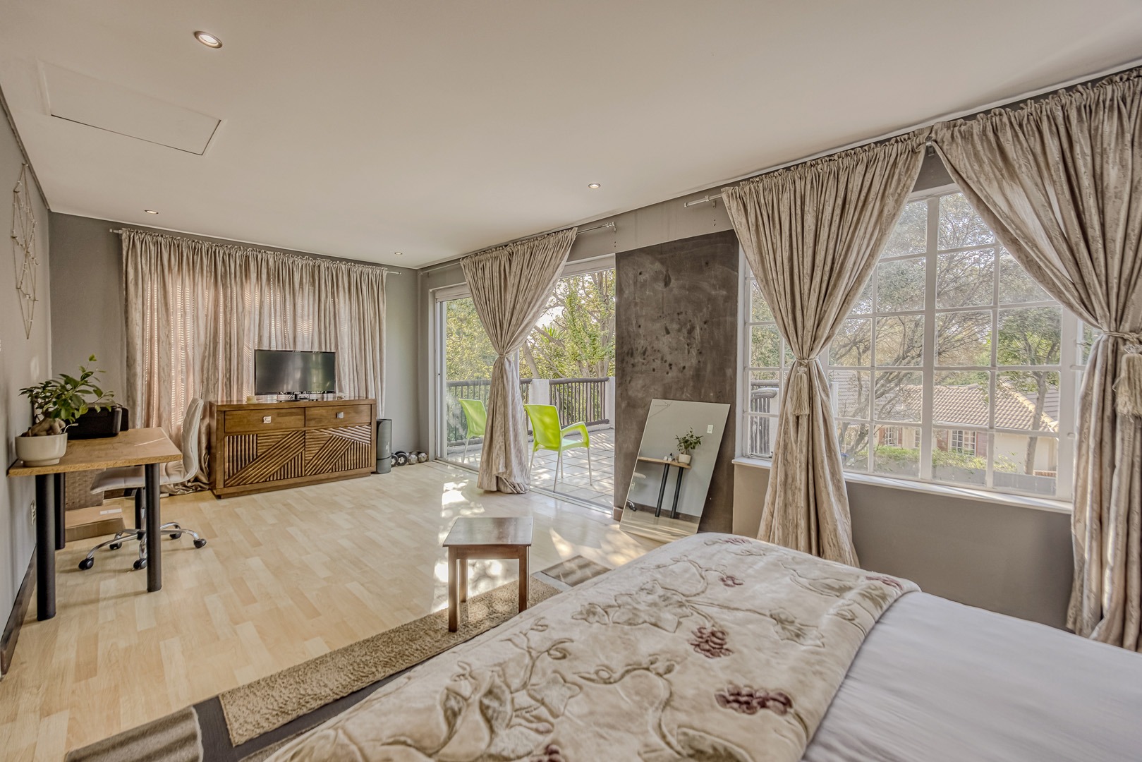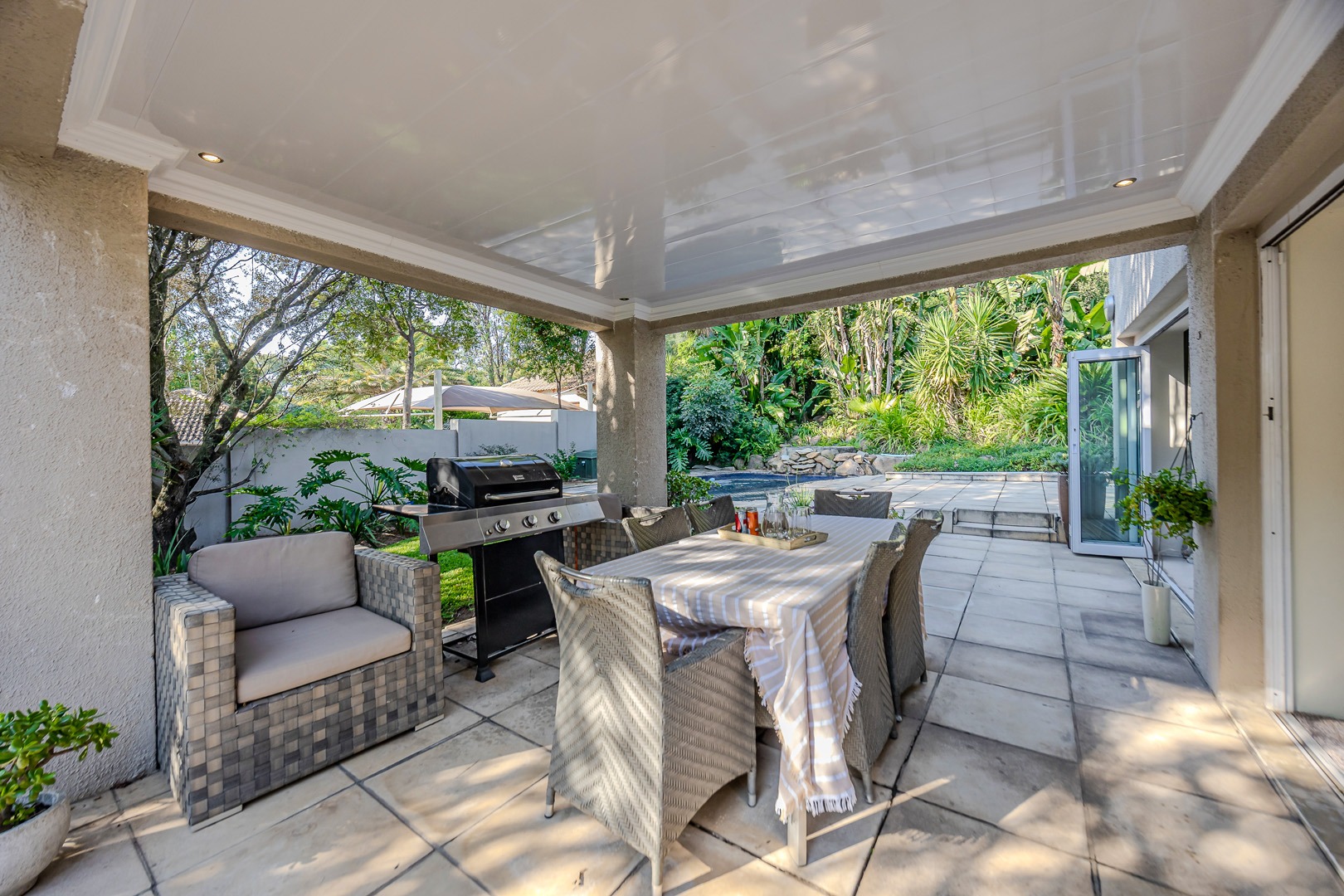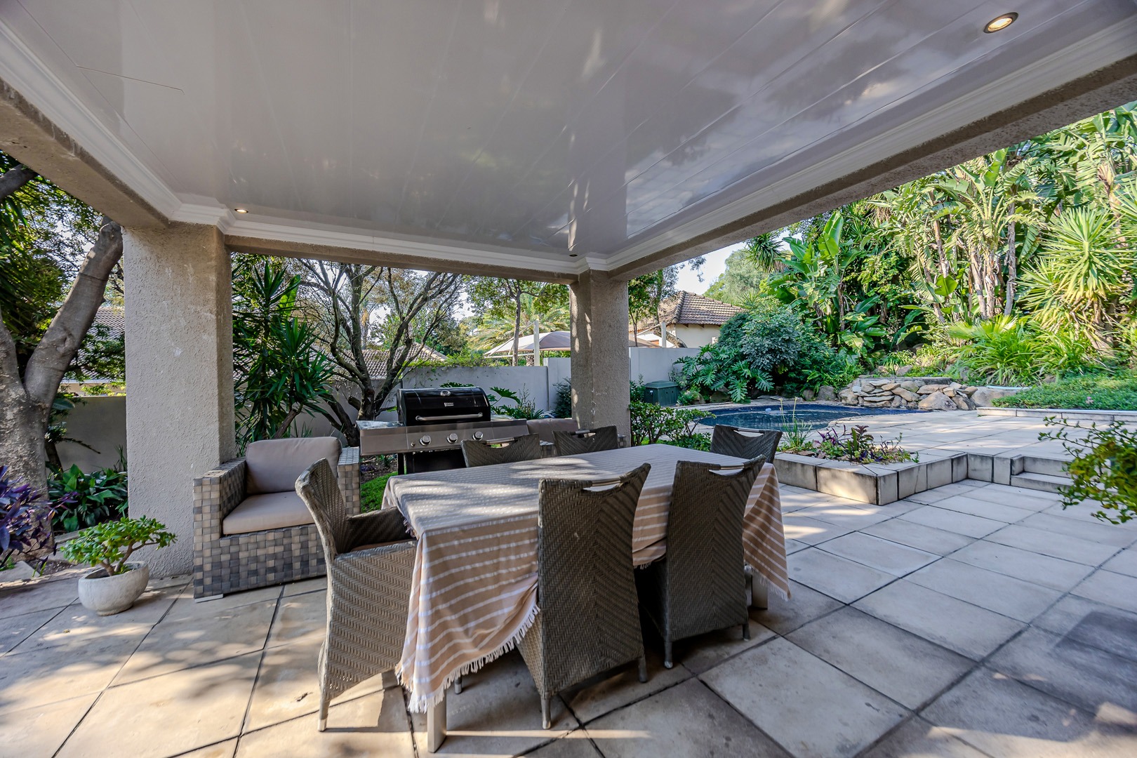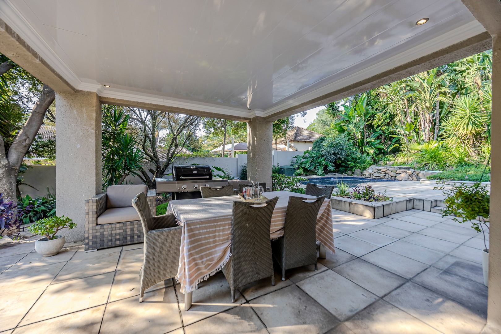 A separate flatlet above the garage offers a studio apartment with bathroom, kitchenette and covered terrace, perfect for grownup children or as a work from home.