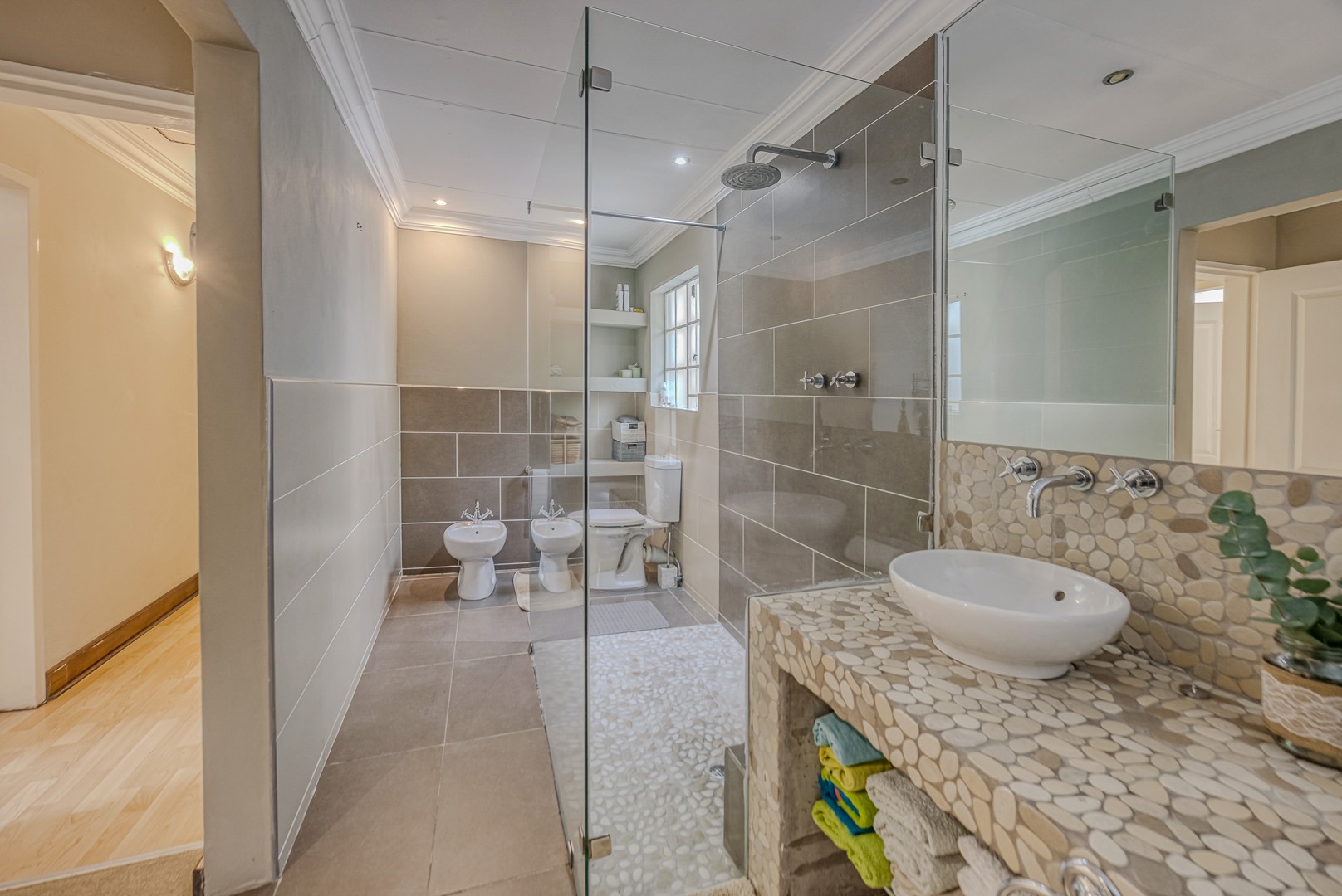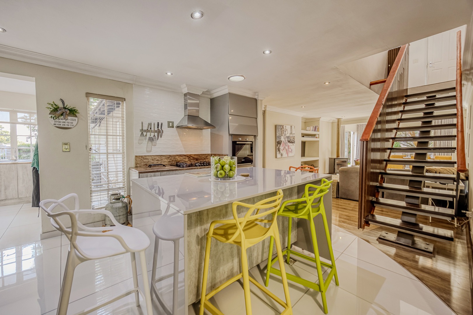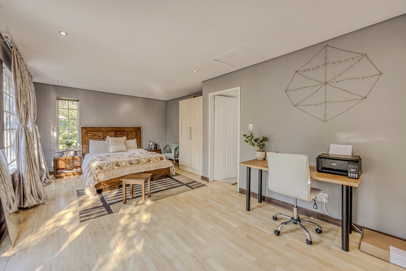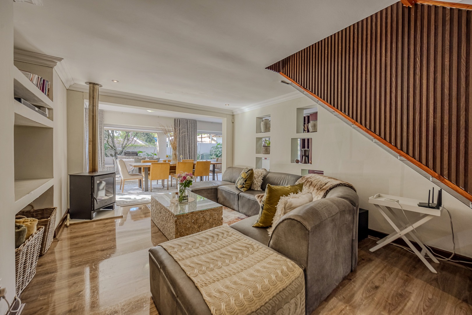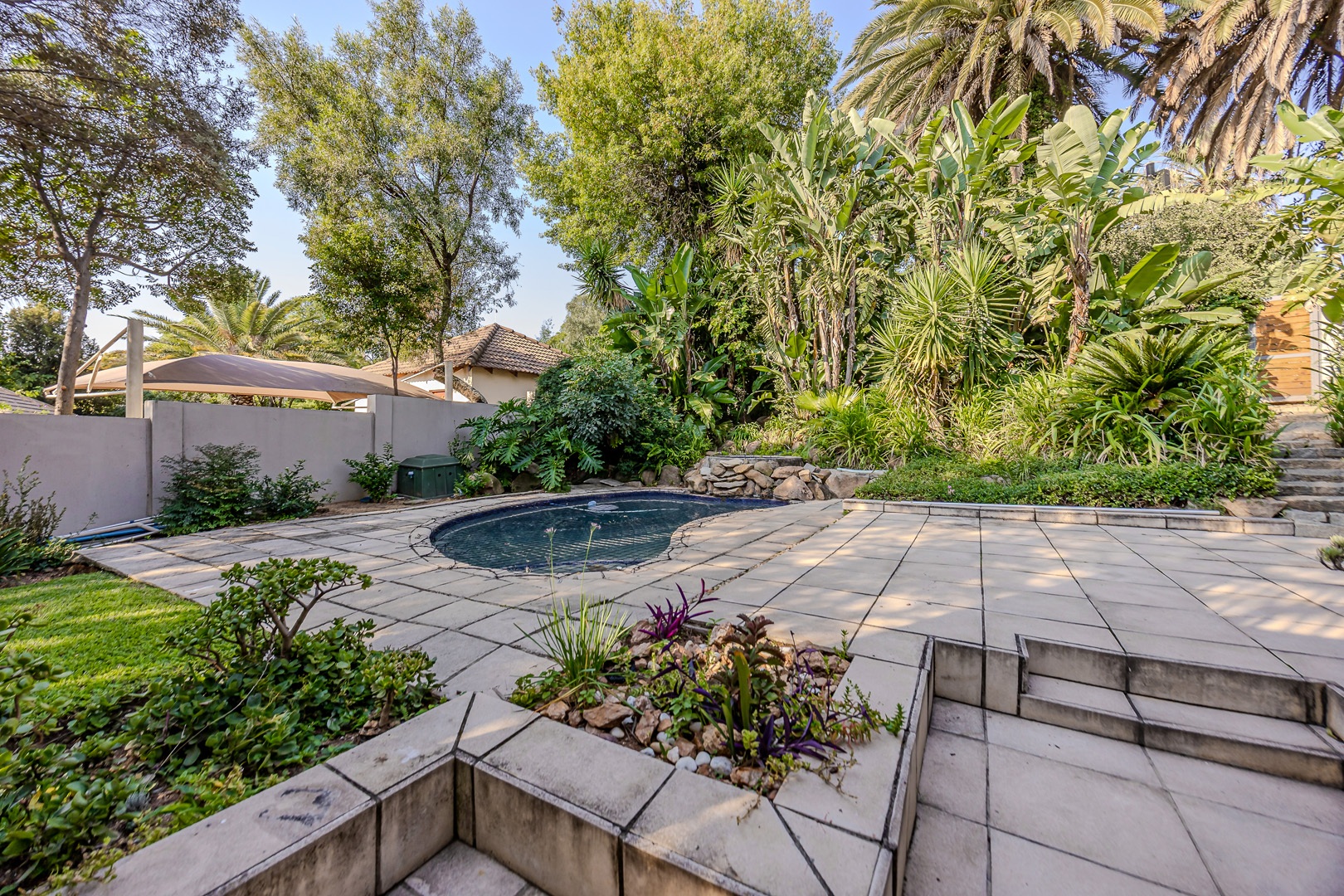 A separate flatlet above the garage offers a studio apartment with bathroom, kitchenette and covered terrace, perfect for grownup children or as a work from home.