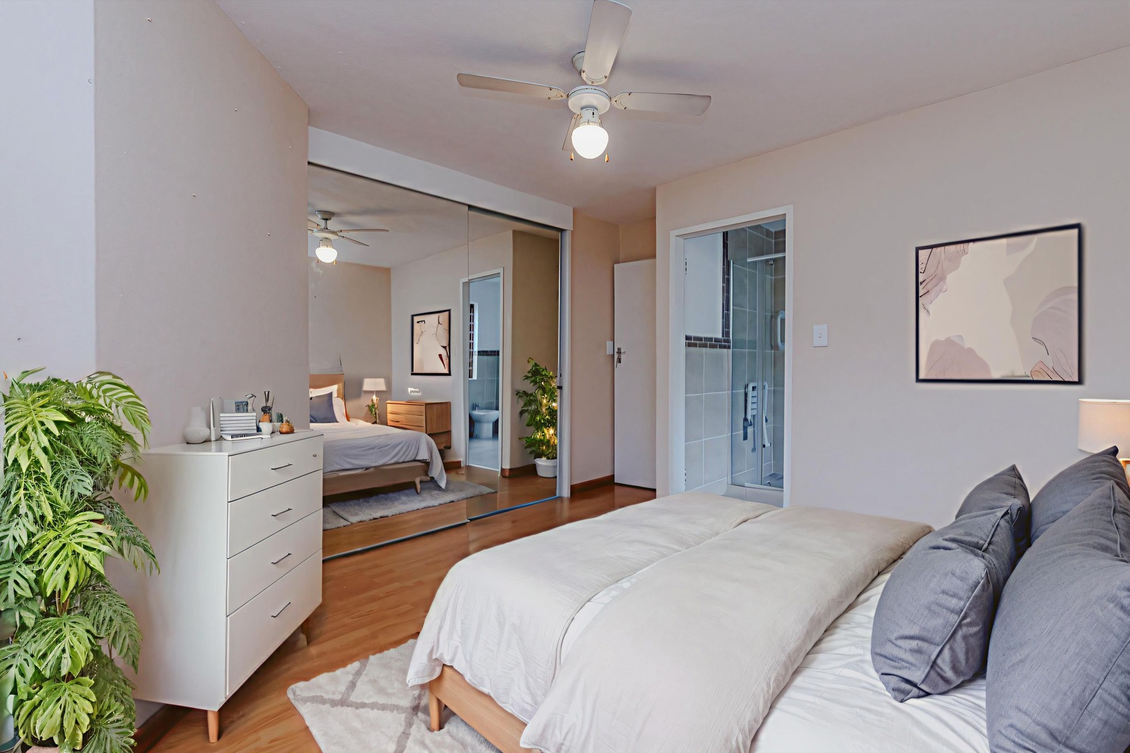 - 2 spacious bedrooms with built-in cupboards and excellent natural light
