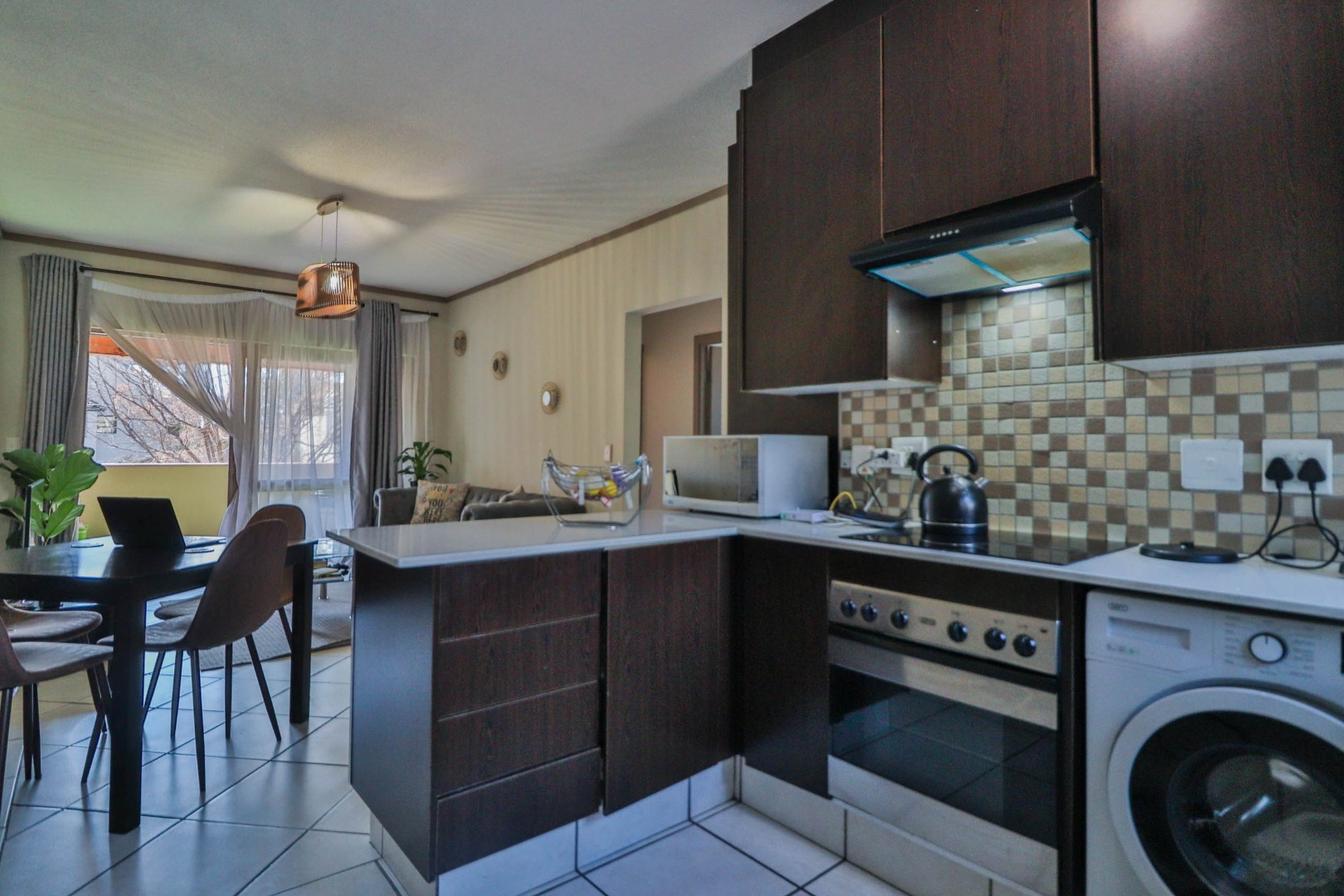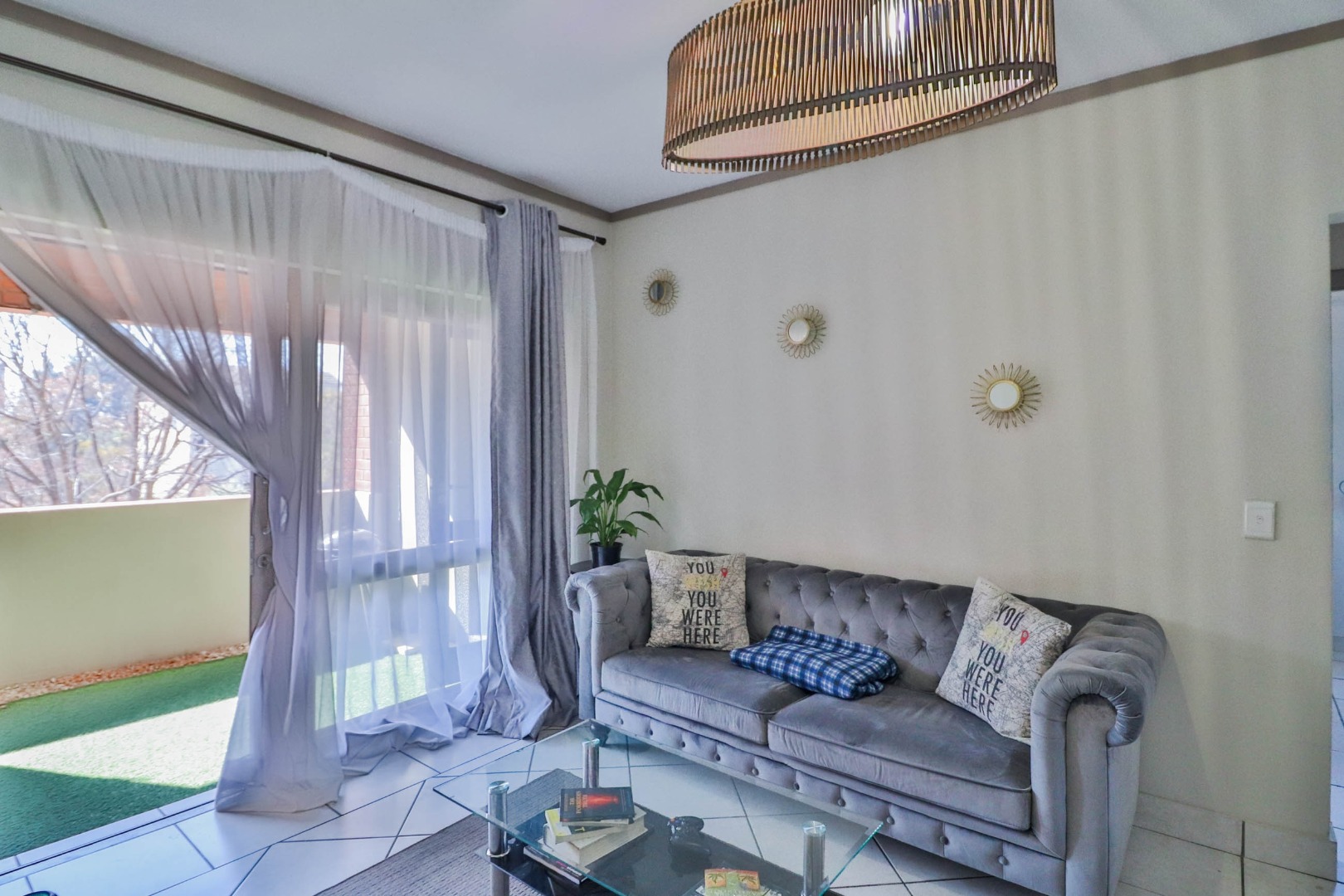 The expansive living area exudes a sense of space and comfort, accentuated by a sliding door that seamlessly opens onto a captivating balcony. This outdoor haven is beautifully tiled and adorned with artificial grass, offering an ideal blend of sophistication and nature. Indulge in the elegance of a fully modern family bathroom, complete with a shower and a bathtub, tailored to meet the demands of contemporary living. Strategically positioned off Witkoppen Road, this Estate provides effortless access to major highways such as the M1 and N1. This connectivity links you to key areas including Central Johannesburg, Pretoria, OR Tambo Airport, and numerous other surrounding locations. Within proximity lie esteemed private and public schools like St. Peters Girls and Boys. Abundant shopping complexes, replete with a diverse selection of restaurants and entertainment options, cater to your leisure needs. With one covered parking space and ample visitor parking, practicality is at the forefront. The Estate extends a warm welcome to pets, subject to approval by the body corporate.