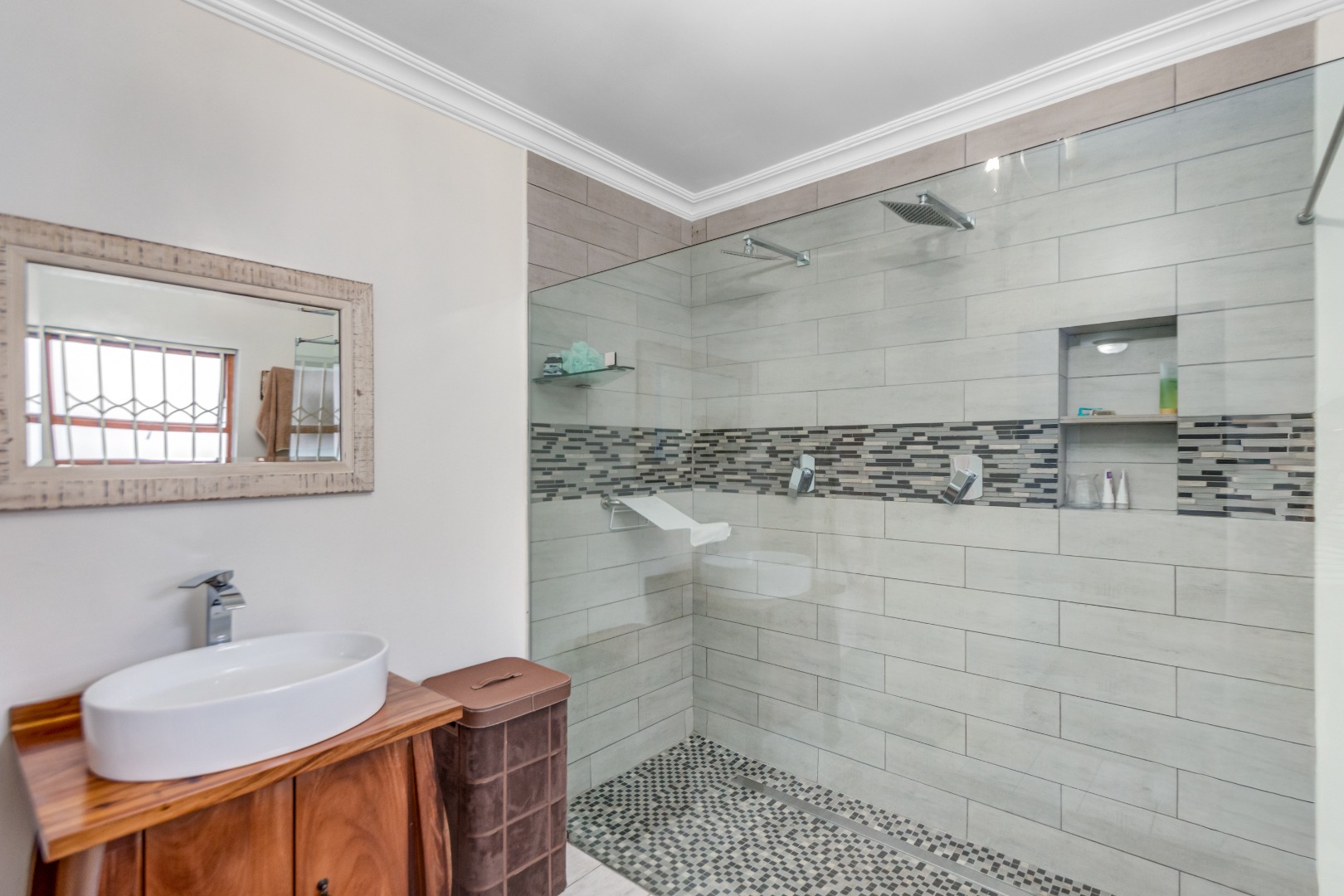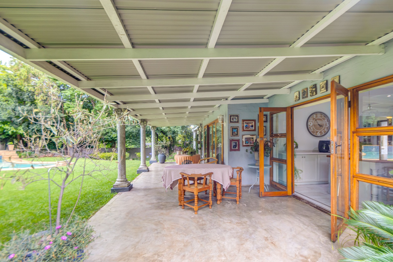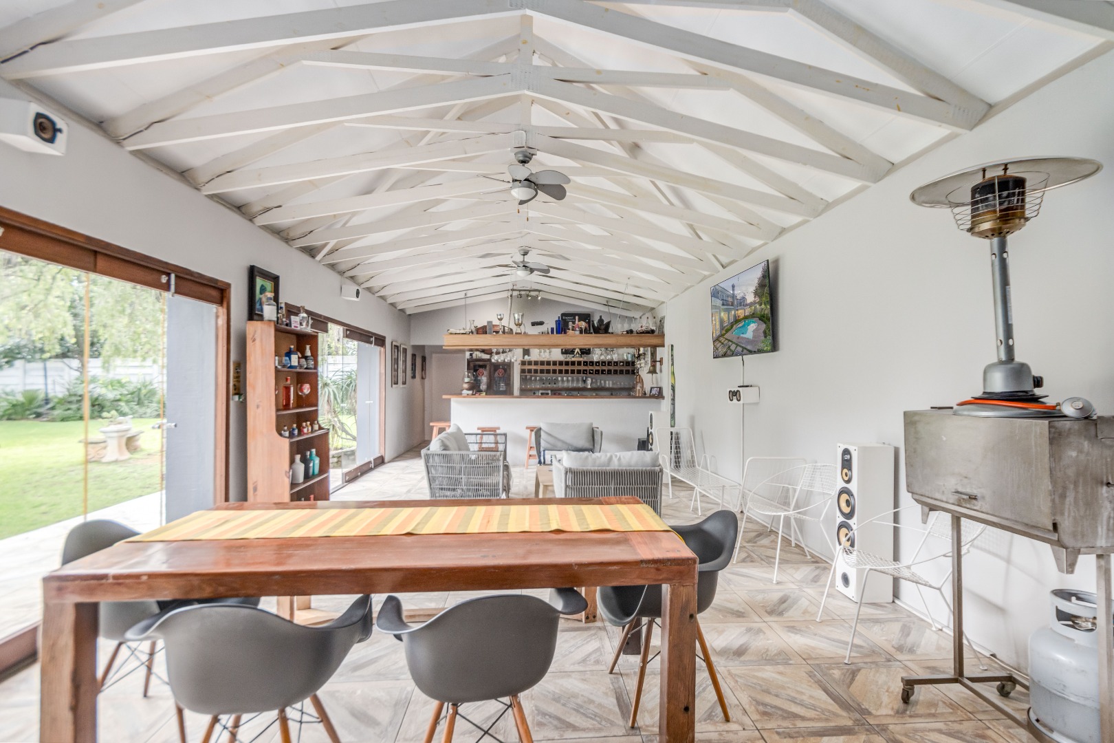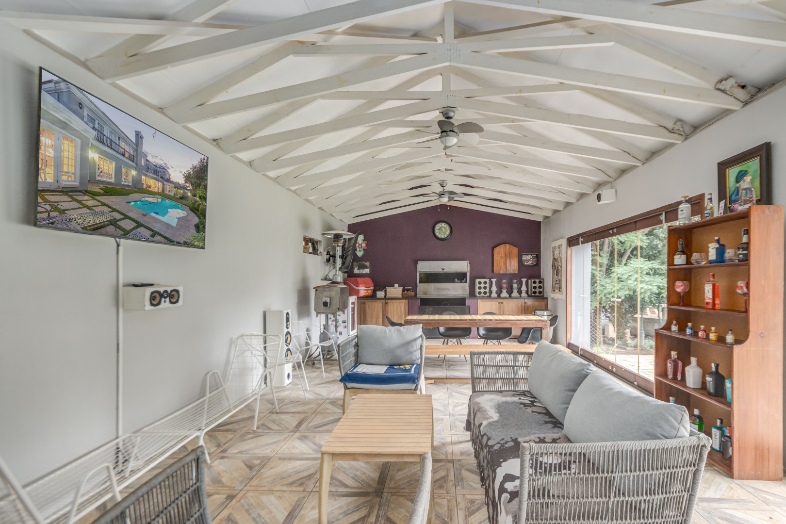 A standout feature is the impressive separate poolside entertainment pavilion, designed for the enthusiastic entertainer. This versatile structure includes glass stack doors, exposed trusses, a built-in braai and bar area, a separate bathroom, and room that can be used in various ways. Just beyond this pavilion, a beautifully designed firepit boma awaits — complete with a convenient gas braai — making it perfect for hosting unforgettable gatherings under the stars. This entire structure also offers excellent flexibility and can easily be repurposed as a cottage if needed.