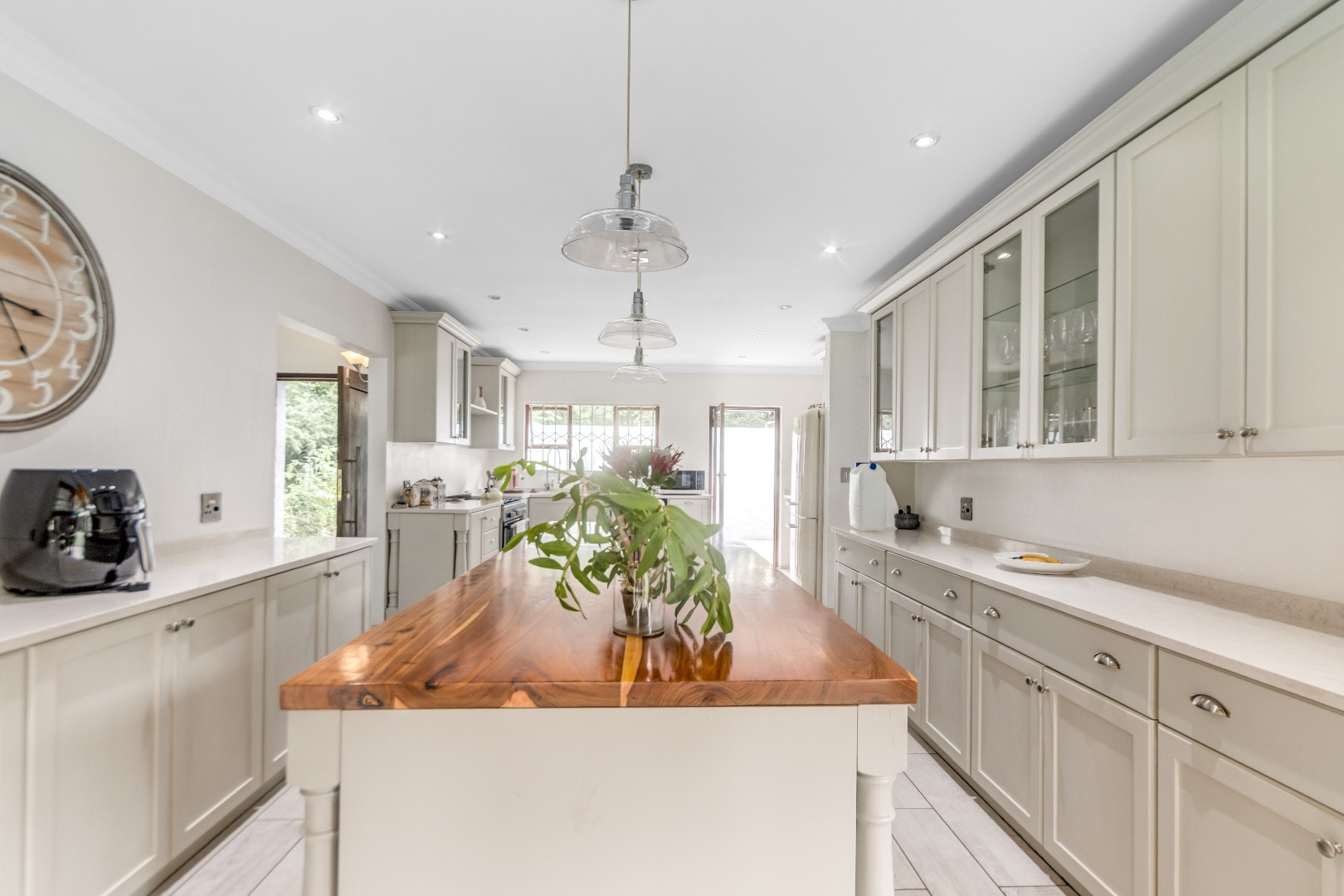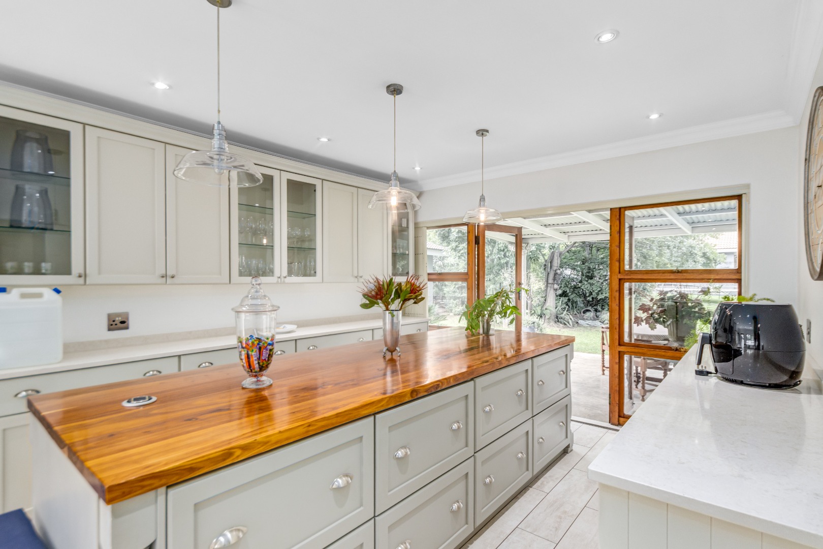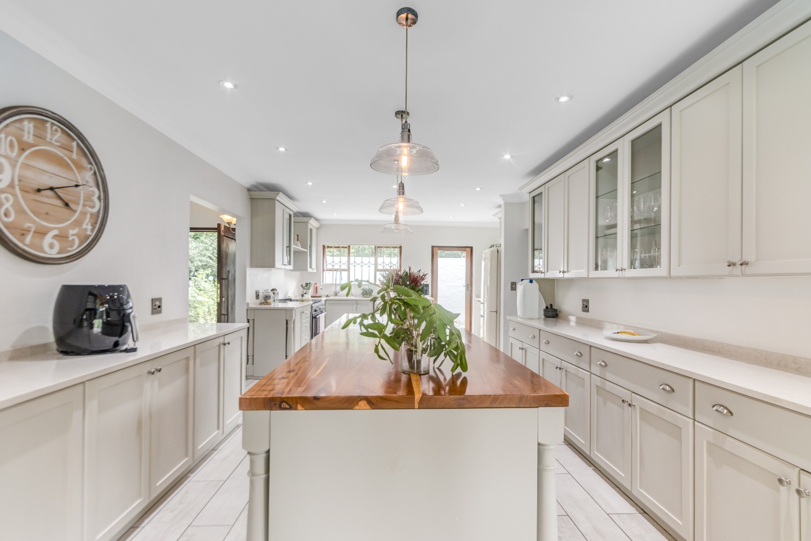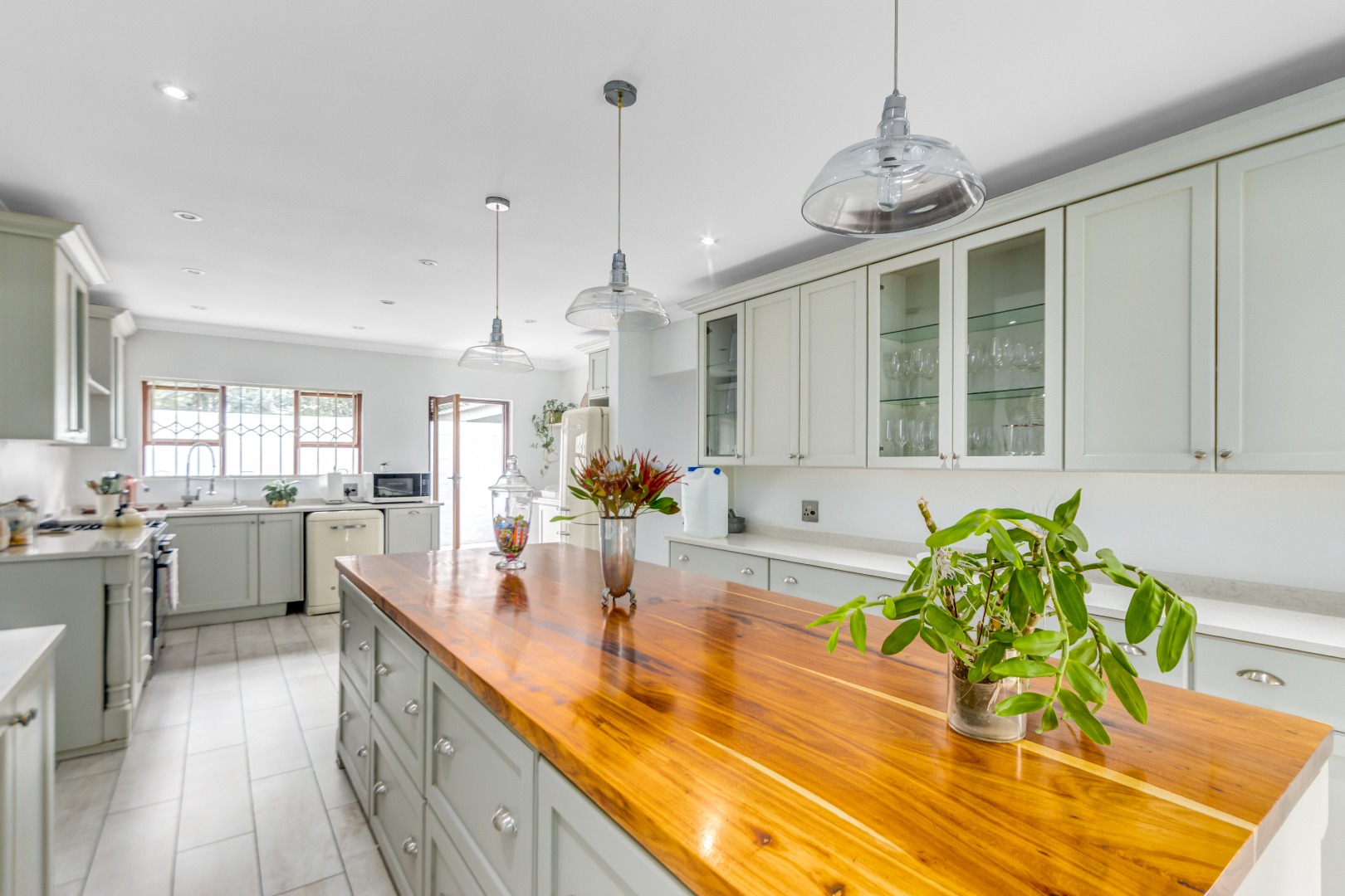 The newly renovated chef’s kitchen is an exceptional centrepiece of the home, featuring a large butcher-block centre island, stone countertops, a gas hob, a prep bowl, and dishwasher space. Designed for both everyday practicality and impressive entertaining, this kitchen combines style with exceptional function.