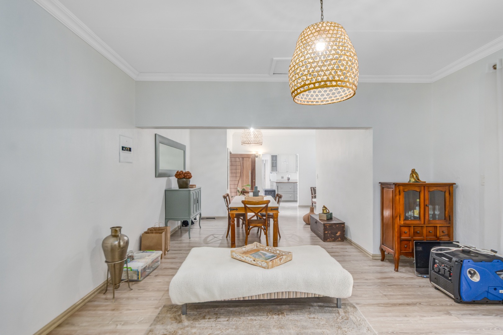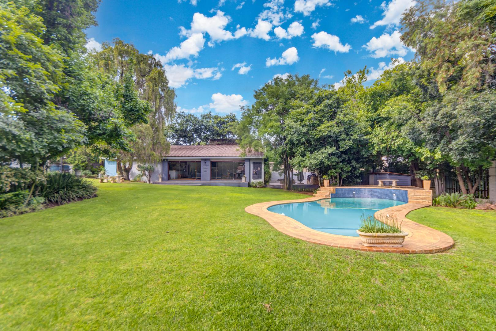 A large, welcoming reception area sets the tone as you enter the home, guiding you into an expansive open-plan lounge, dining room, and TV room. These warm and inviting living spaces flow seamlessly onto a magnificent covered patio overlooking a manicured garden and an inviting swimming pool — creating the ideal setting for relaxed family living and effortless entertaining.
