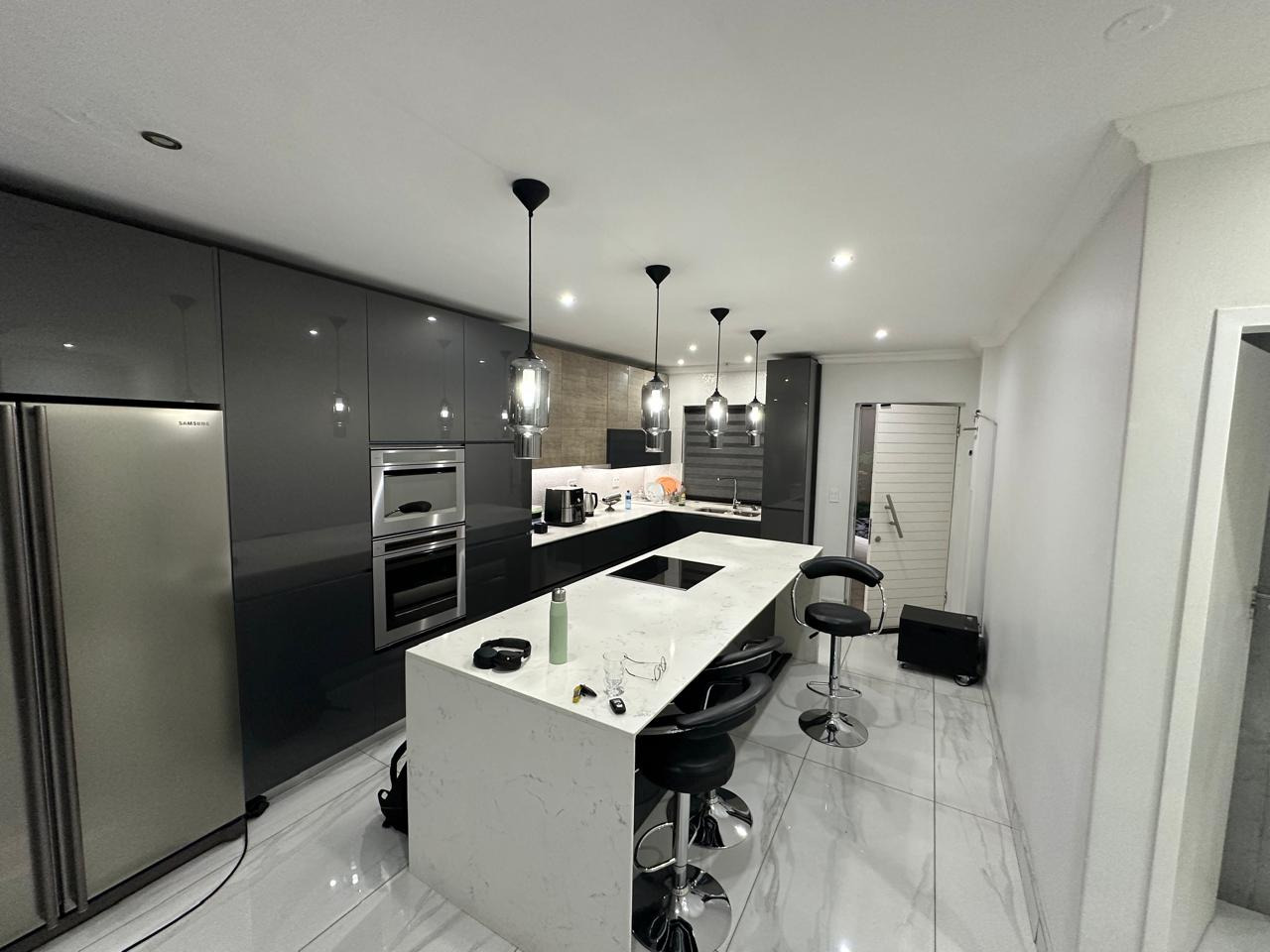 Spacious open plan kitchen with Caeserstone tops plus 2 eye level ovens, a glass hob and plenty of cupboard space that flows seamlessly into the living and dining areas which perfect for relaxed living or entertaining. Glass stacker doors onto the enclosed patio invite in natural light which is perfect for your morning coffee or unwind after a long day in the enclosed patio, offering a private outdoor retreat with a garden view