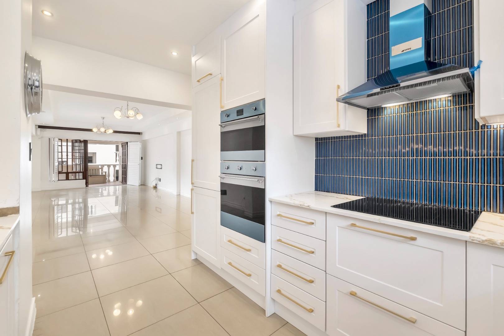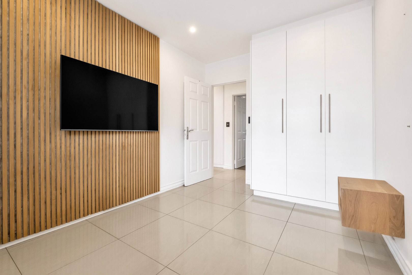 The three bedrooms have been beautifully finished with suspended ceilings, built in cupboards, stylish wall panels and security shutter blinds.