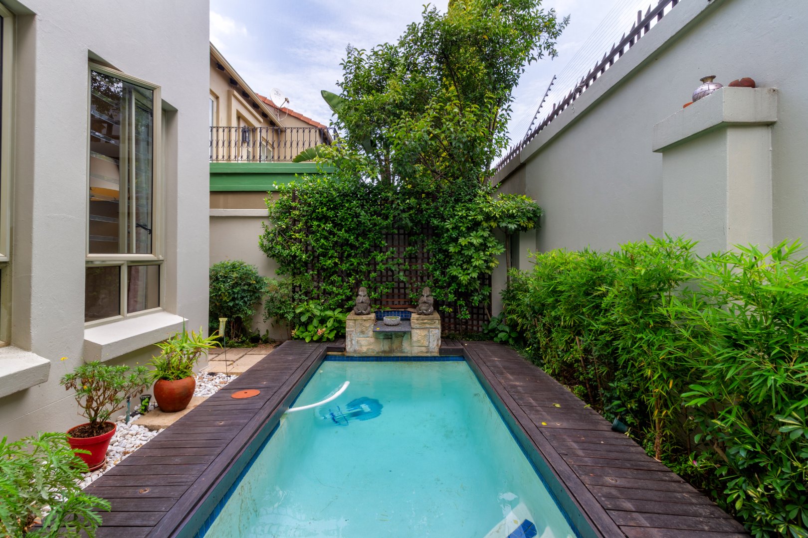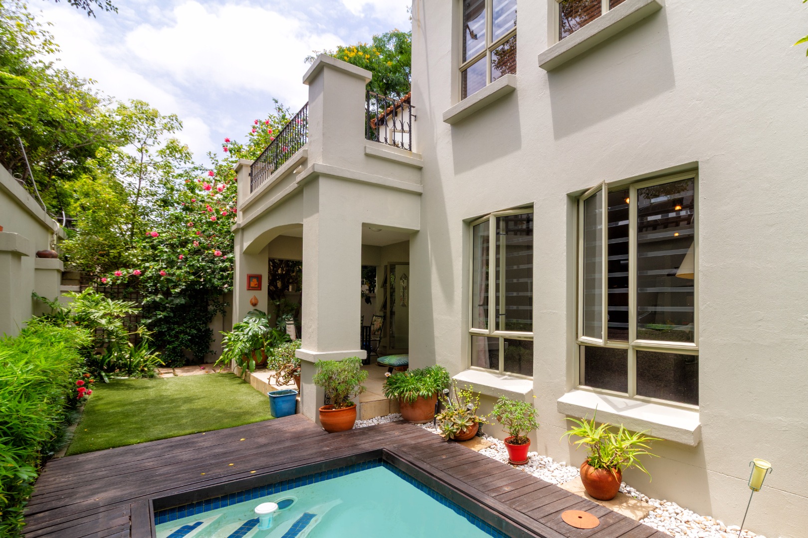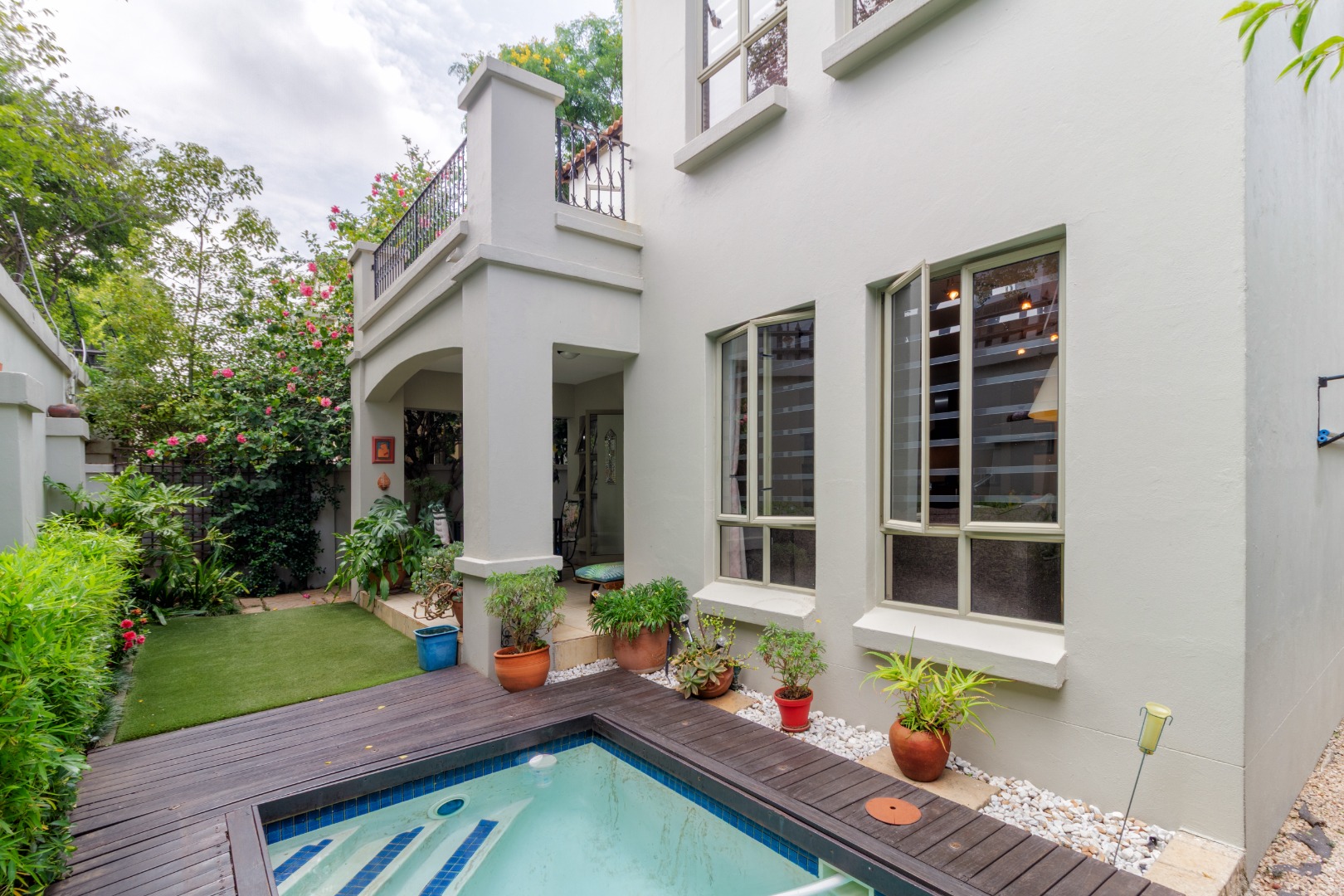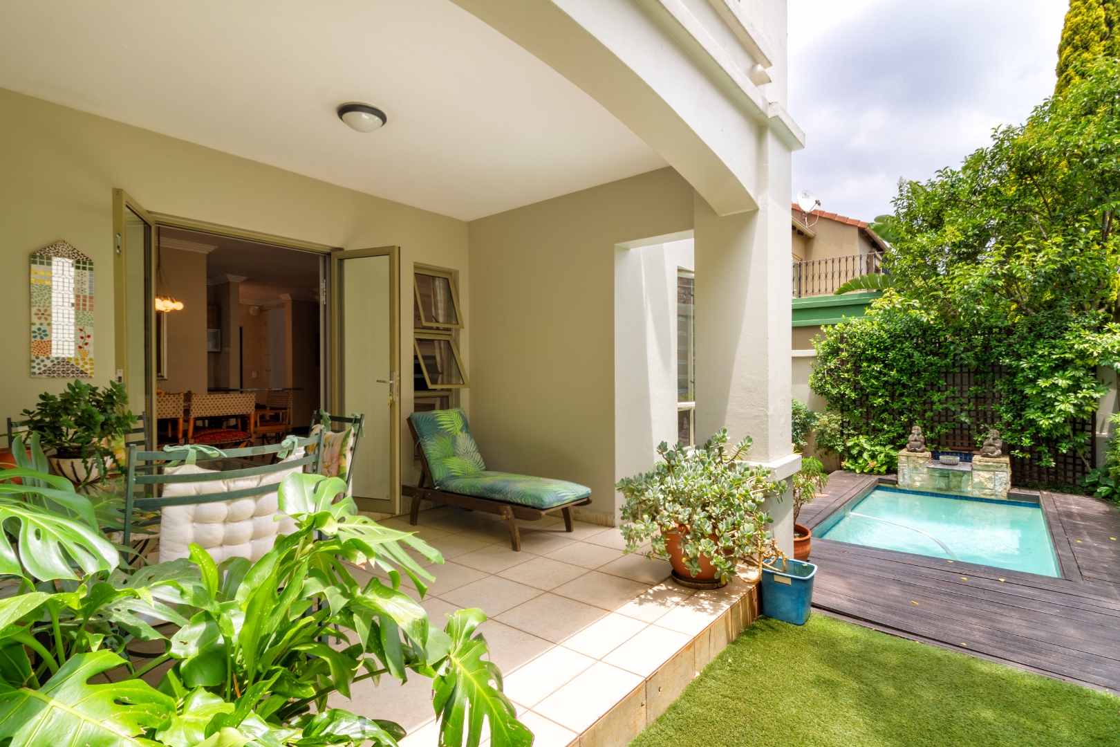 Step outside to a private, low-maintenance garden with a covered patio and sparkling splash pool, perfect for entertaining or relaxing.