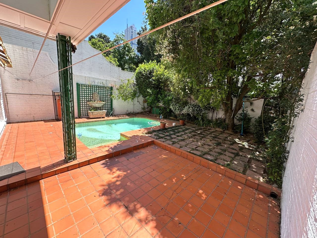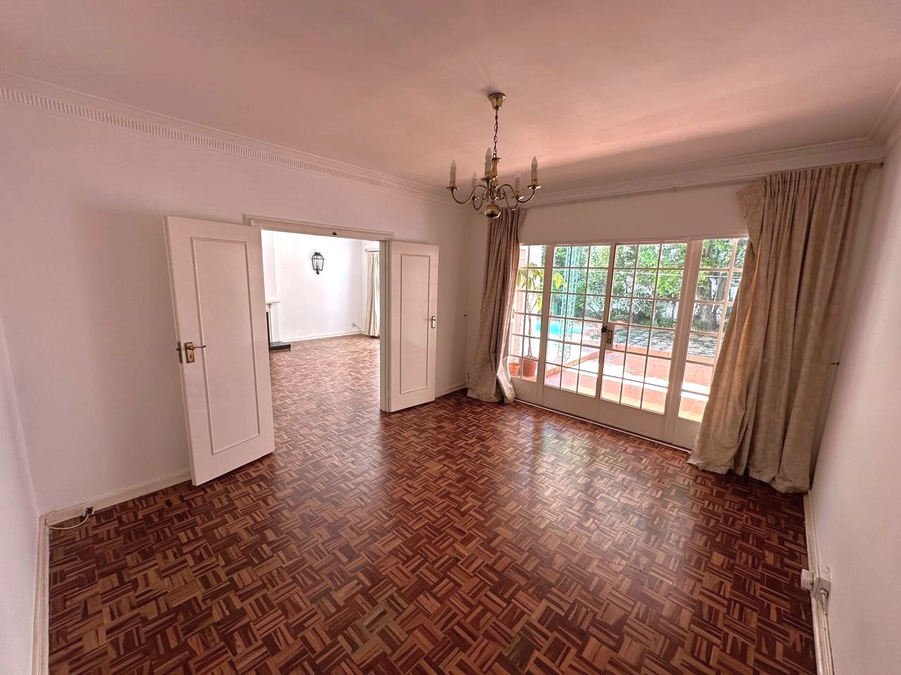 3 Large parqueted (wood) downstairs reception rooms with a guest toilet. Good size kitchen. Small garden plus private pool.