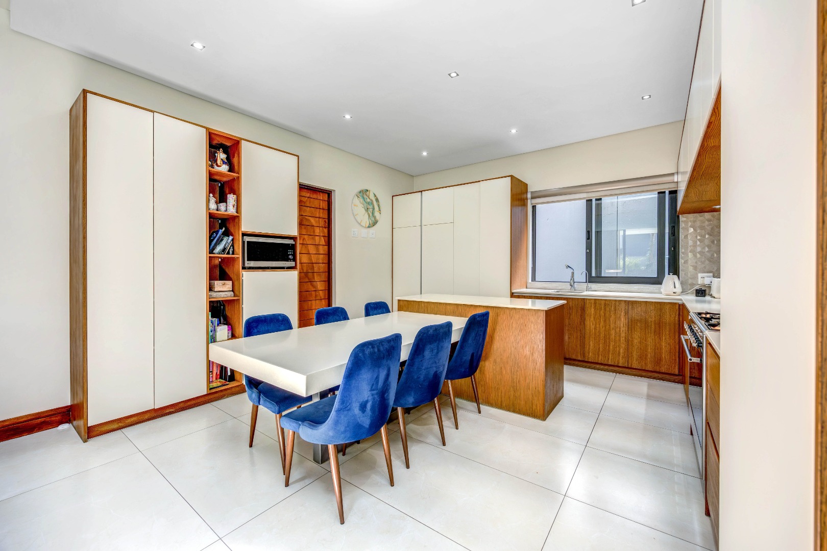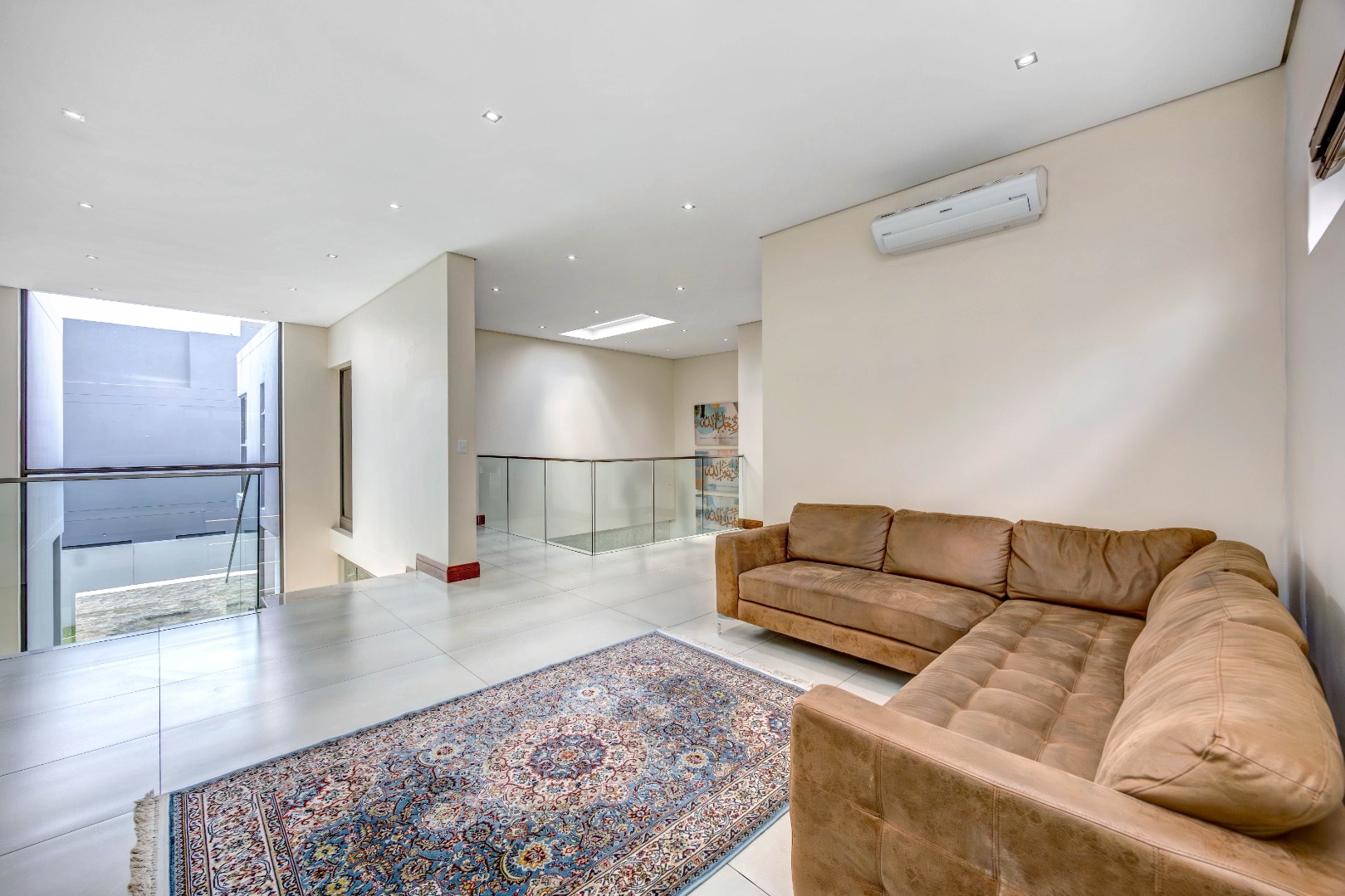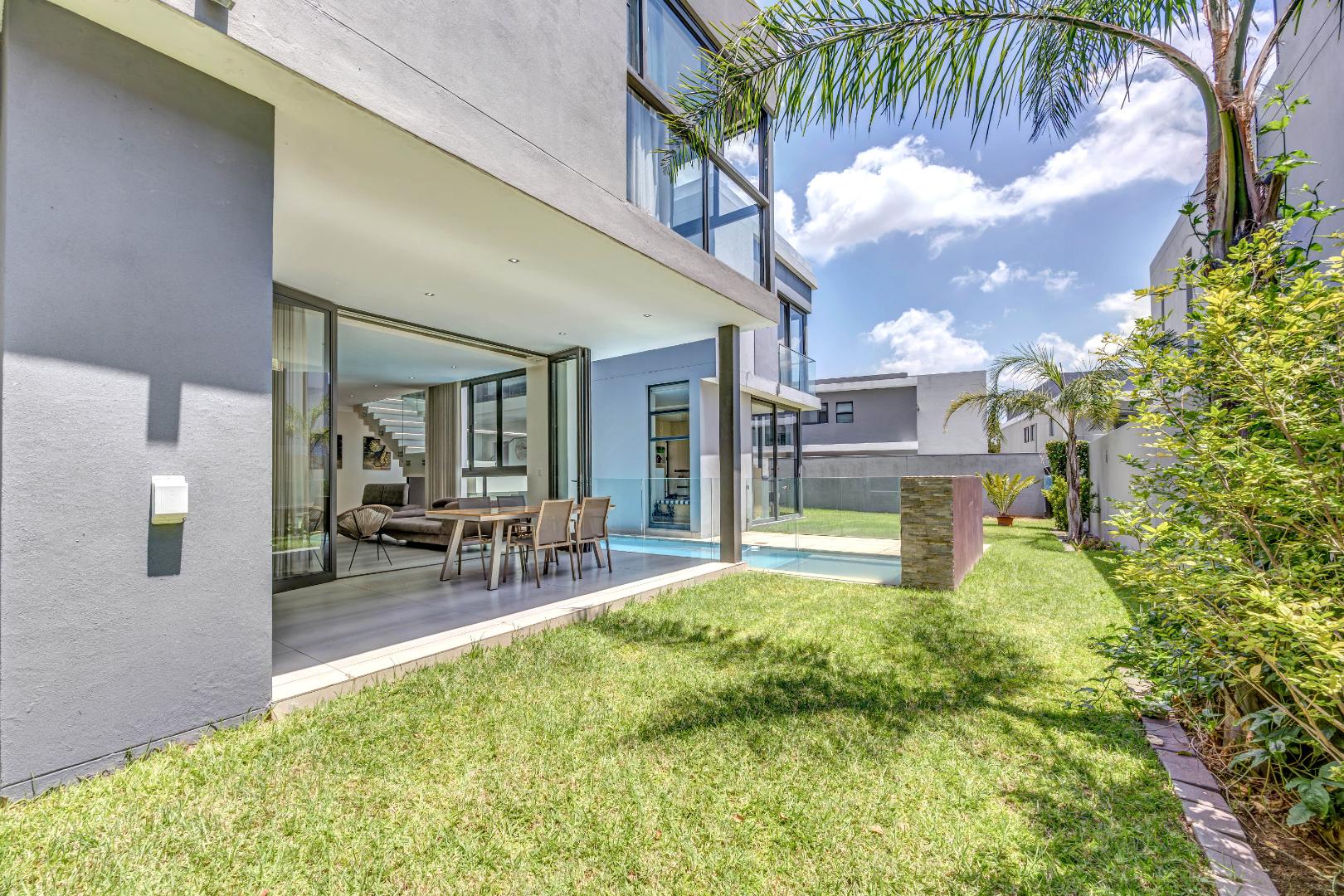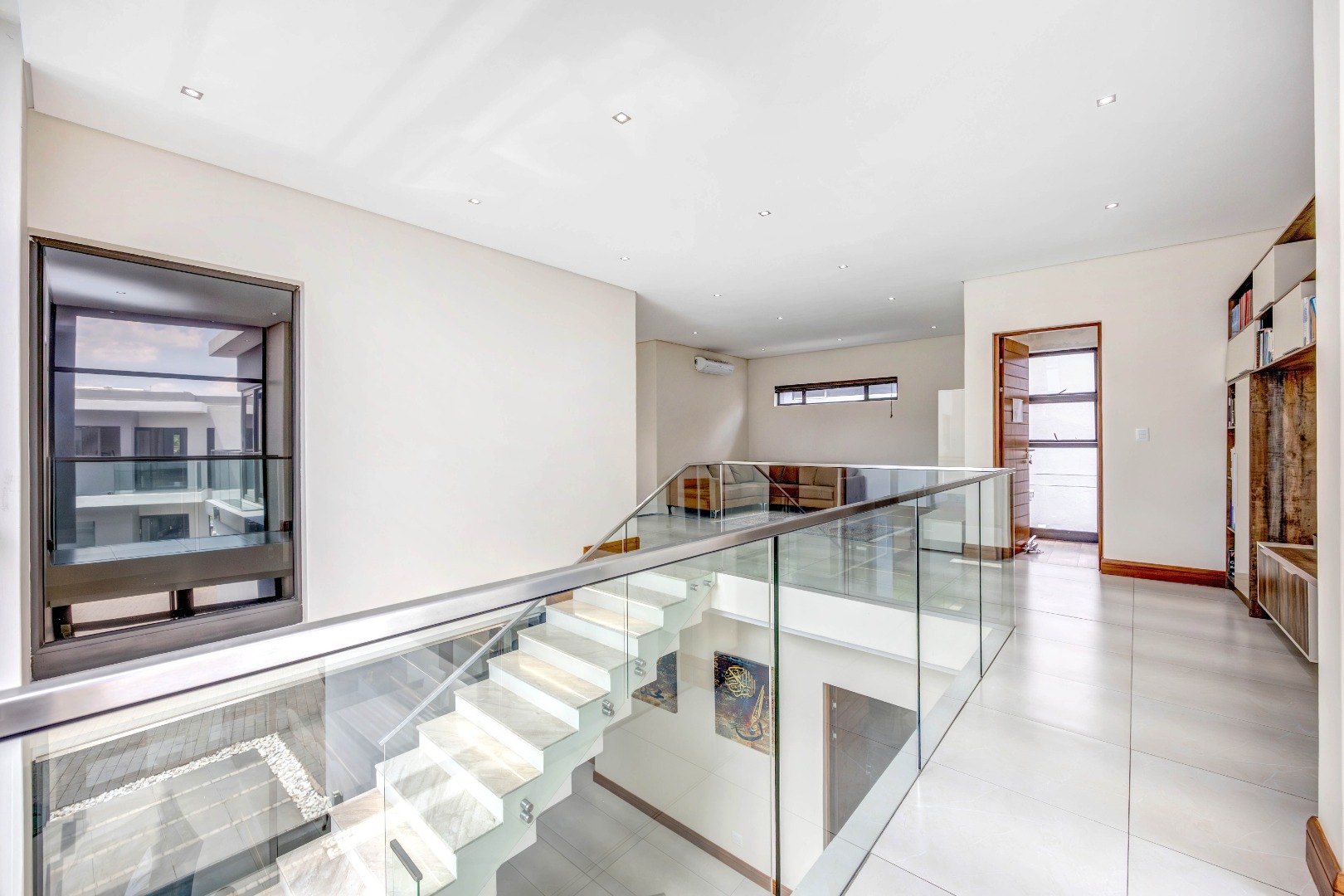 A striking double-volume entrance hall creates an immediate sense of scale and sophistication, setting the tone for the beautifully designed interiors beyond. The home flows effortlessly into expansive open-plan living areas, comprising a stylish lounge, generous dining space, and a sleek designer kitchen with ample cupboard space and a separate scullery, ideal for both everyday living and effortless entertaining.