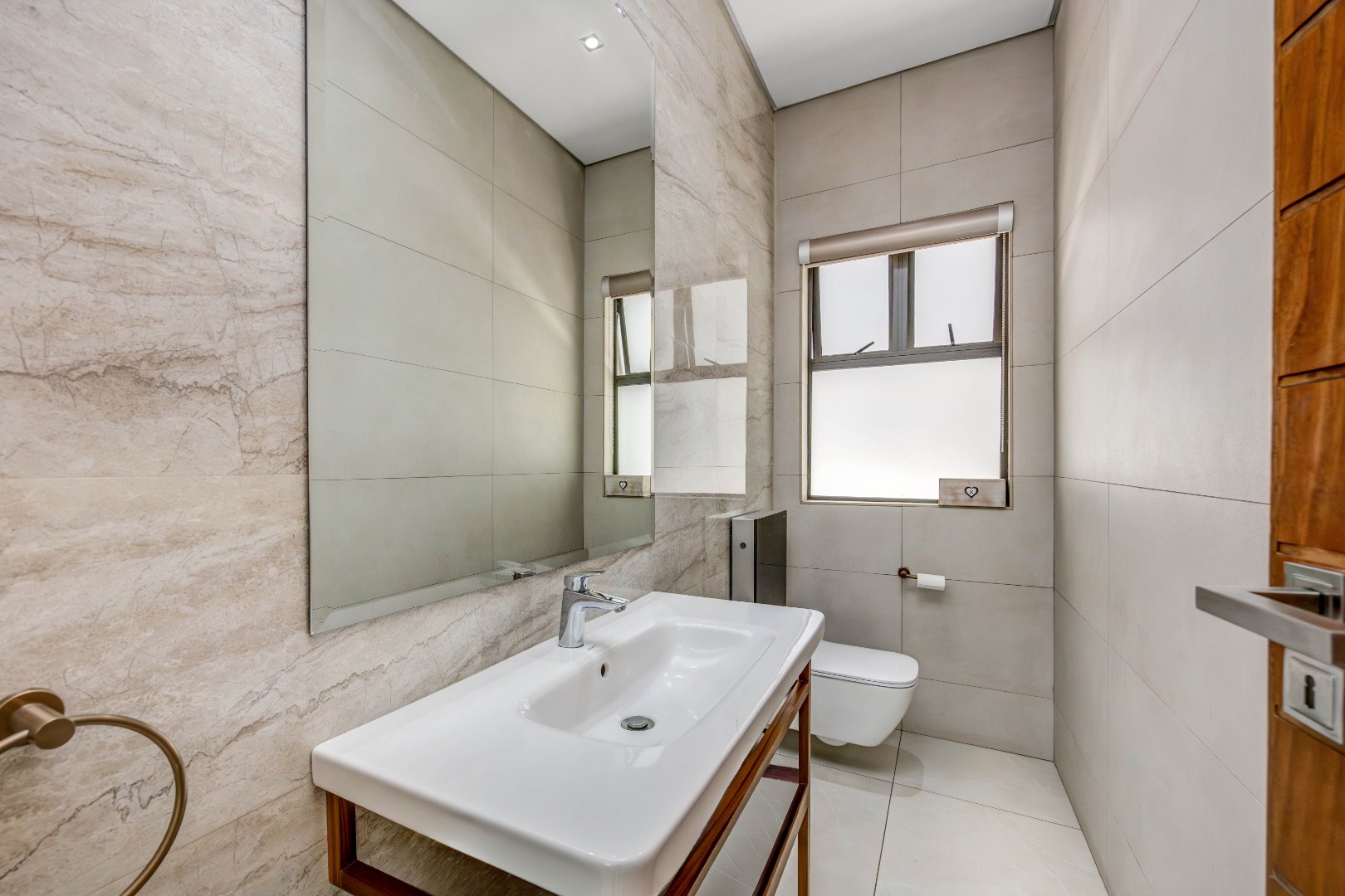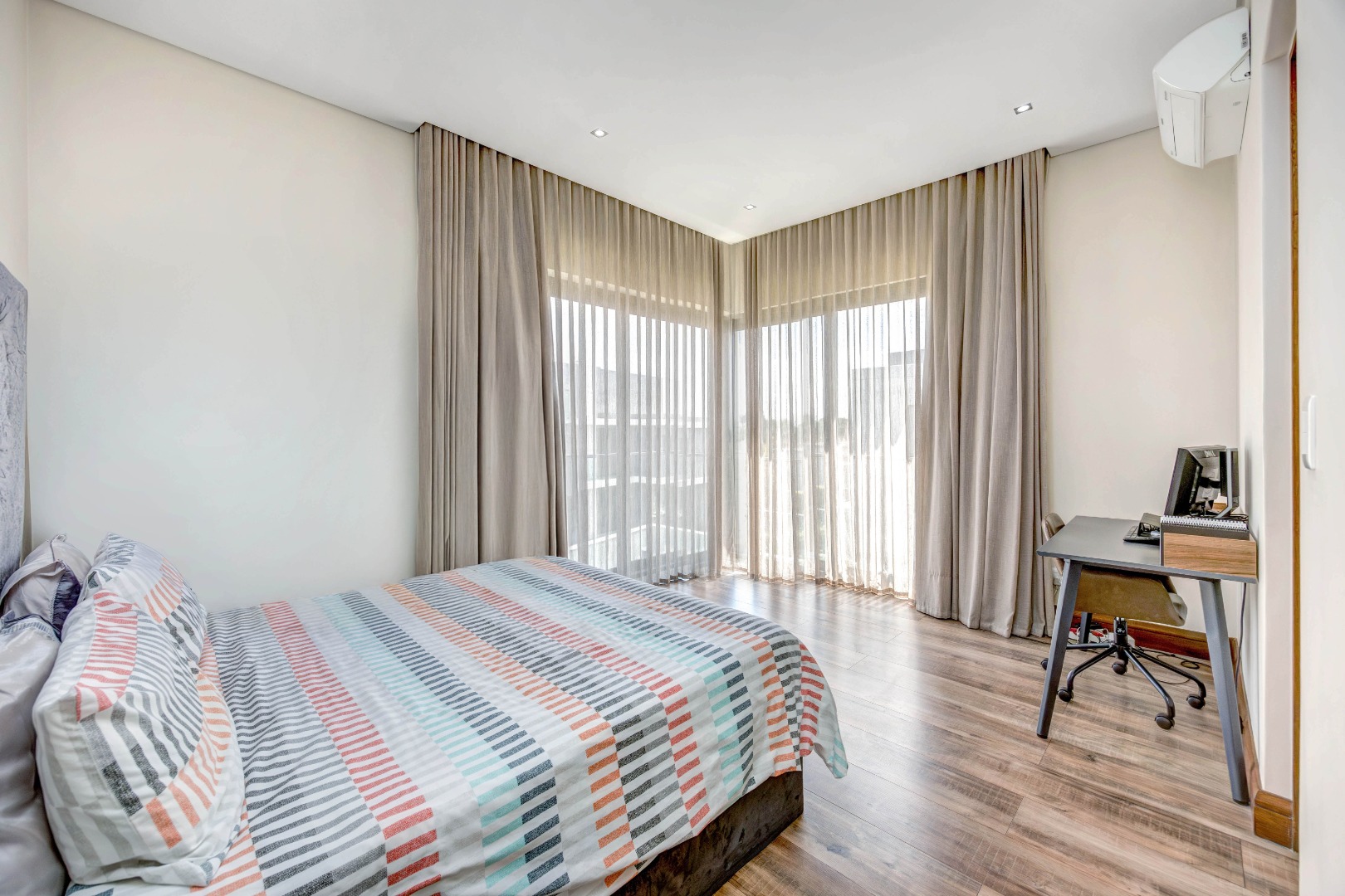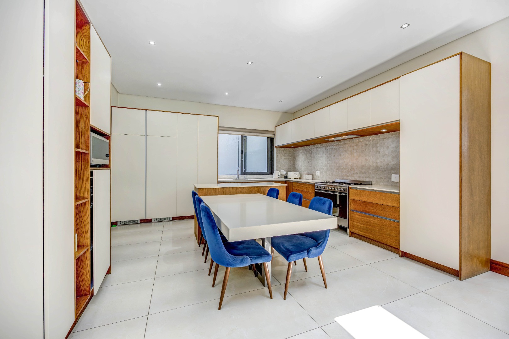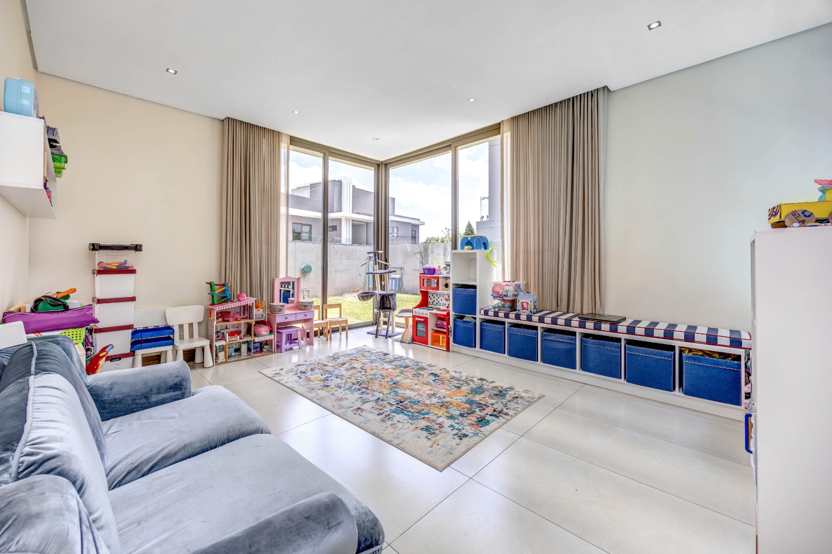 A striking double-volume entrance hall creates an immediate sense of scale and sophistication, setting the tone for the beautifully designed interiors beyond. The home flows effortlessly into expansive open-plan living areas, comprising a stylish lounge, generous dining space, and a sleek designer kitchen with ample cupboard space and a separate scullery, ideal for both everyday living and effortless entertaining.