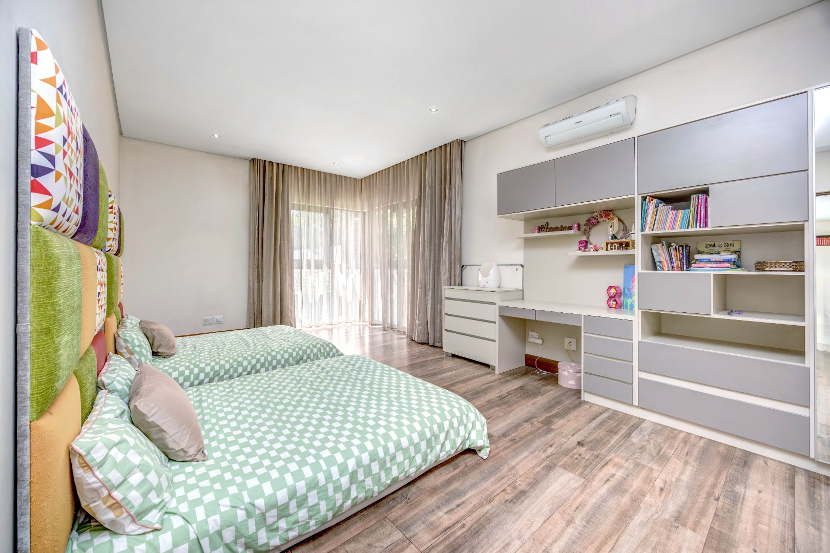 Upstairs, a versatile pyjama lounge provides an ideal space for a home office, study, or informal family lounge. The remaining four generously sized bedrooms are all en-suite and air-conditioned, offering comfort, privacy, and luxury for the entire family. The sumptuous main suite features a dressing area, walk-in closet, and a spacious full bathroom designed for indulgent living.