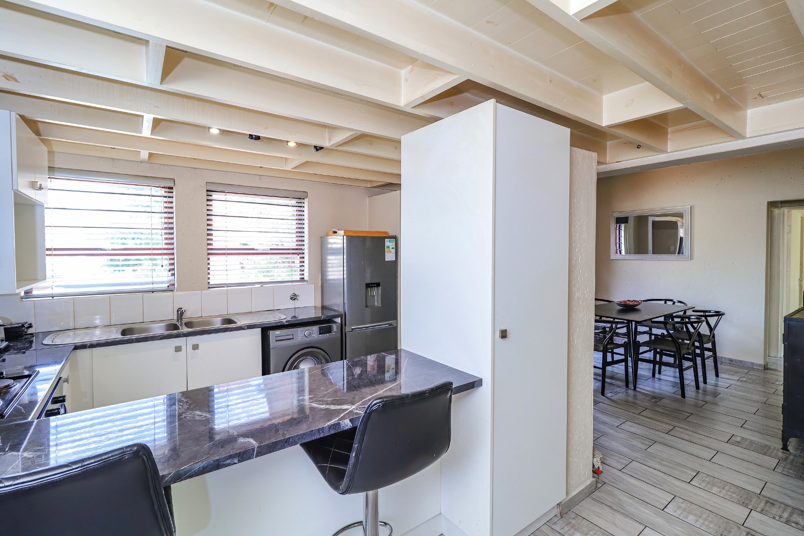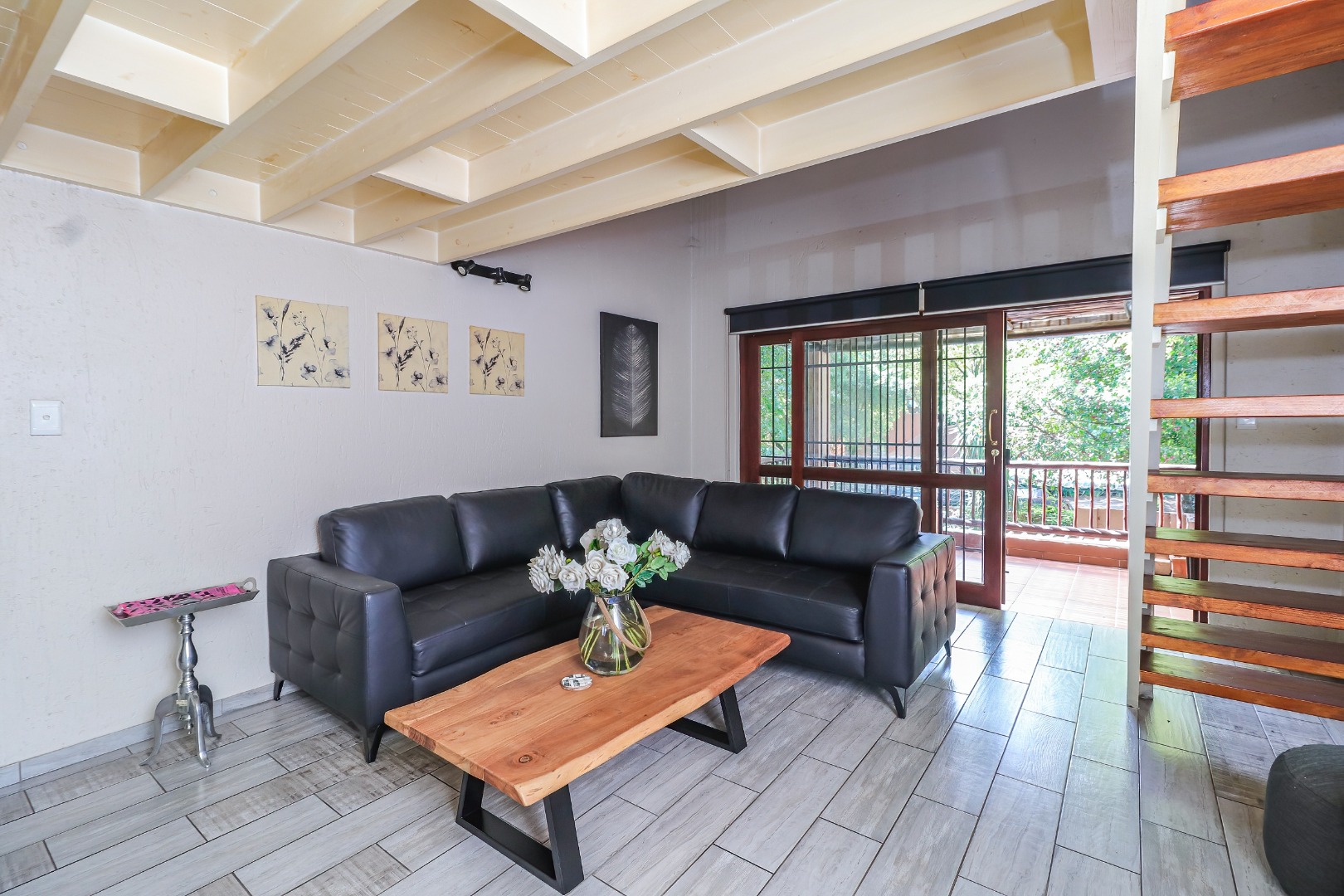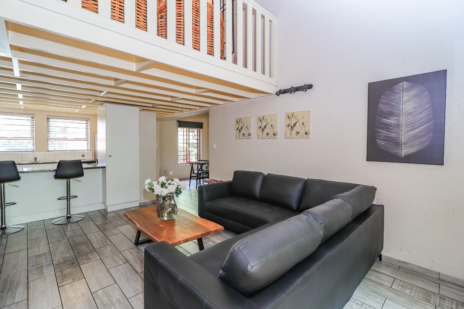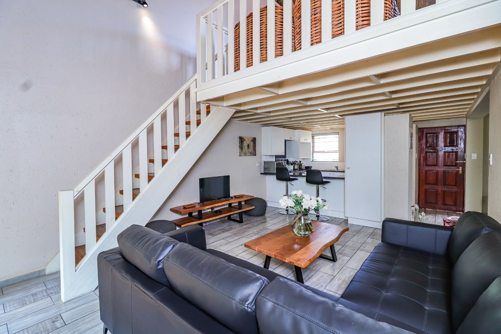 This home comprises two comfortable bedrooms and two well-appointed bathrooms, with one being an en-suite, ensuring privacy and convenience. The extended loft - possibly a 3rd bedroom - is bright and leads onto the top patio - with lapa! Limitless sunny views from the huge semi-covered rooftop.