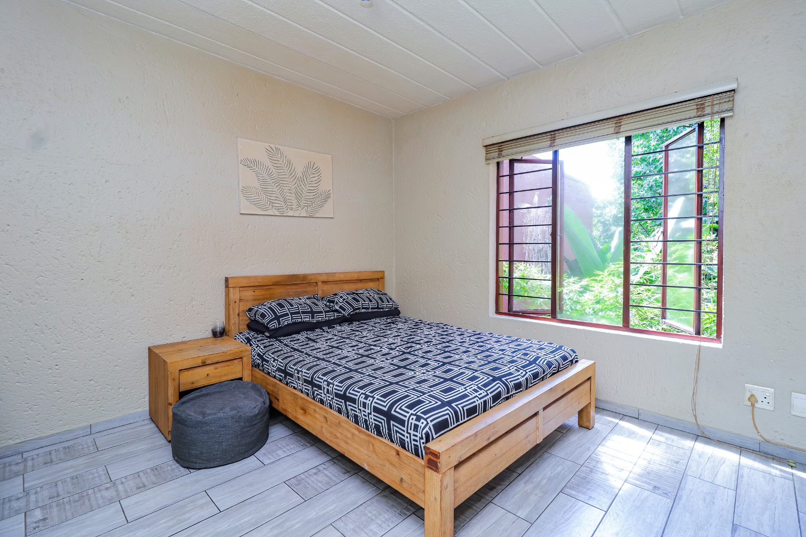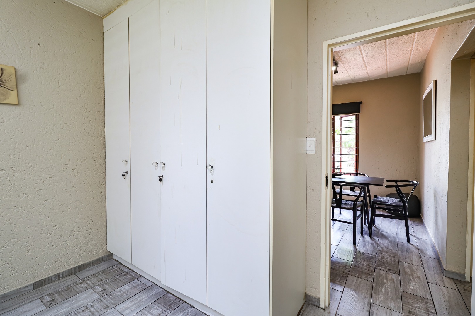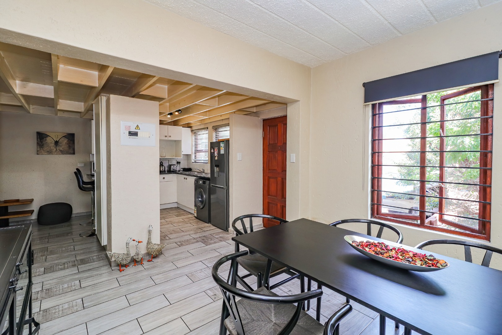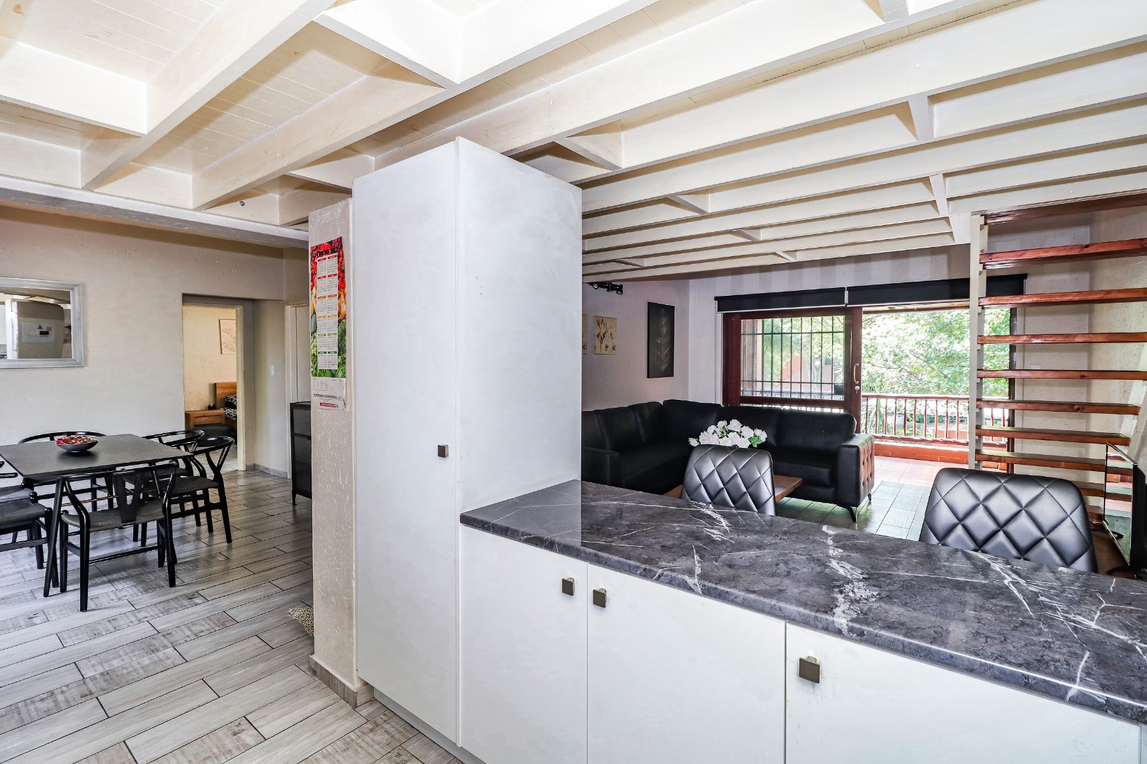 Discover modern living in this stylish 132 sqm residence, ideally situated within a secure complex in Sunninghill, Sandton. This property offers a contemporary open-plan design, seamlessly integrating the living, dining, and kitchen areas, perfect for both relaxation and entertaining. The interior boasts elegant wood-look tiled flooring and distinctive exposed ceiling beams, adding character and a sense of spaciousness.
