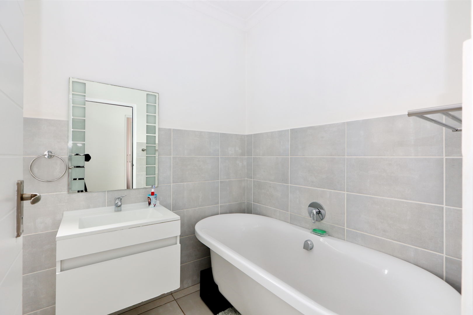 The home offers three comfortable bedrooms, including a master suite complete with extensive built-in wardrobes and a private en-suite bathroom. The two modern bathrooms are well-appointed, featuring contemporary finishes; the main bathroom offers both a separate walk-in shower and a freestanding bathtub for ultimate relaxation. Each space is designed for comfort and functionality.
