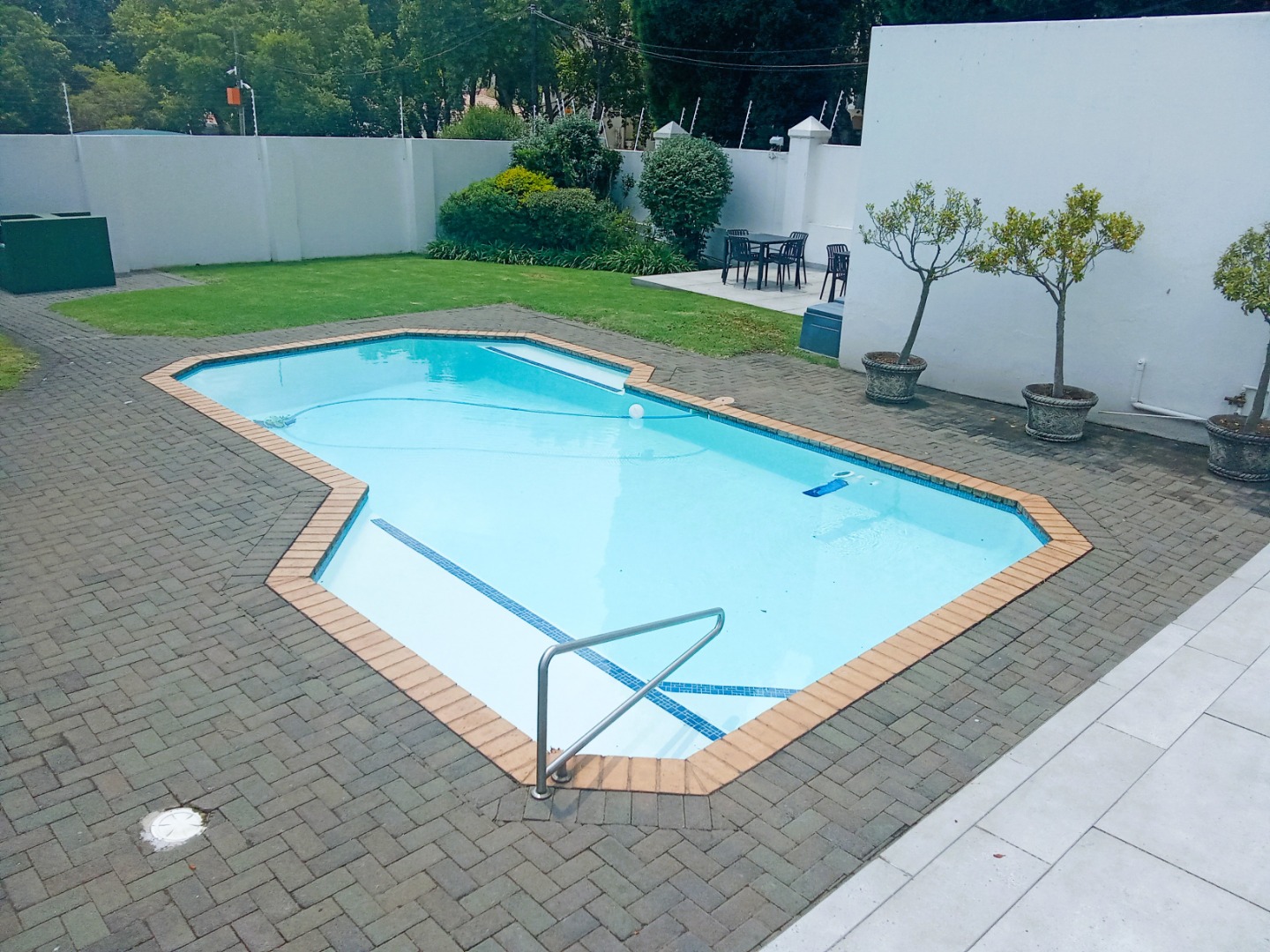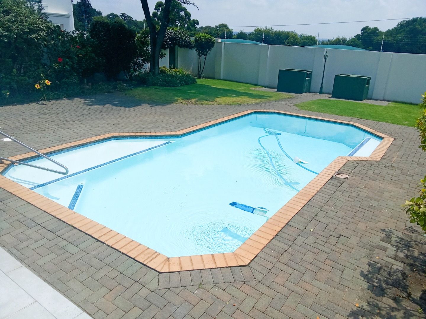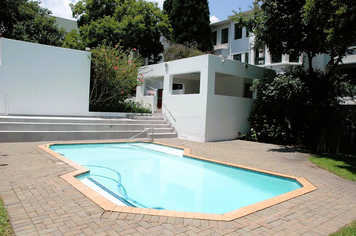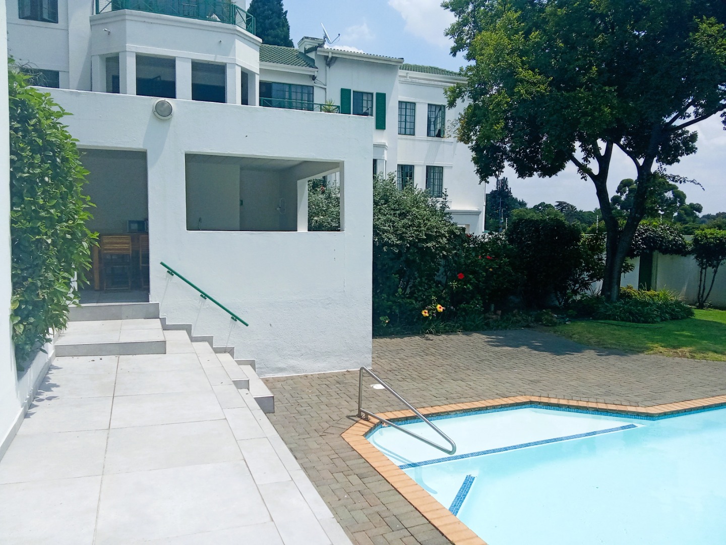 4. Amenities: Access to a sparkling communal pool and manicured garden.