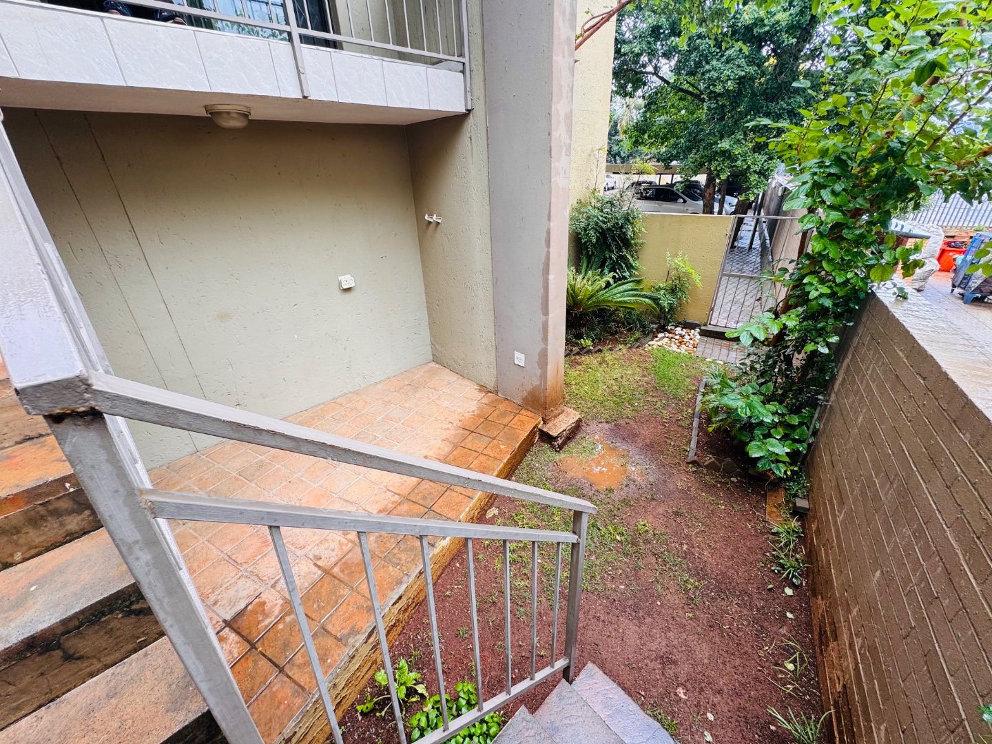 Balcony leads down to a private garden and patio