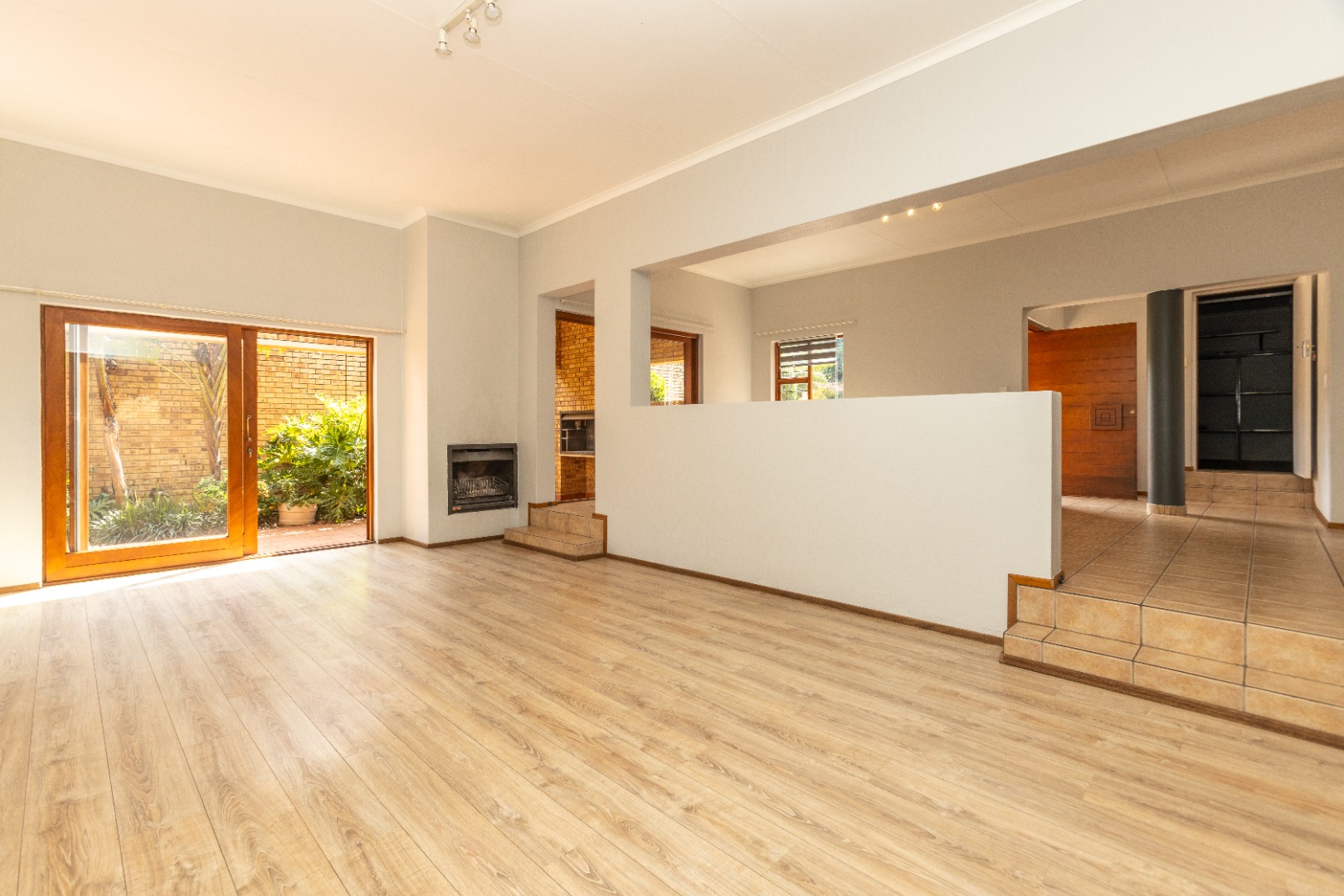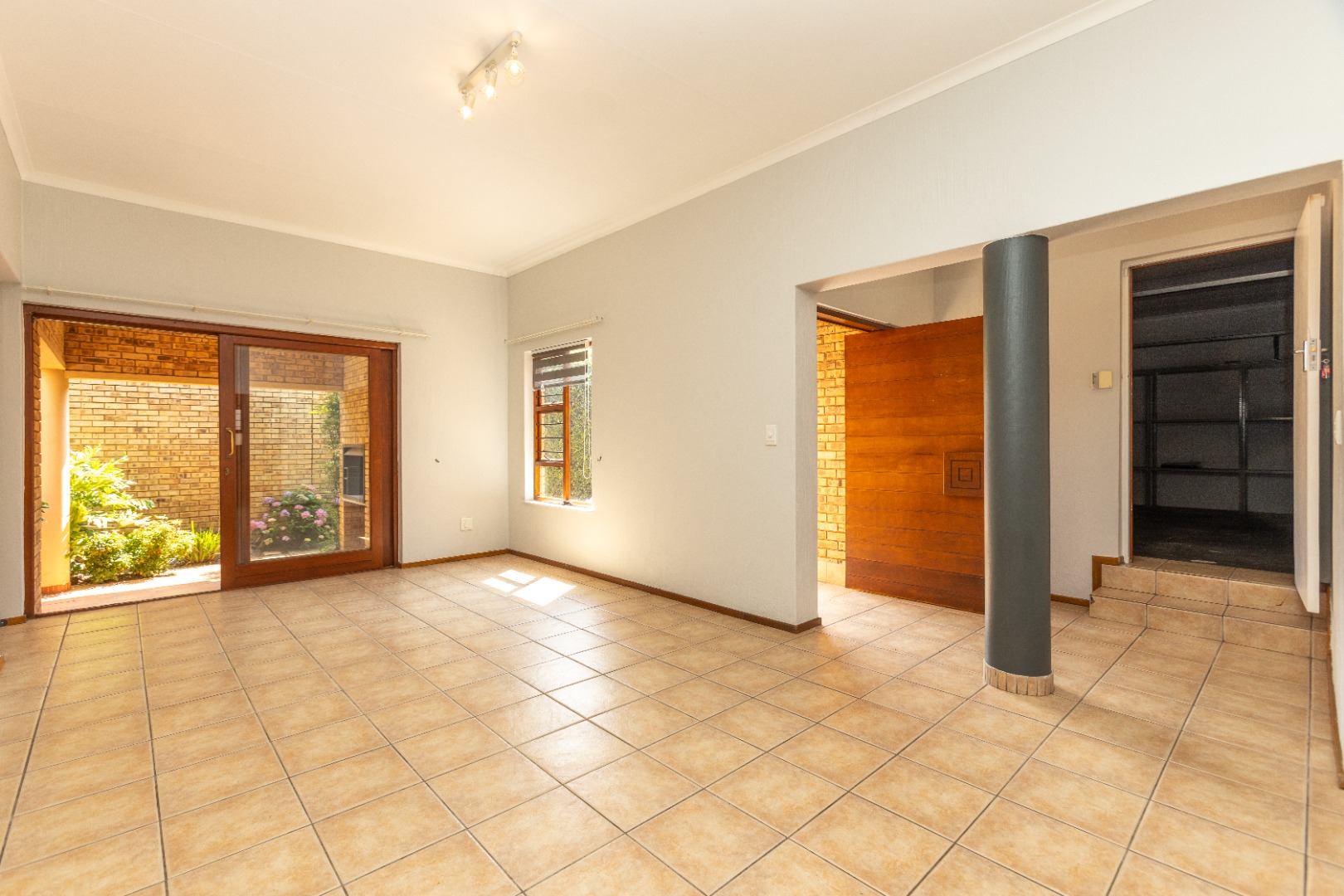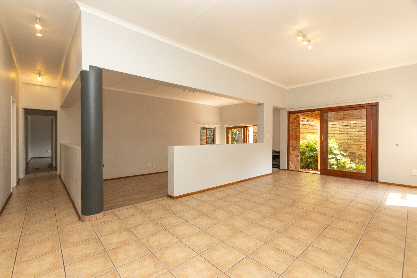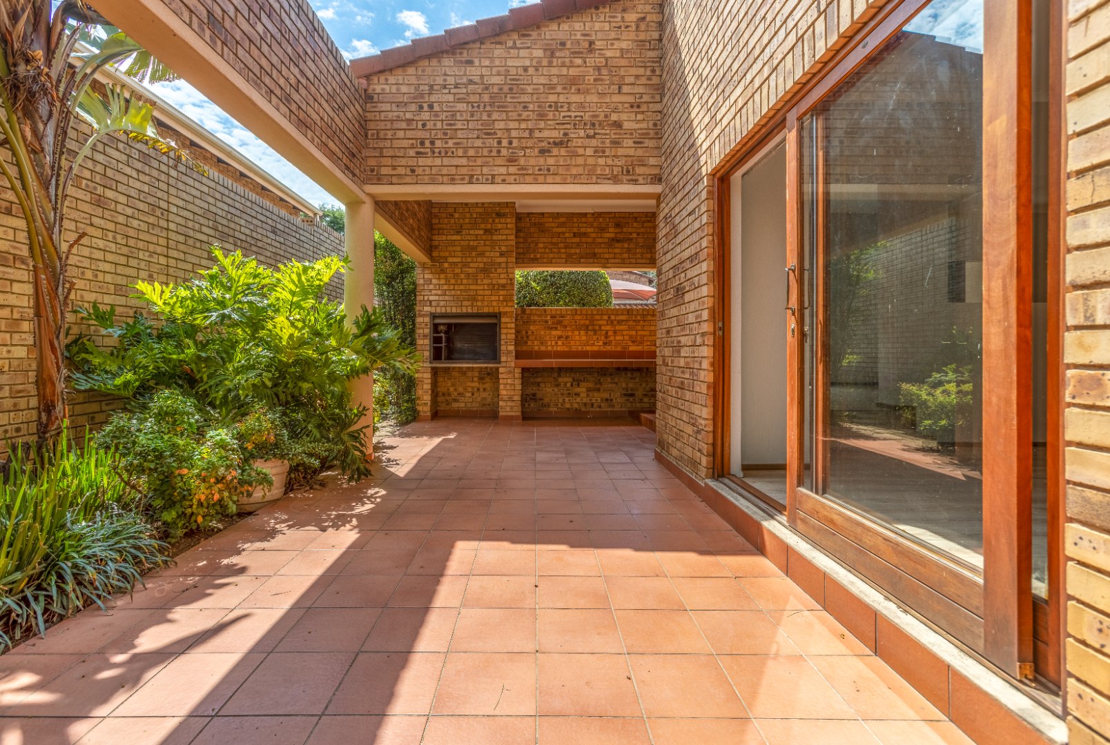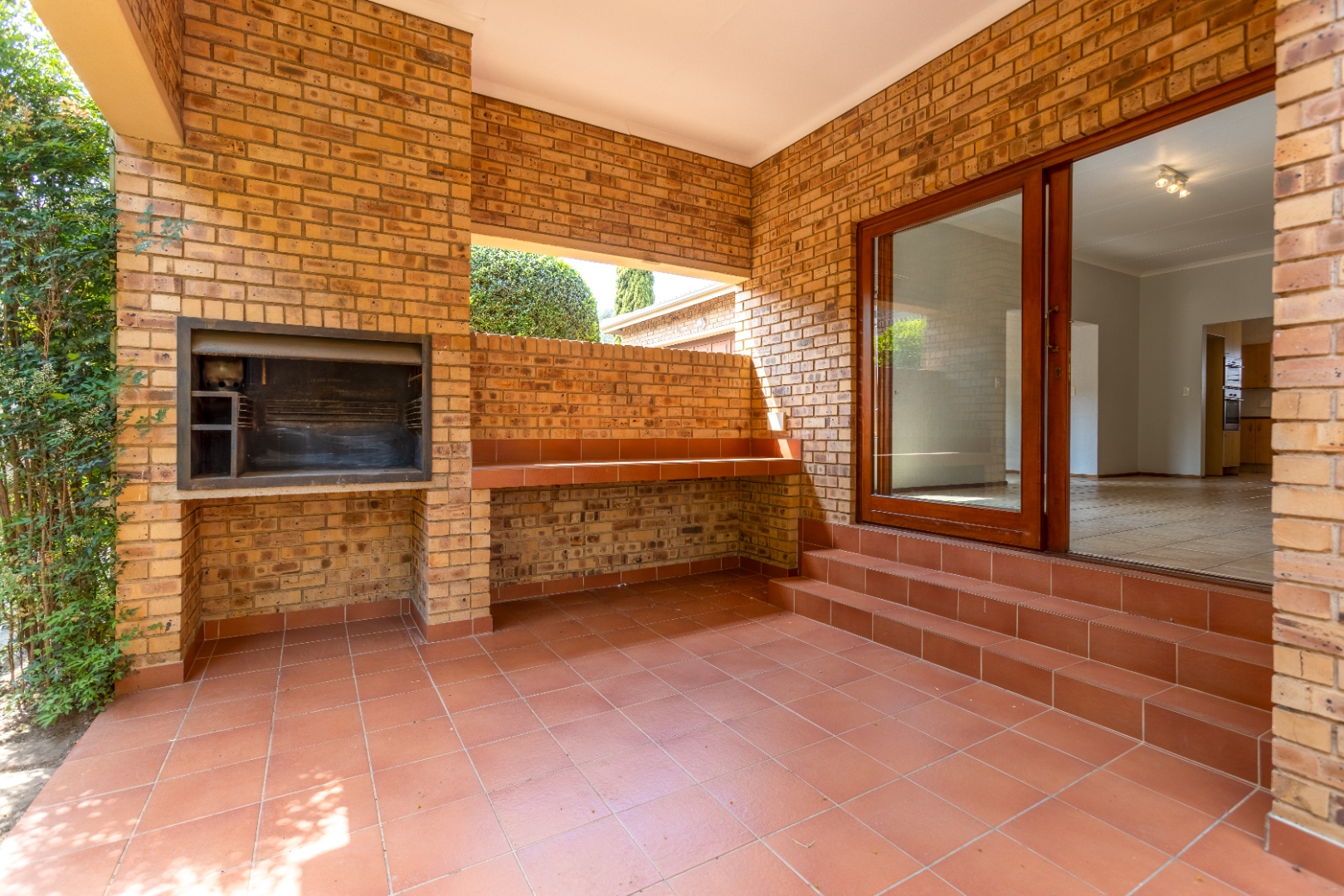 The dining area opens out to a delightful patio, complete with a built-in braai. This space overlooks the garden, offering a serene spot for entertaining or unwinding.