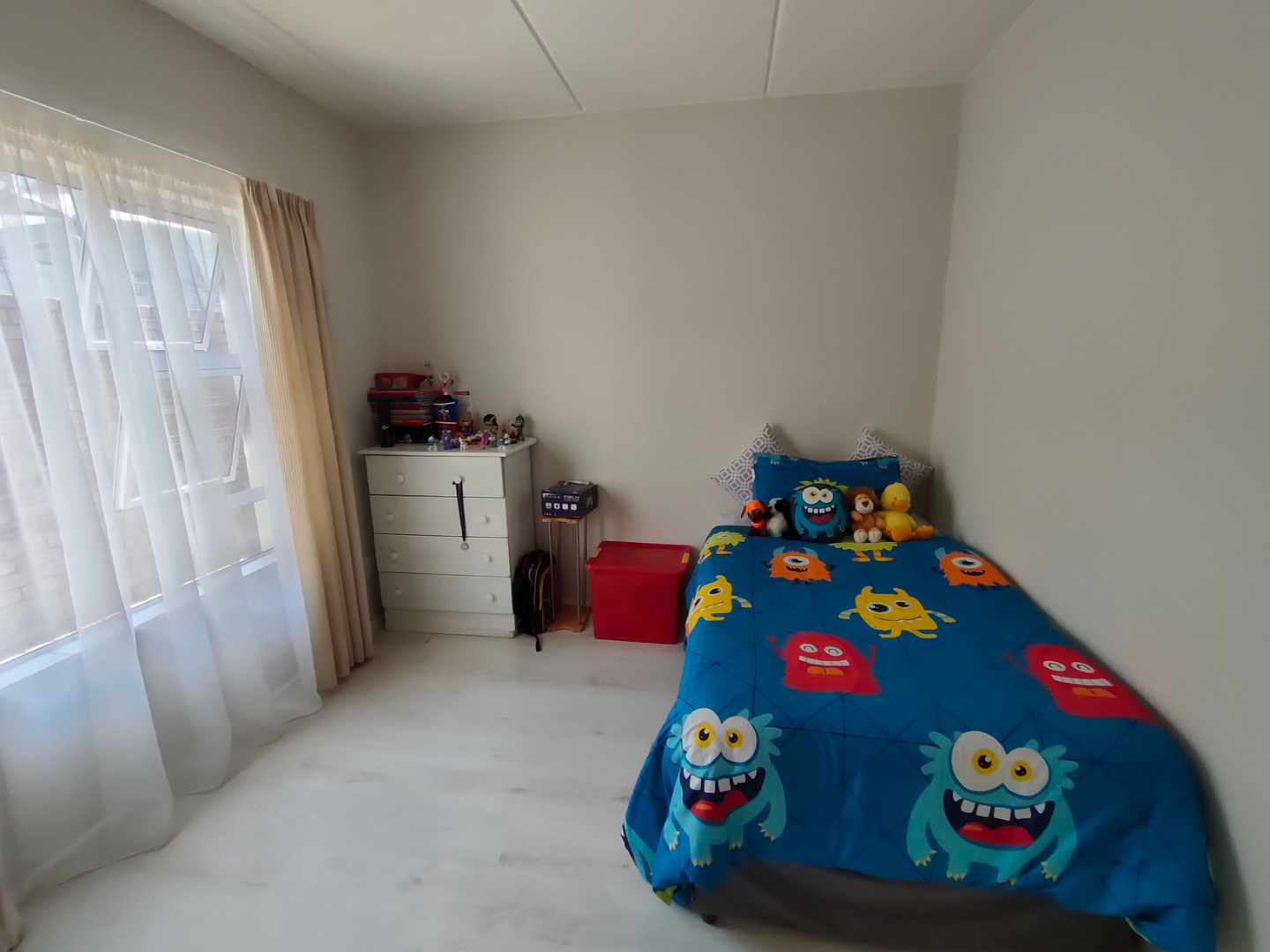 Outside, enjoy a covered patio, leading to your own private, well-maintained garden – ideal for sunny South African days. For warmer moments, there's a communal swimming pool within the complex. This pet-friendly home also comes with two parking bays. Max 2 medium pet, per approval.