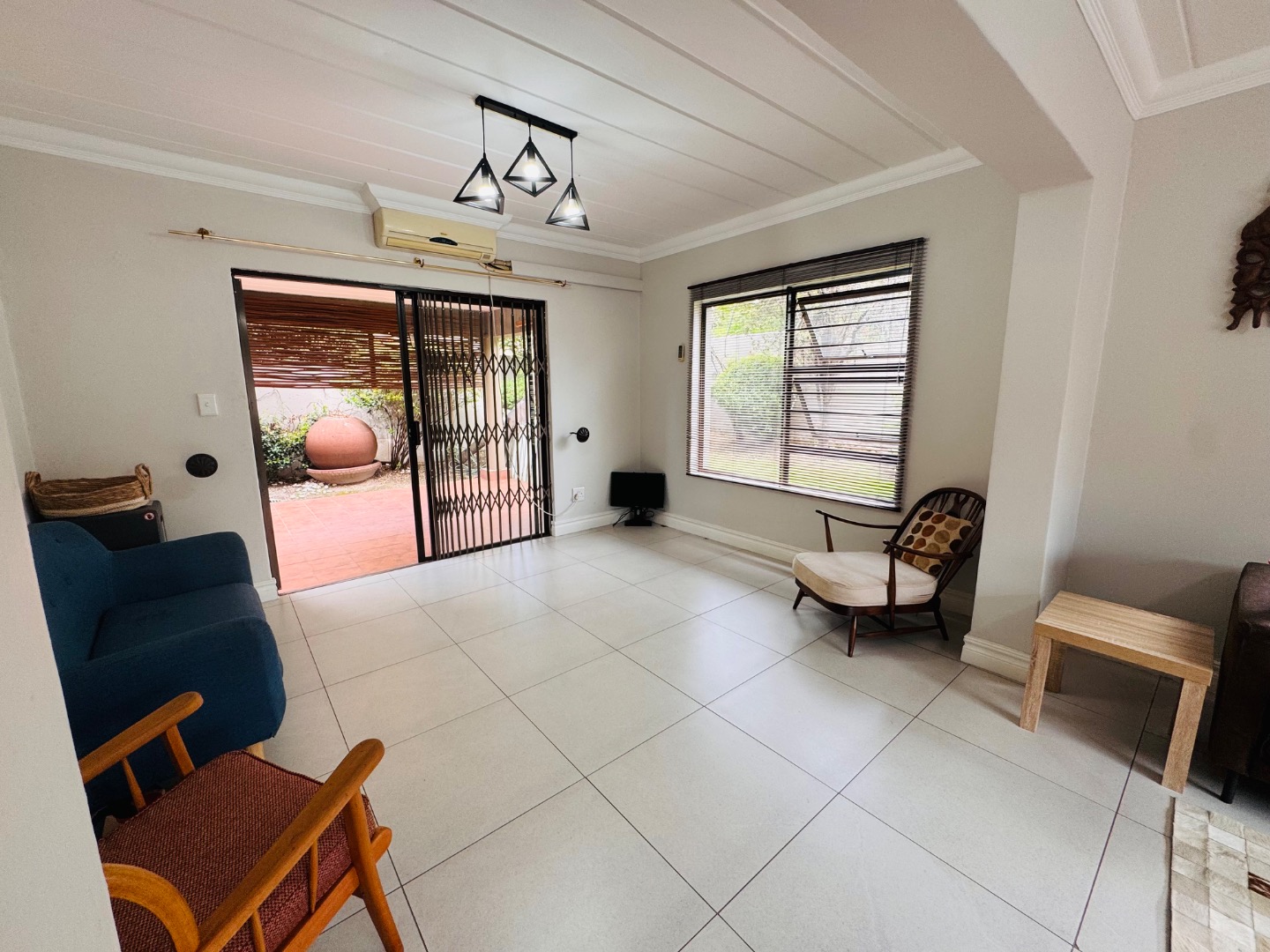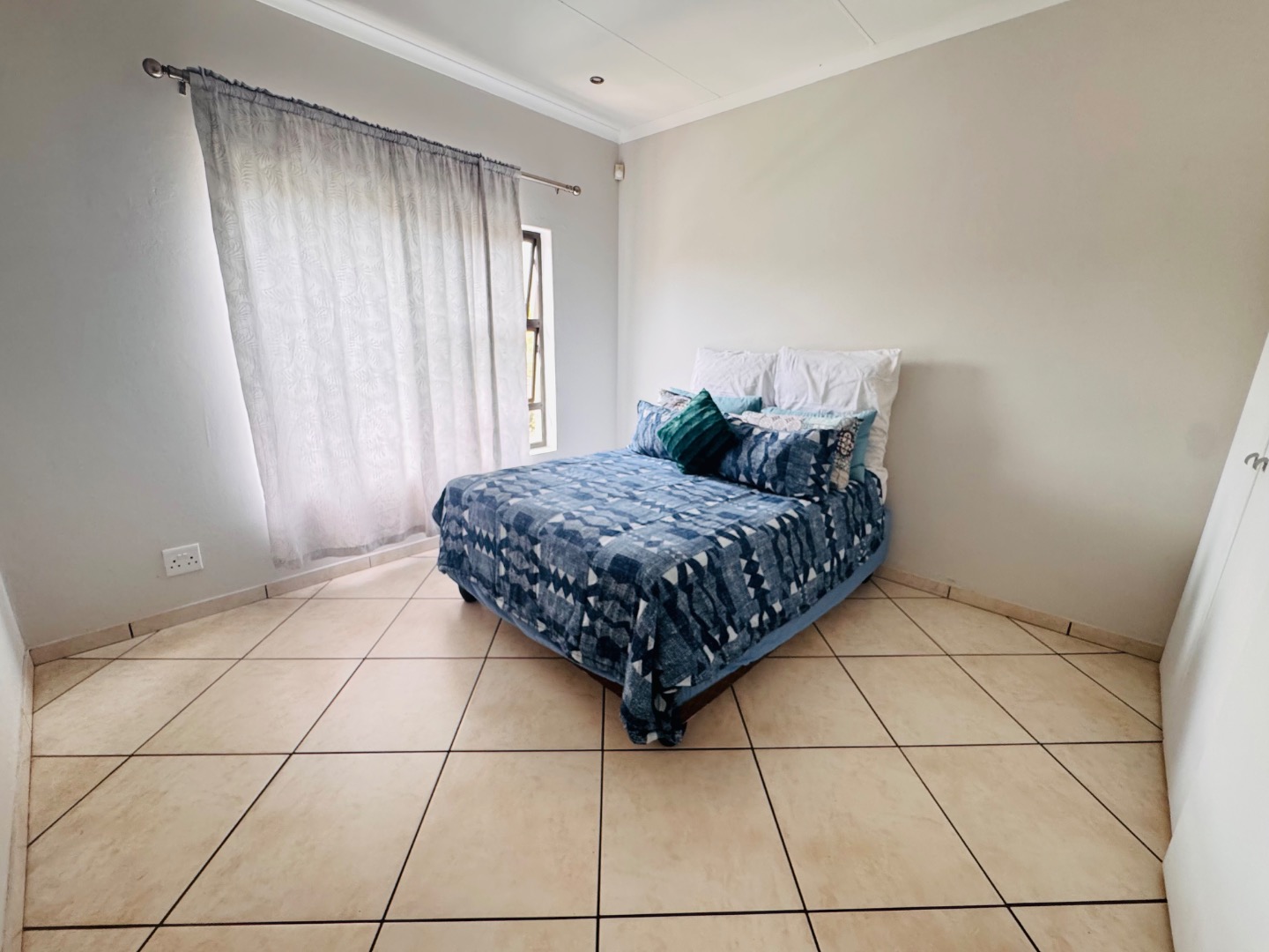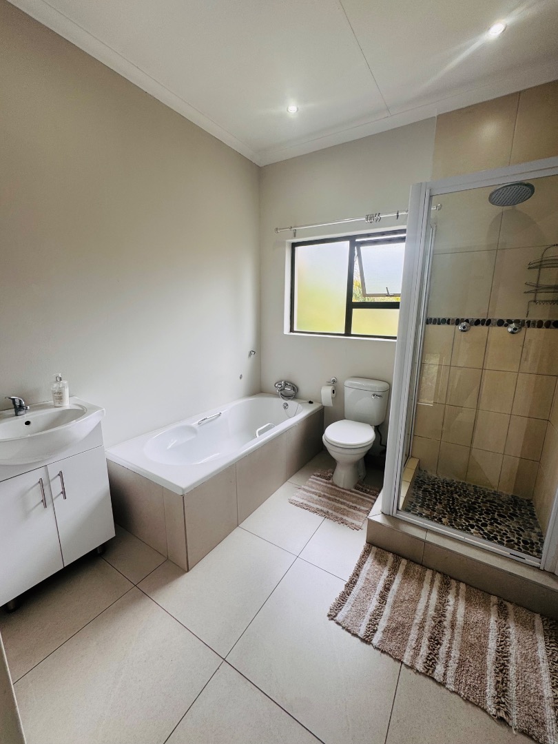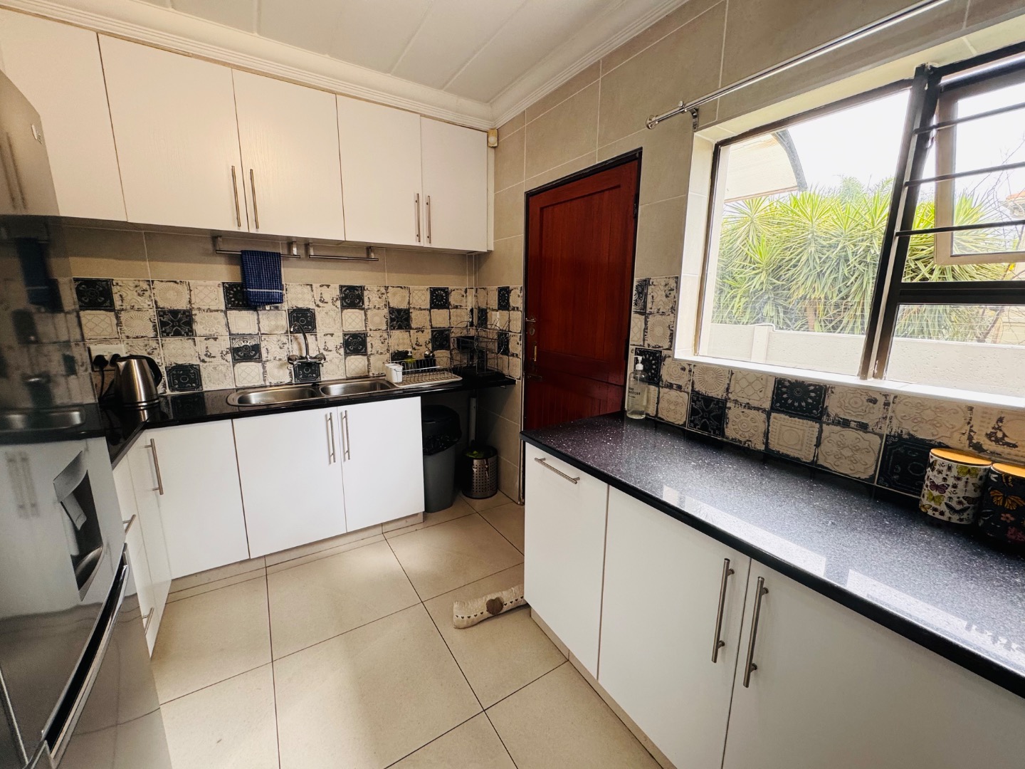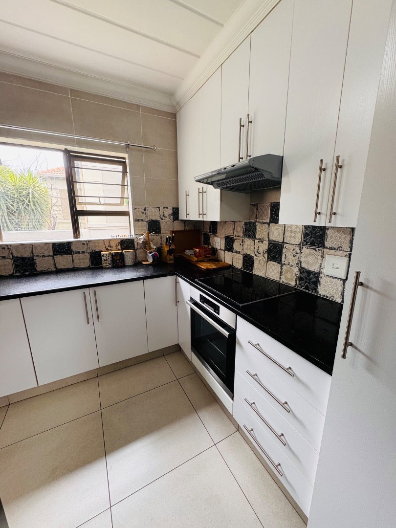Discover this modern 3-bedroom, 2.5-bathroom rental home situated within a highly secure estate in North Riding. The residence boasts a contemporary kitchen, complete with stainless steel appliances, ample white cabinetry, and dark speckled countertops. Enjoy seamless flow from the kitchen to an open-plan dining area and two comfortable lounges, all featuring natural light and tiled flooring. This home offers a double garage, an additional parking bay, and a private patio with a garden. Designed for peace of mind, the estate provides 24-hour security, access control, and fibre connectivity. Pets are welcome, making this an ideal family rental in a sought-after area.