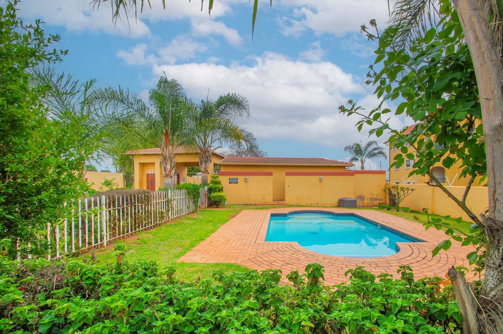 Communal swimming pool with clubhouse