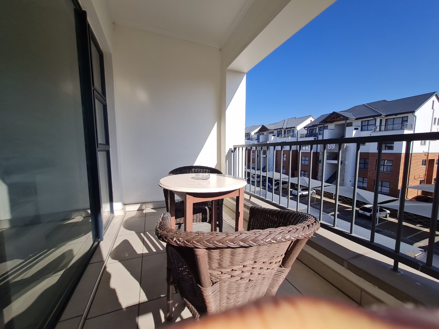 Fully furnished bigger apartment consisting of a bright and sunny bedroom with bed and desk and fitted blinds. Separate bathroom with shower. Good sized lounge with feature wall and covered balcony TV bracket, couch and patio furniture and curtains supplied. Open plan kitchen which is well fitted with 4 appliances, fridge, washing machine, tumble dryer and dishwasher. Covered parking. Comprising of lounge suite :Patio furniture, Crockery, cutlery ,bed and desk with chair