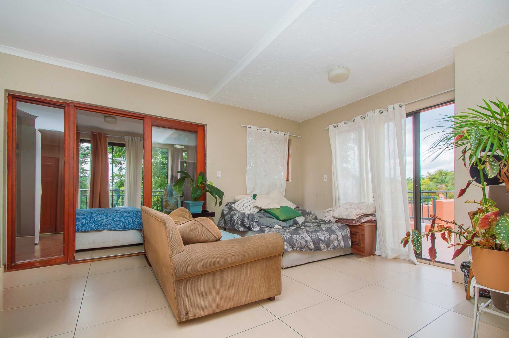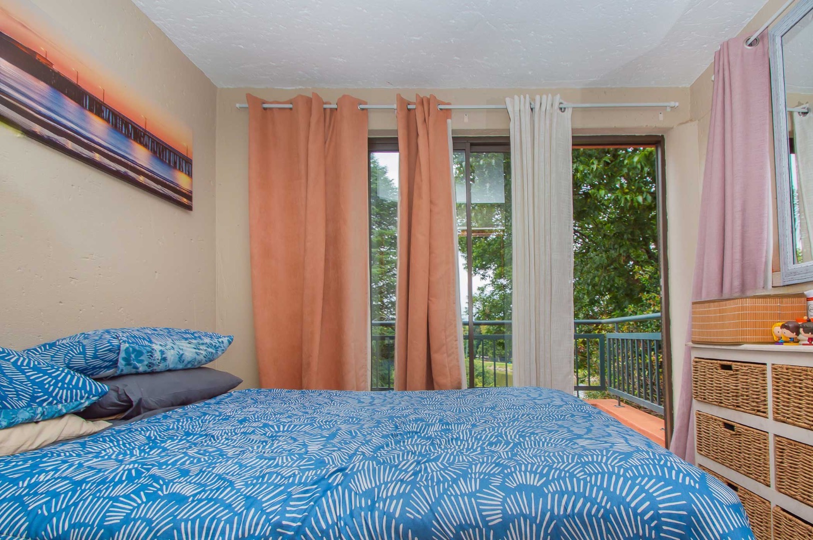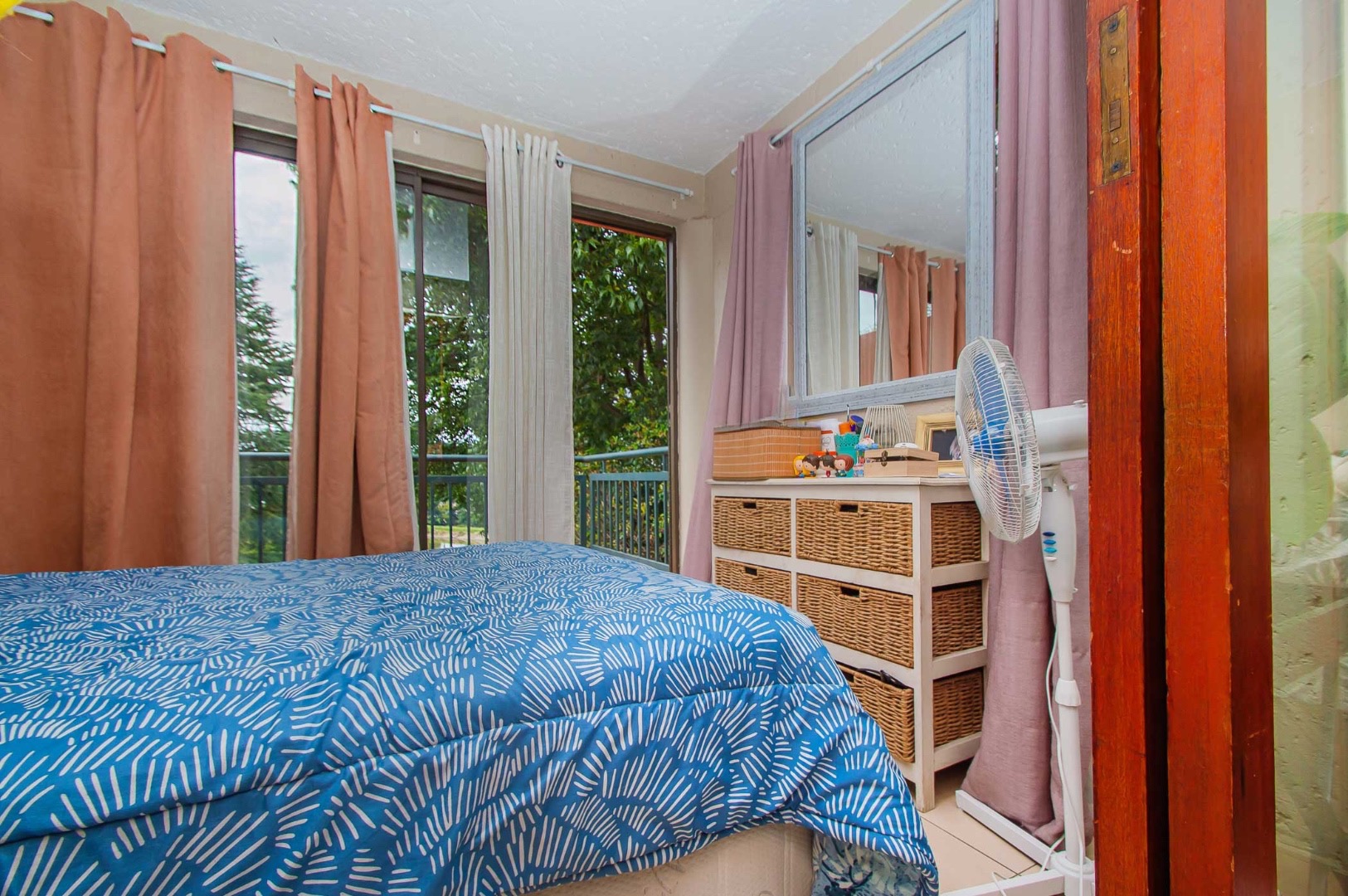 Small bedroom with balcony overlooking the lush surrounds